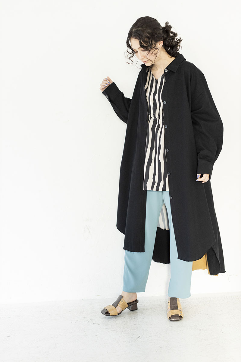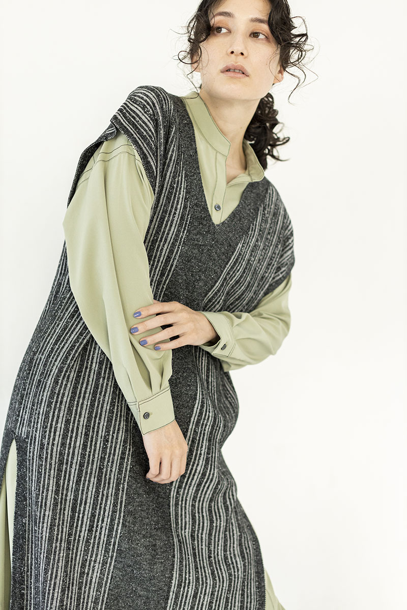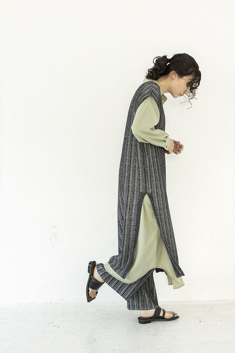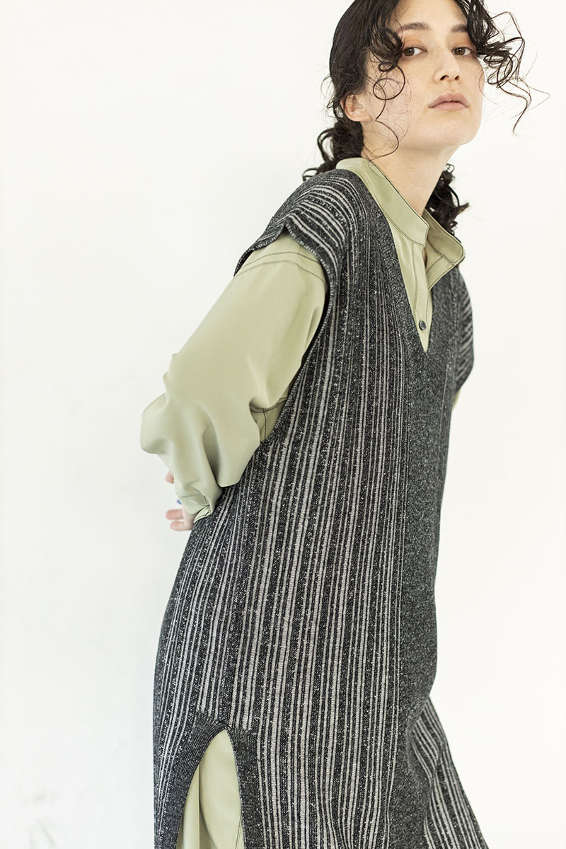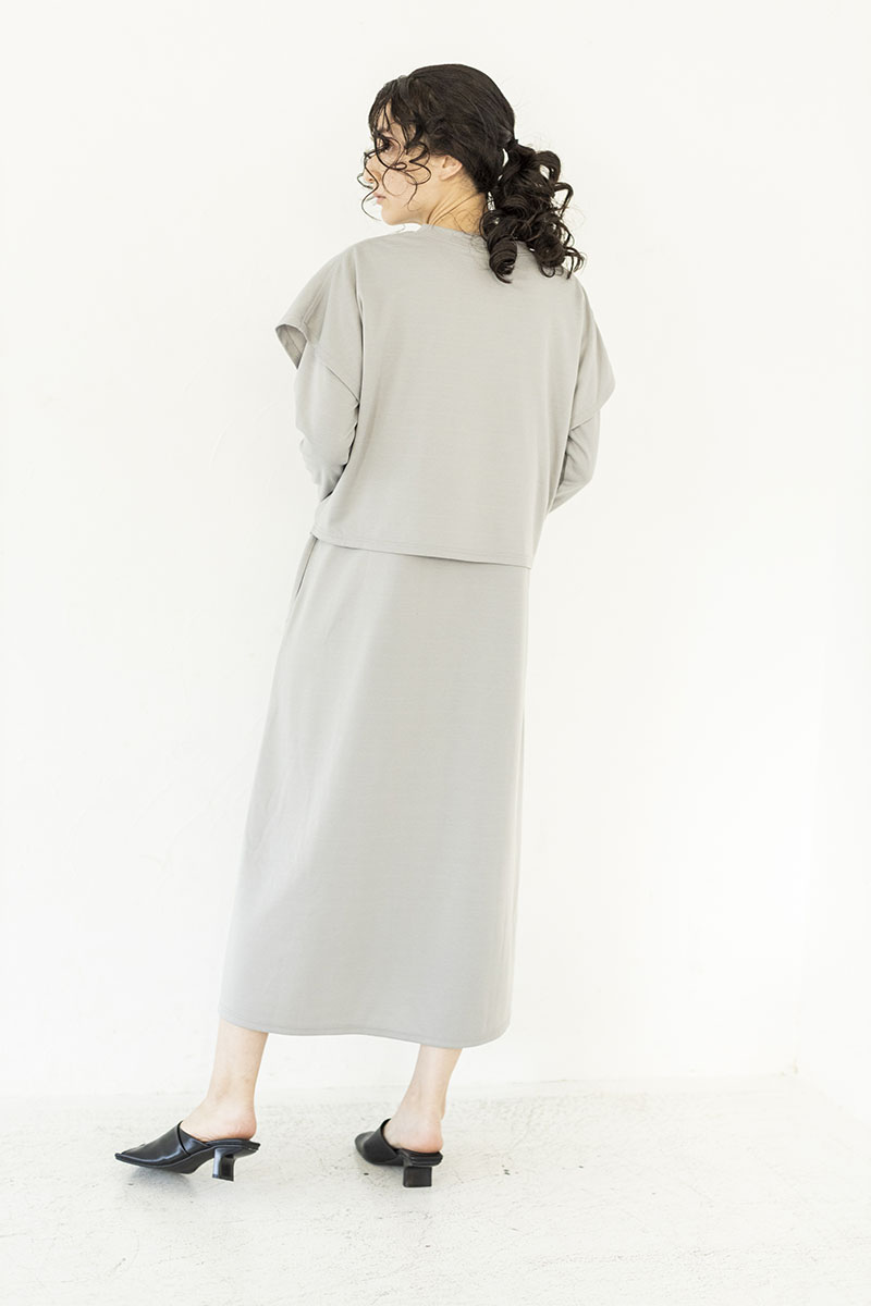 ドローコードで変化をつけたワンピースは、リラクシーなシルエットがら、しなやかな品の良い素材で凛とした表情に。