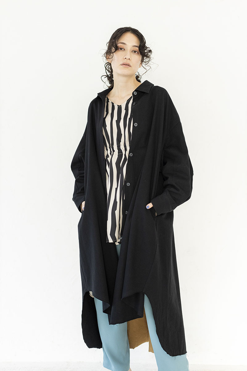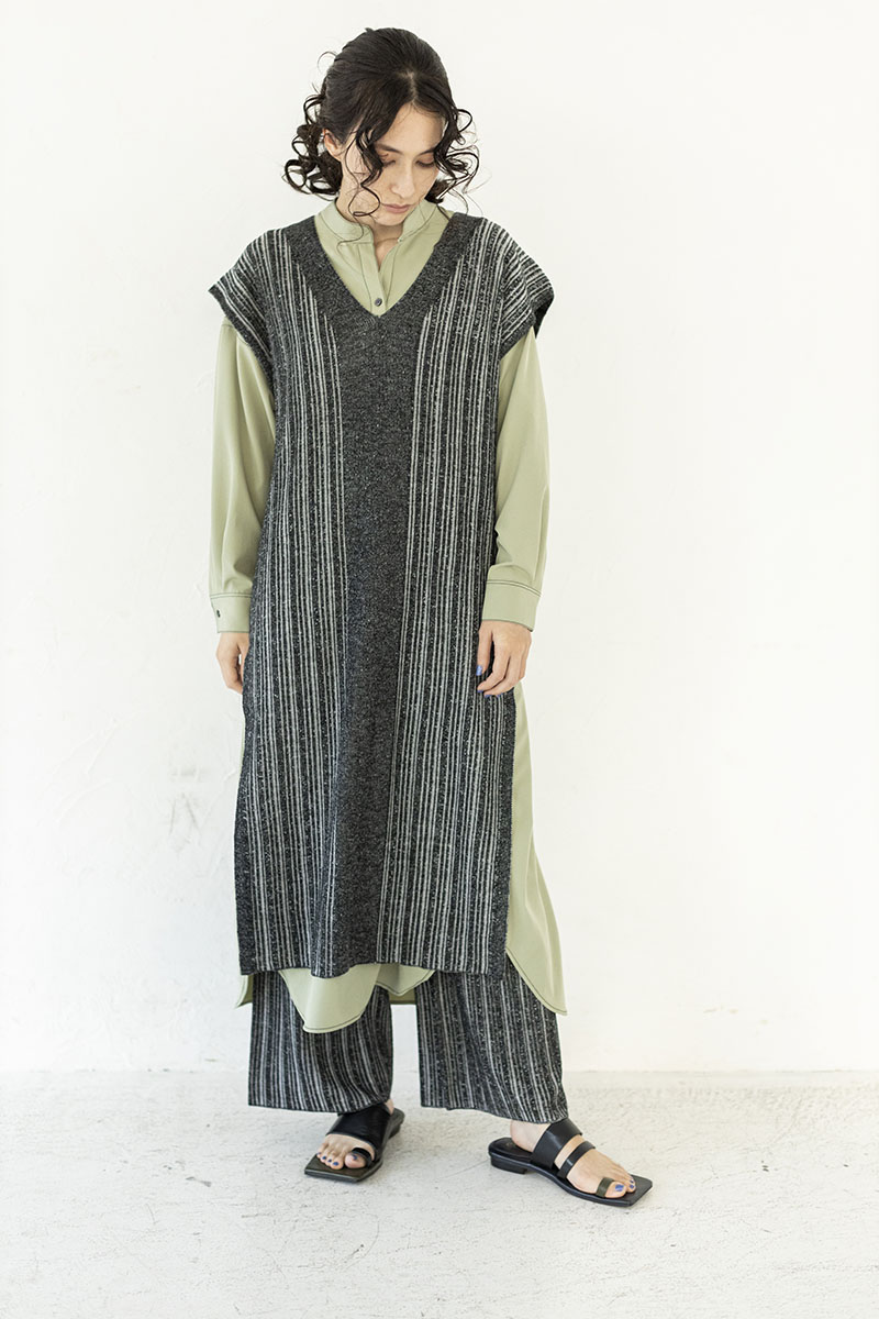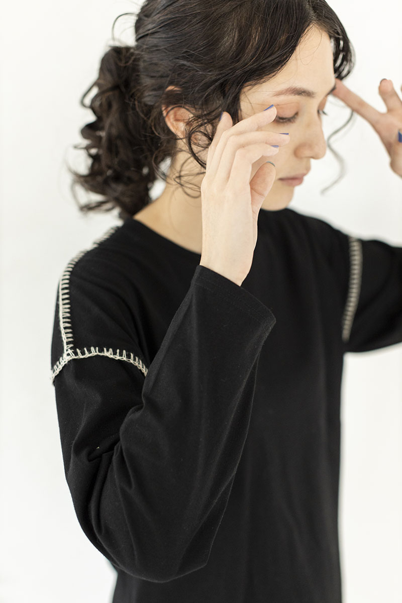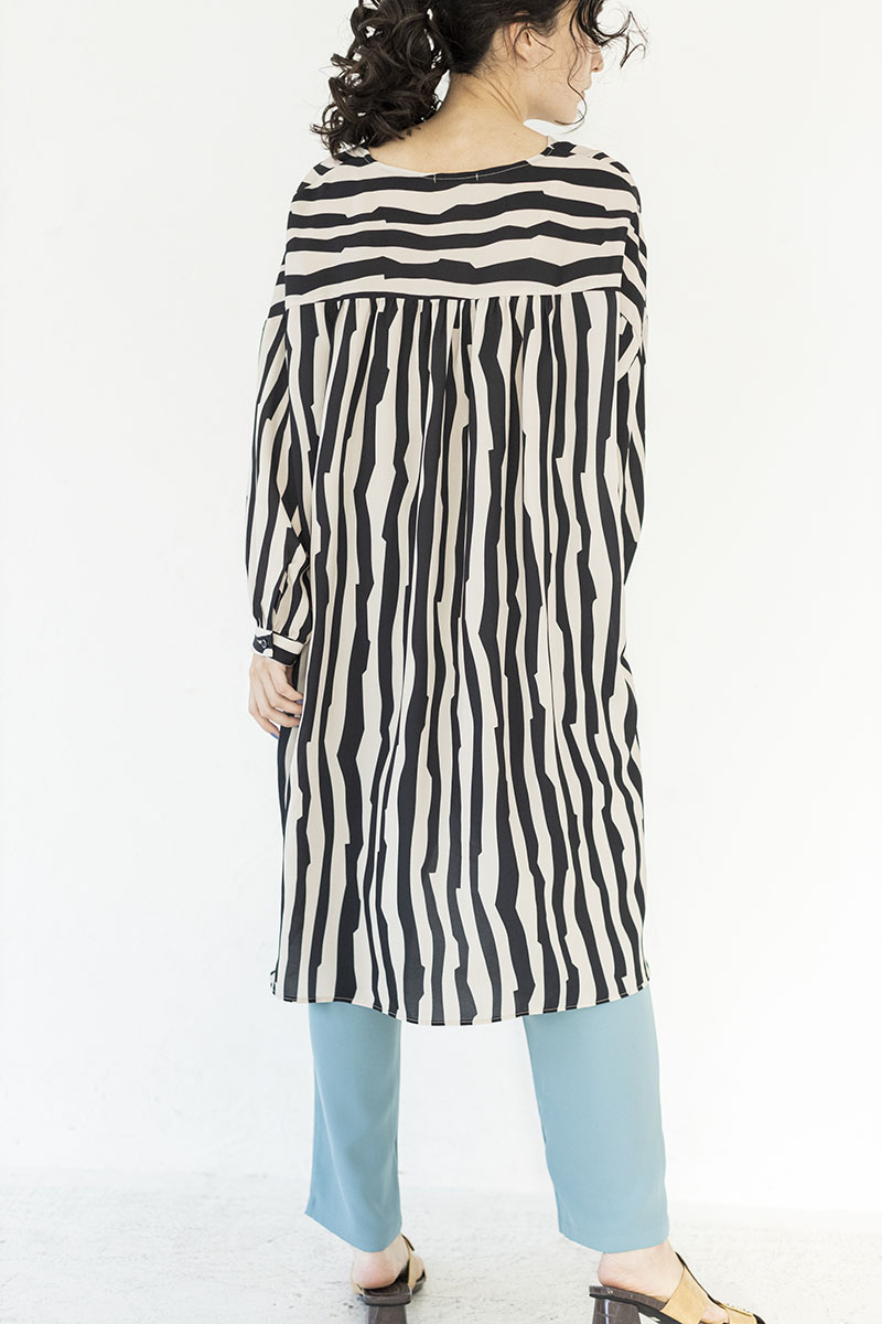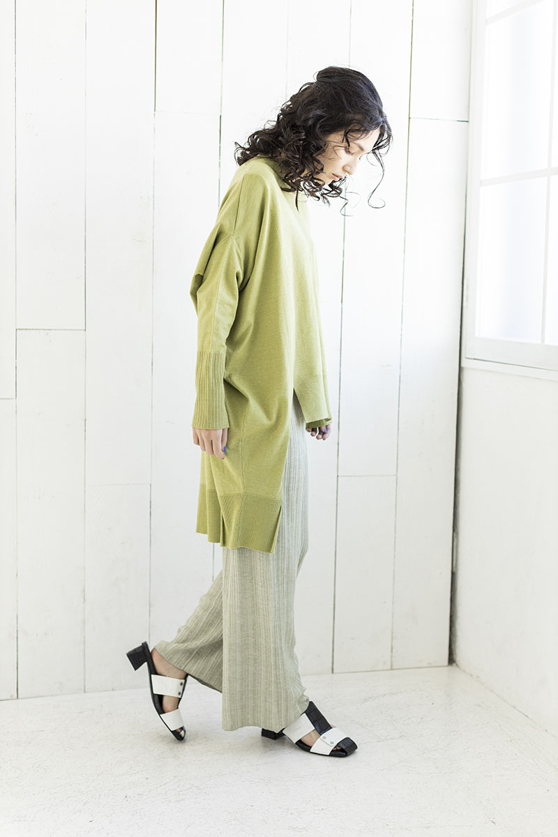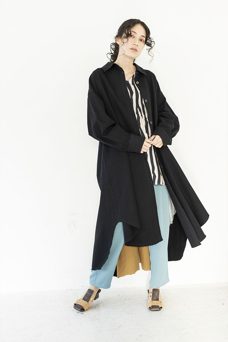 ドローコードで変化をつけたワンピースは、リラクシーなシルエットがら、しなやかな品の良い素材で凛とした表情に。