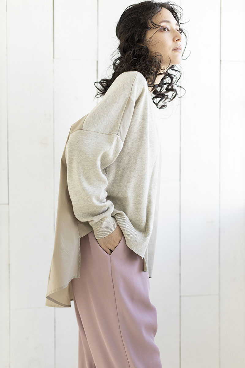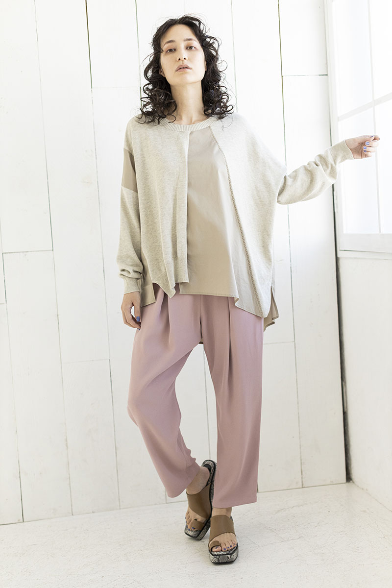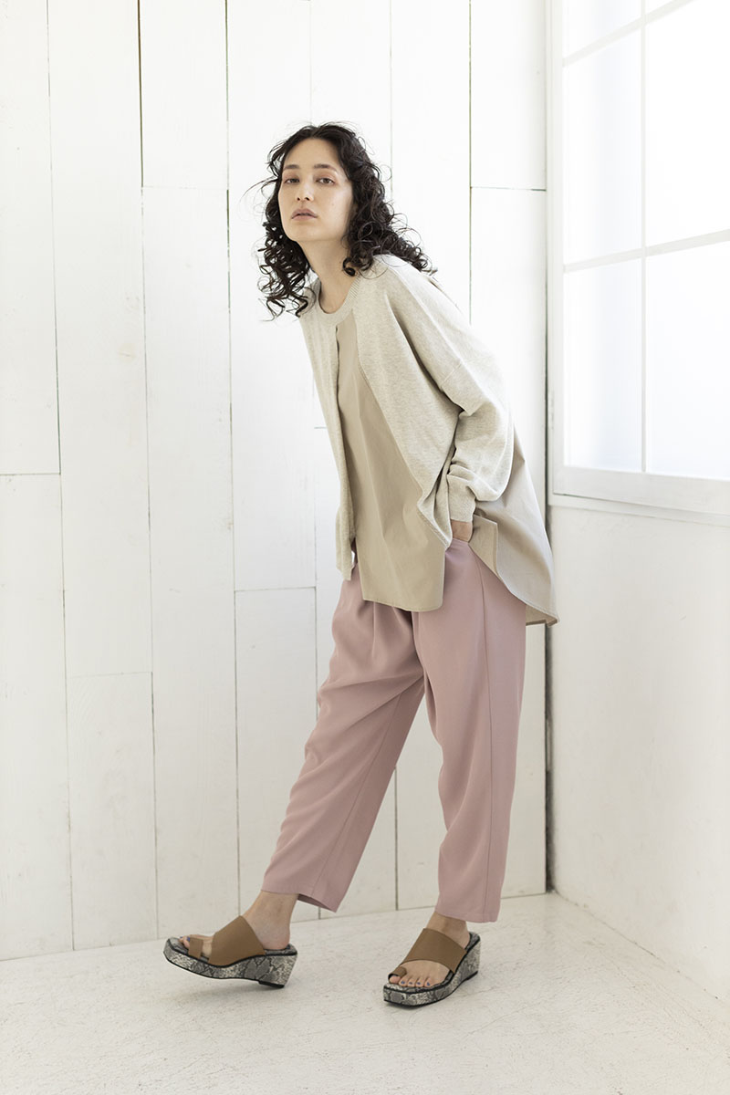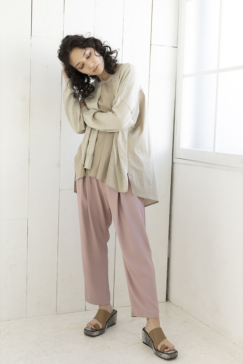 カジュアルなニットやパンツスタイルで、大人っぽさをキープ。