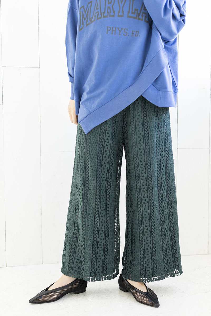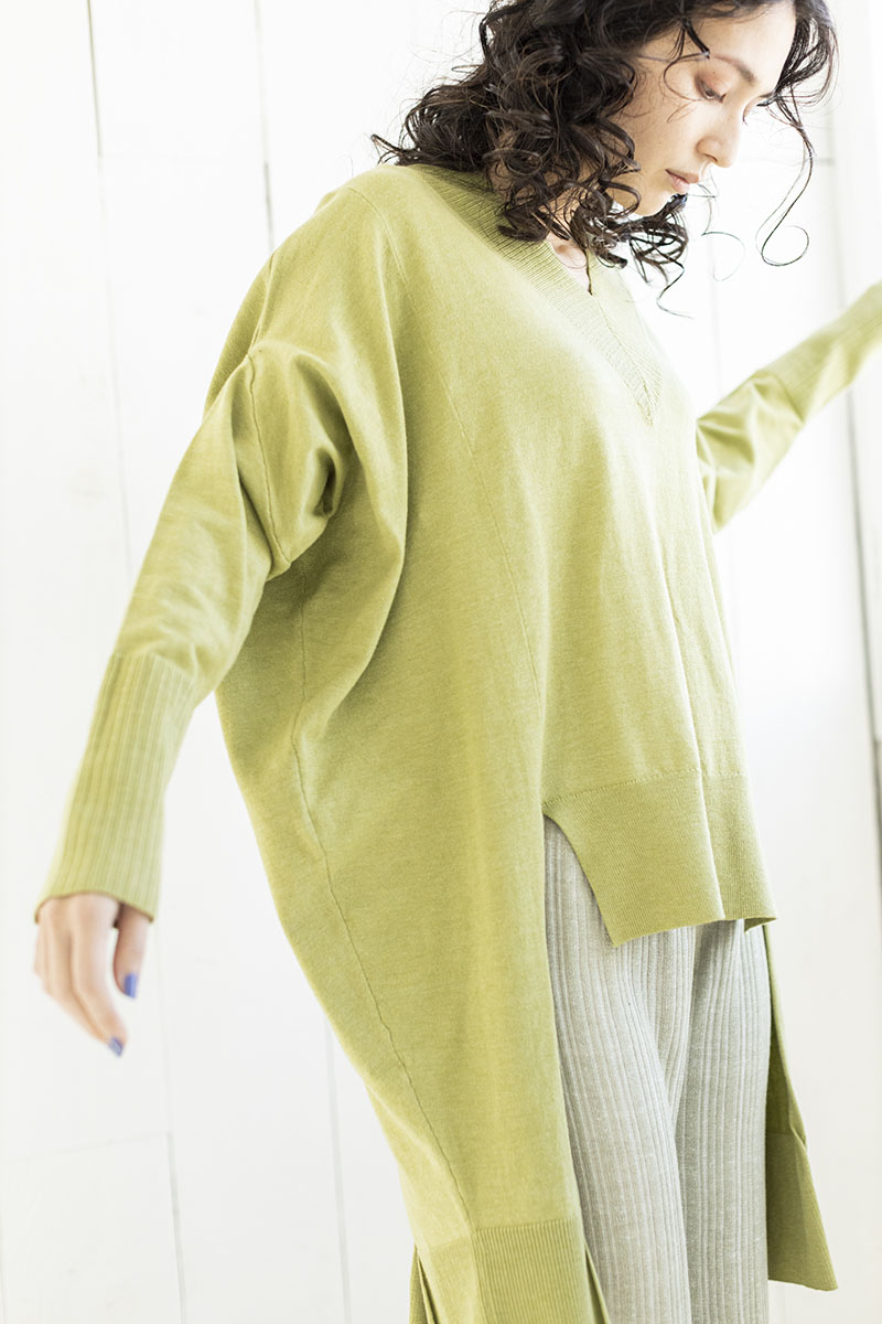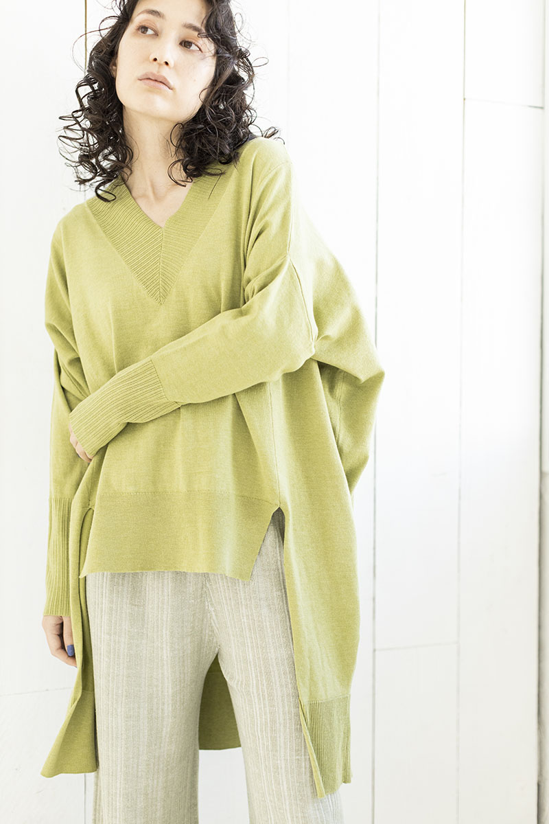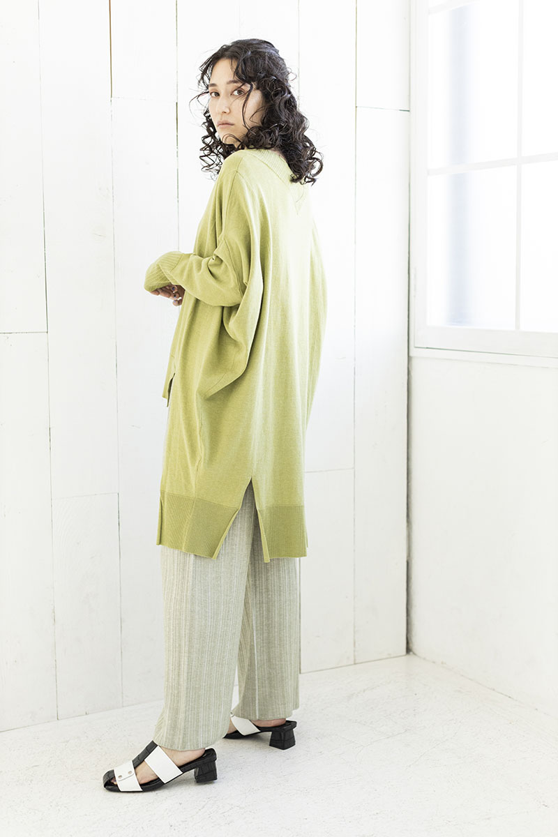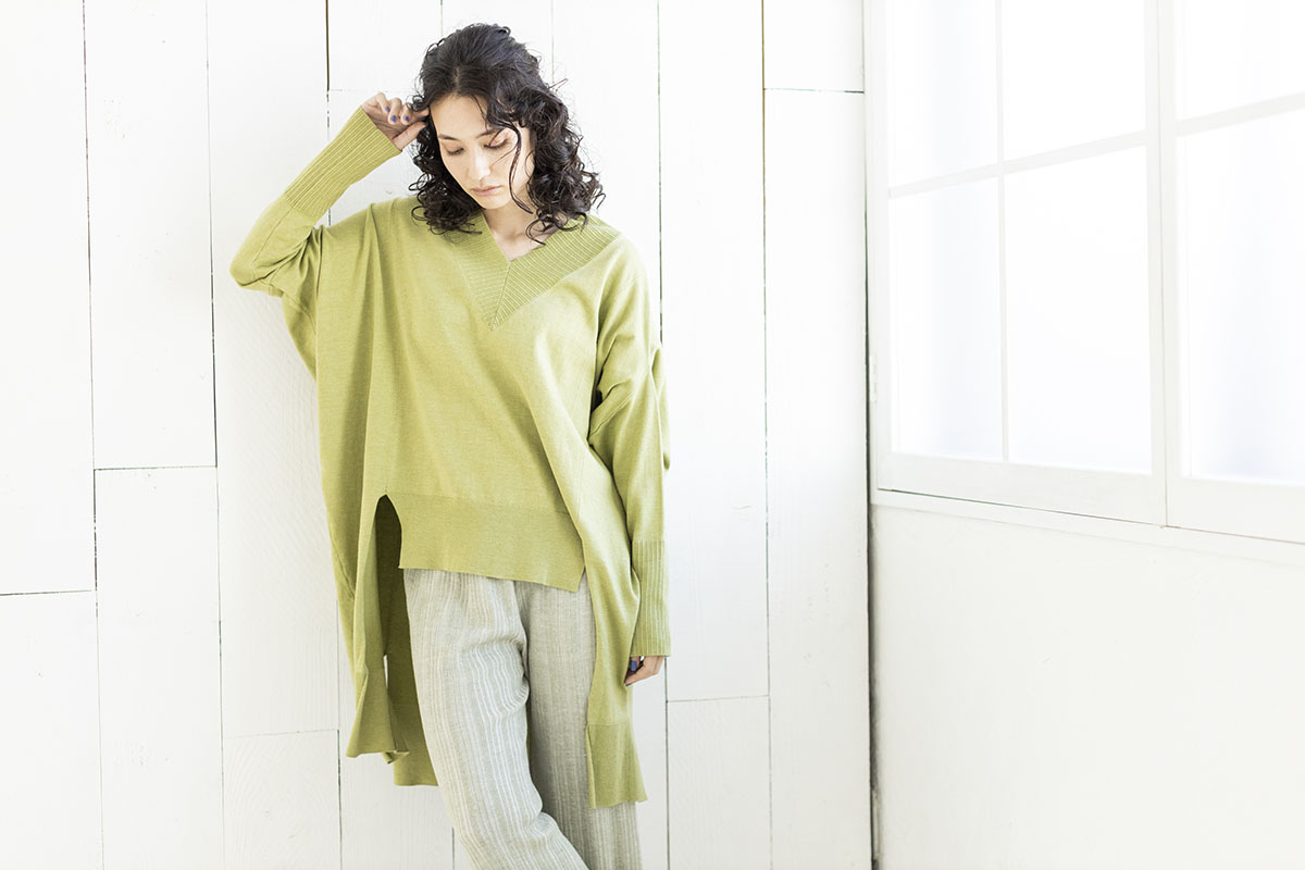 カジュアルなニットやパンツスタイルで、大人っぽさをキープ。
