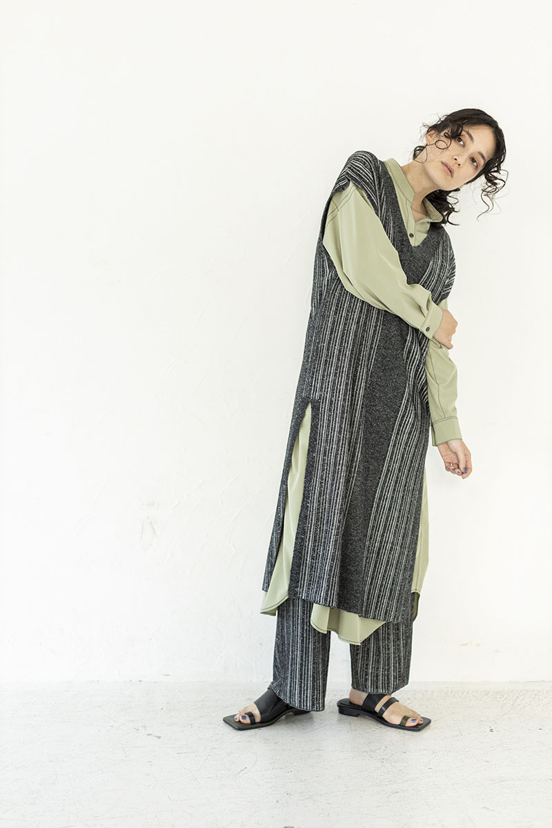 素材や柄にメリハリを持たせれば、スタイルアップも叶う。