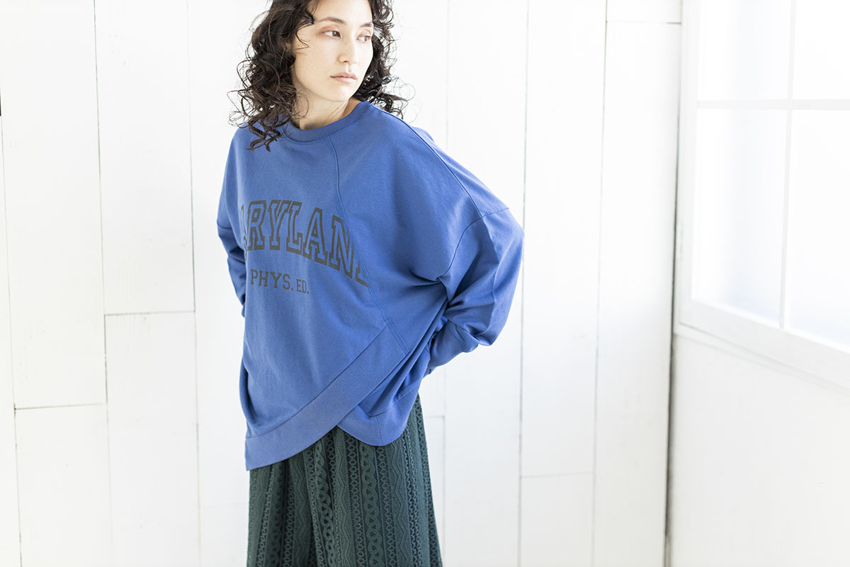 デイリーユースに欠かせないロゴスウェットは、遊び心を持つカラーで差をつけて。