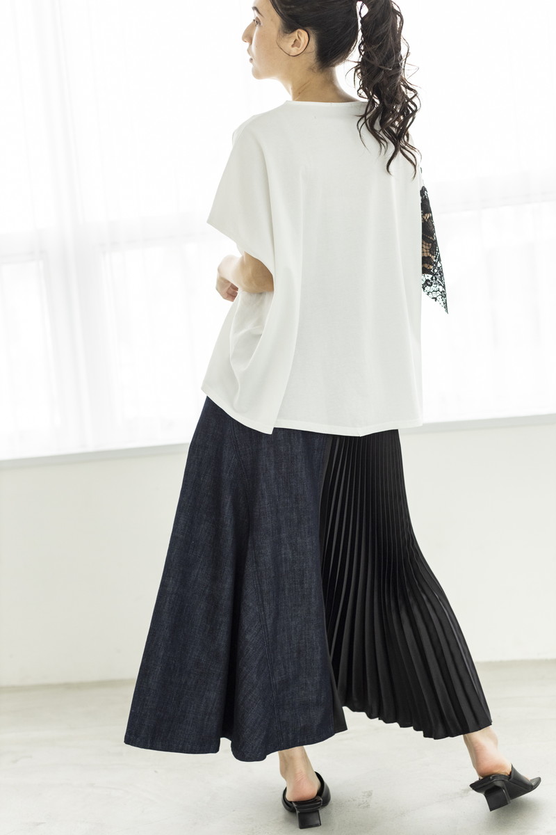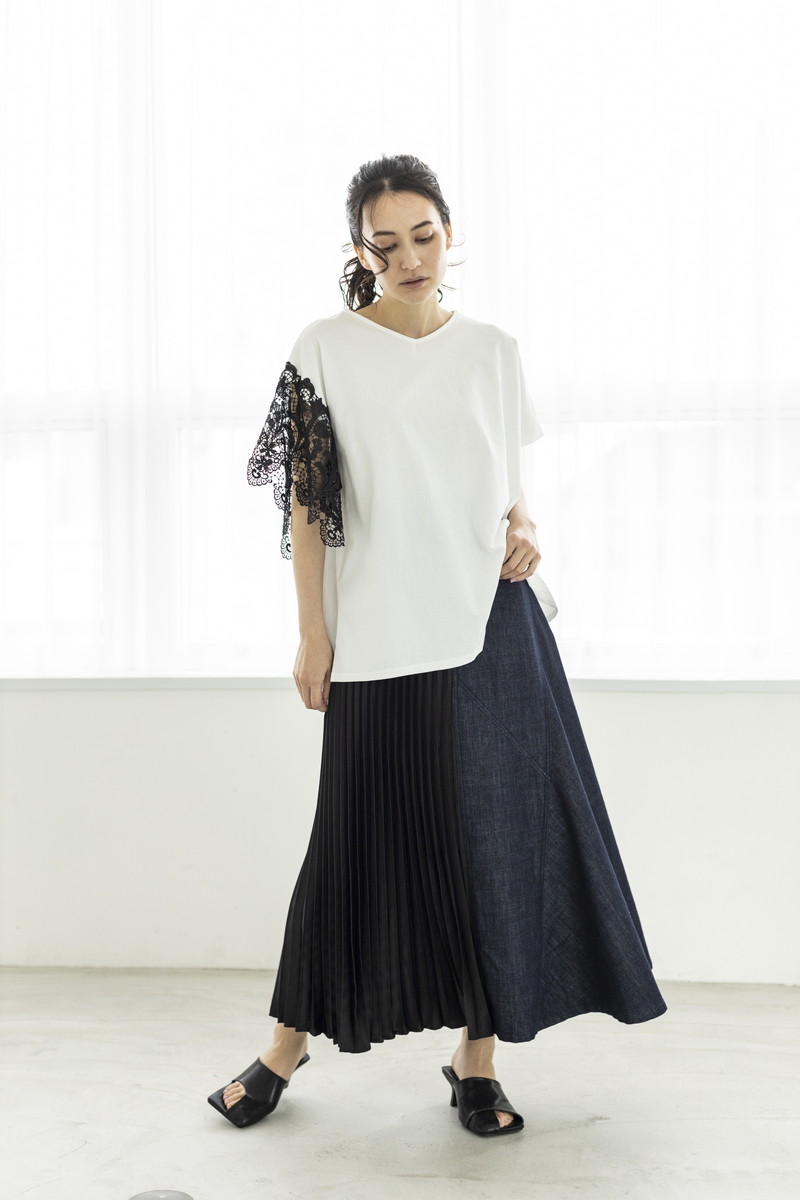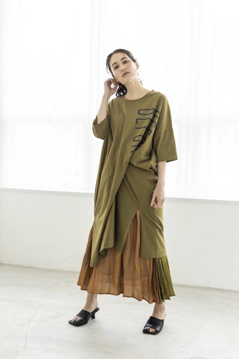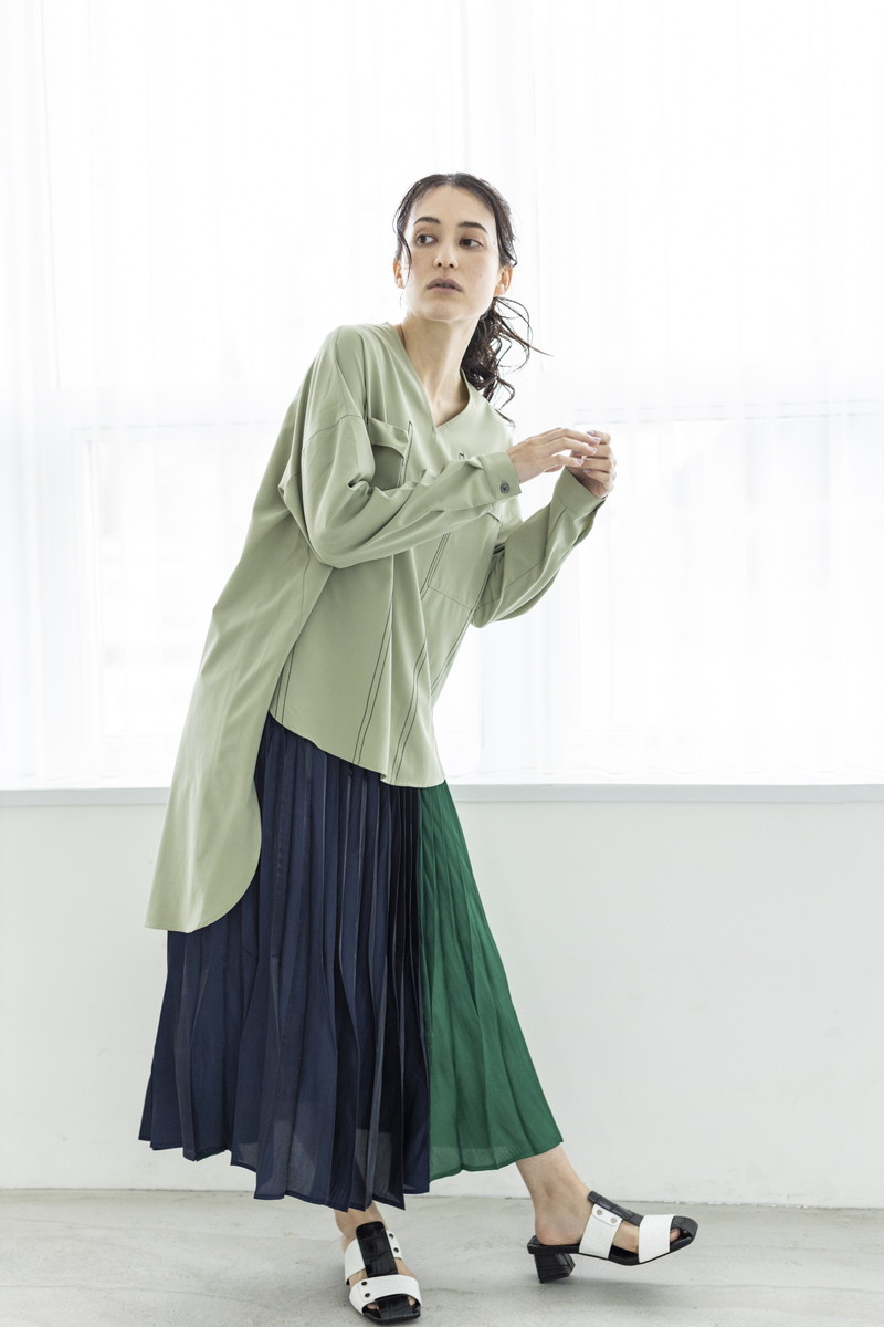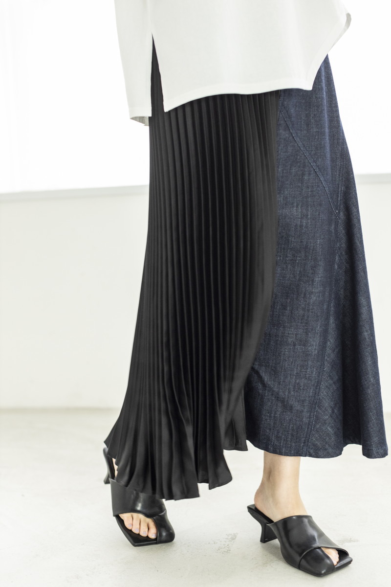 構築的なプリーツが魅力のスカート。