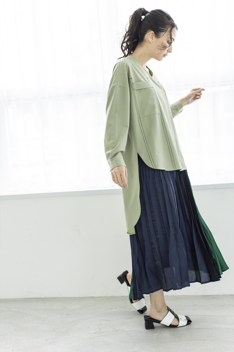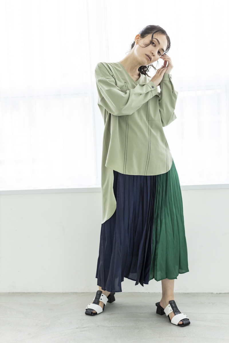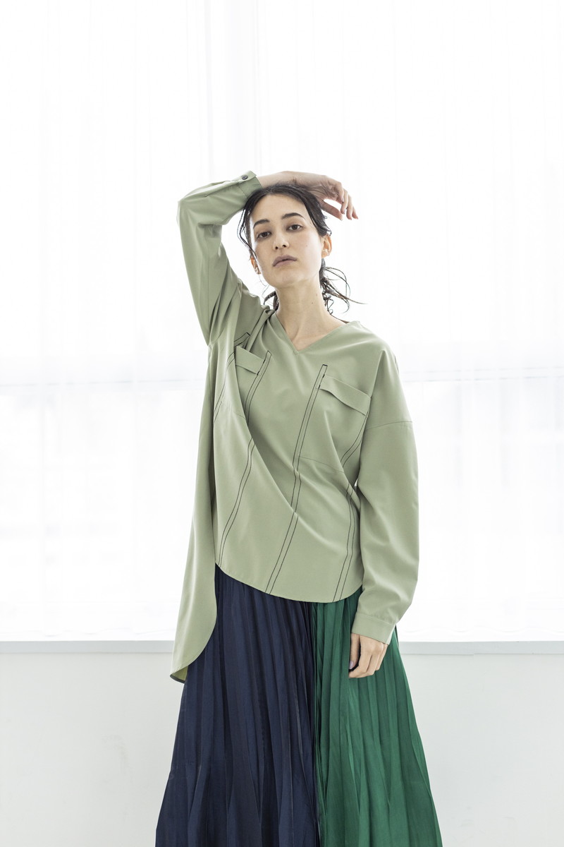 ステッチ使いでワークムードなブラウスと、