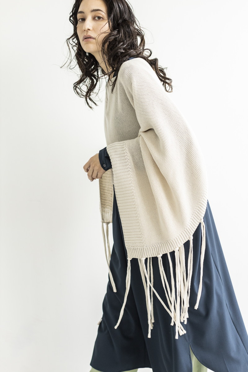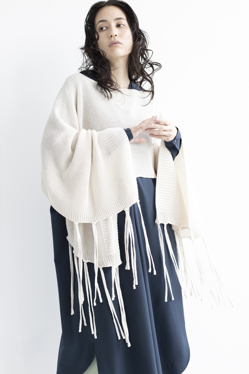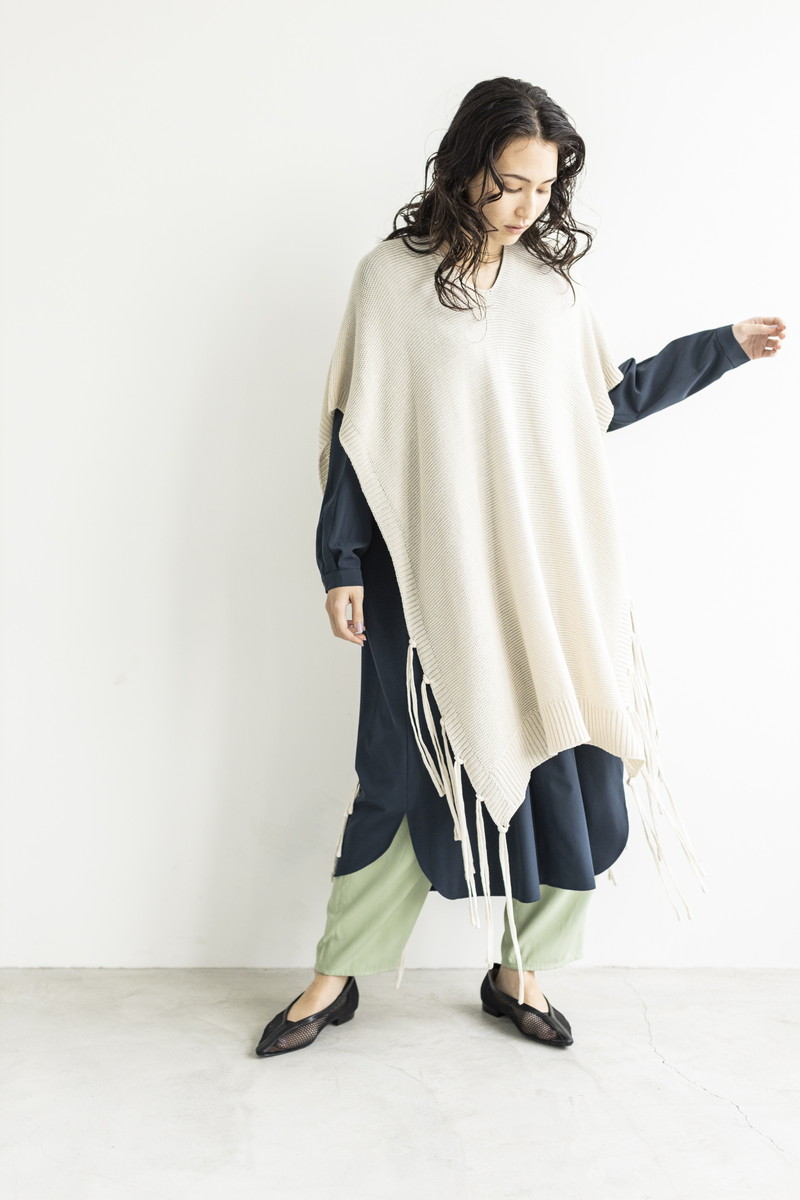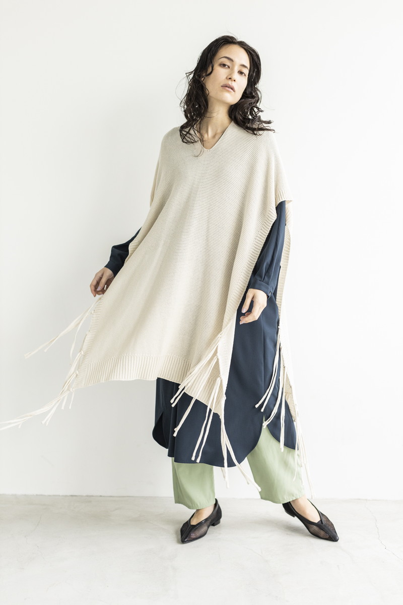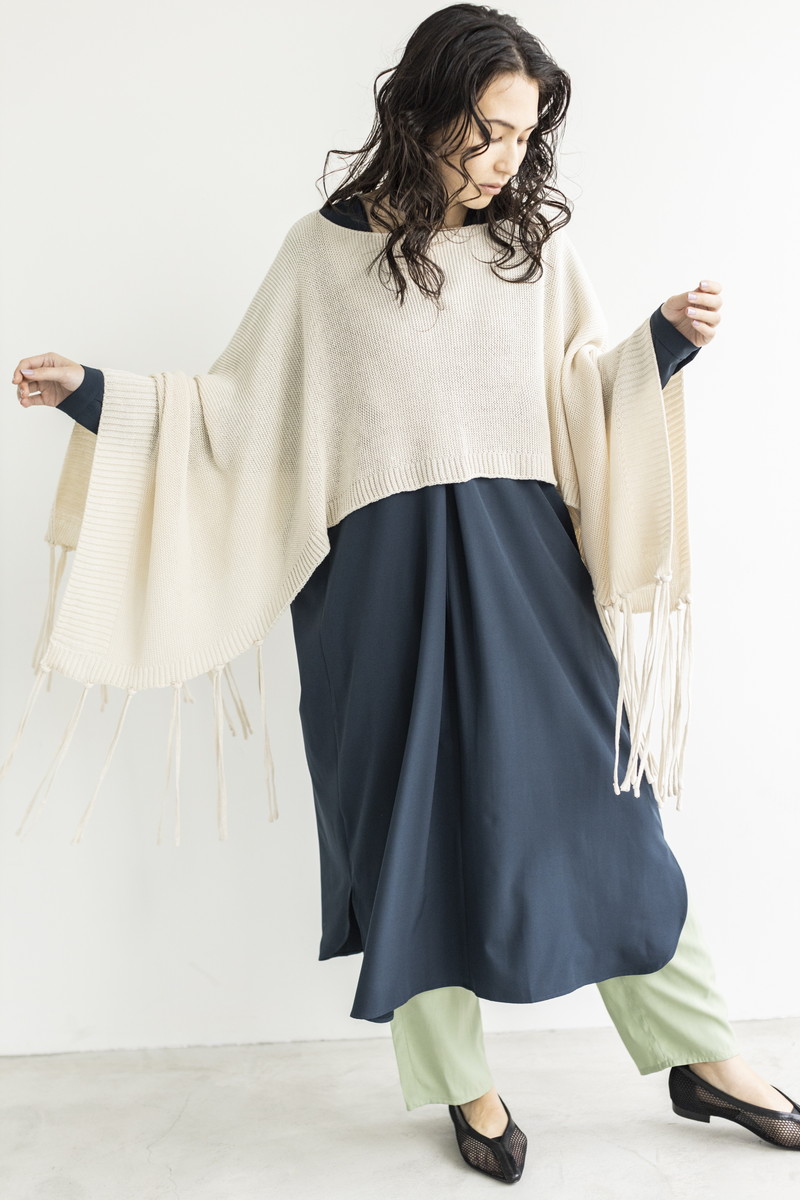 フリンジニットでカジュアルダウン。