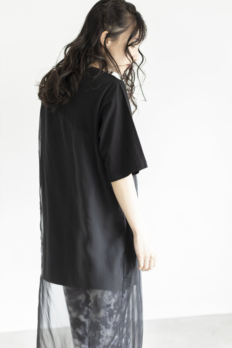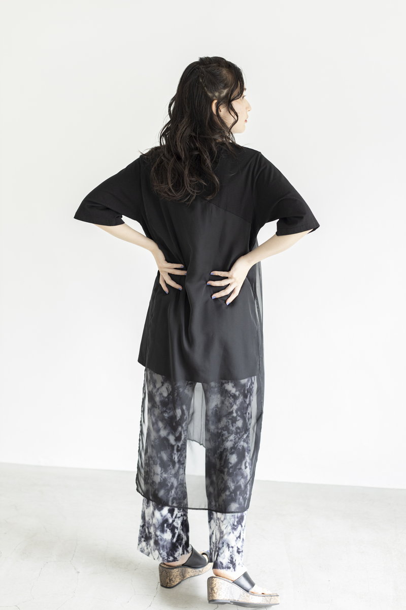 夏のBLACKには、異素材や柄MIXがキー。