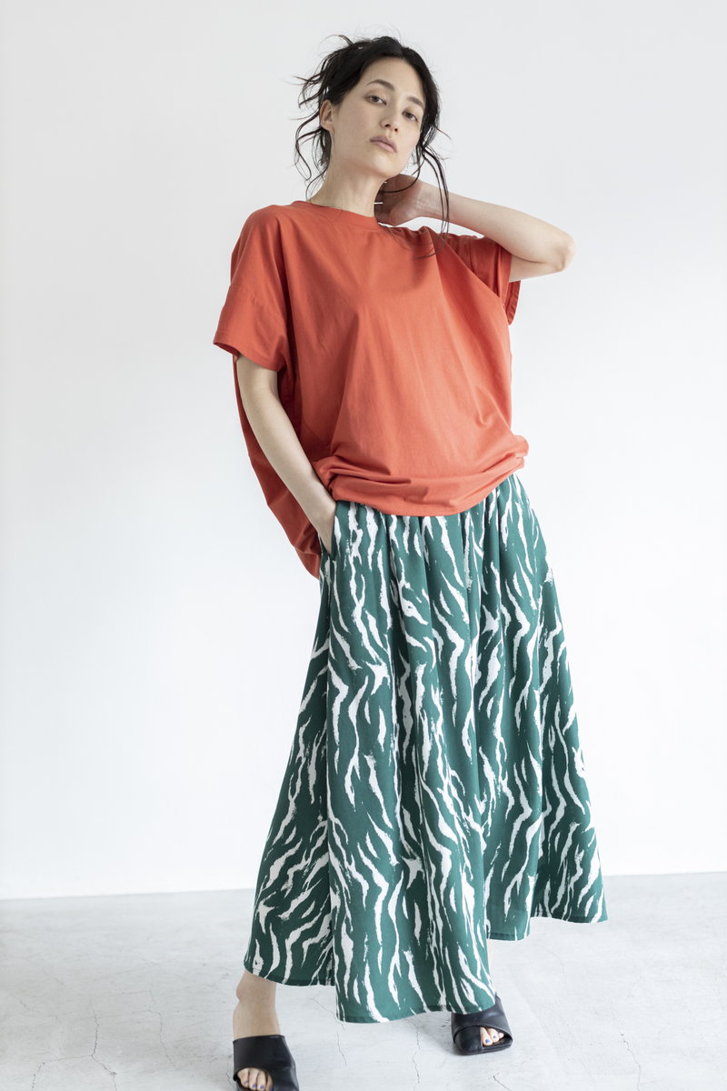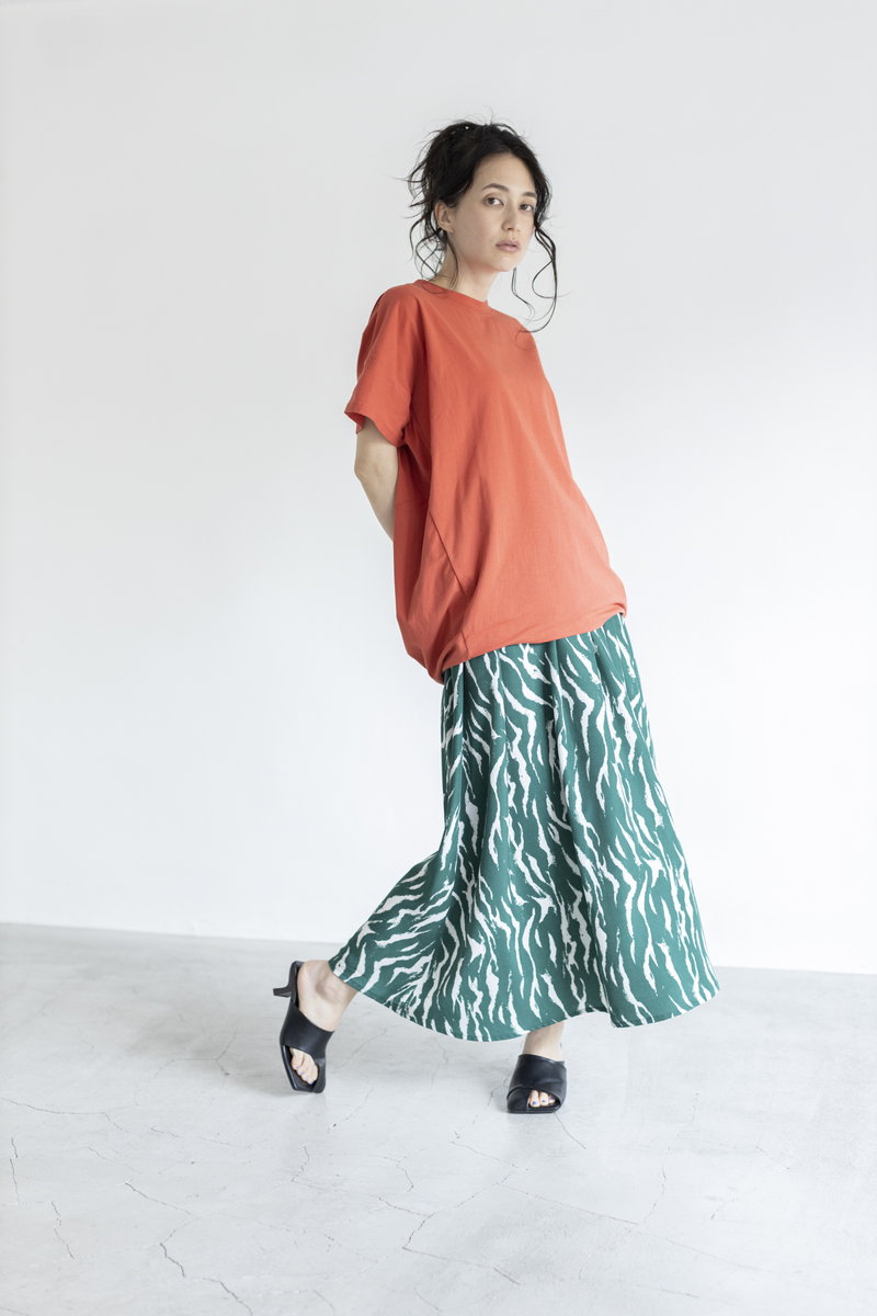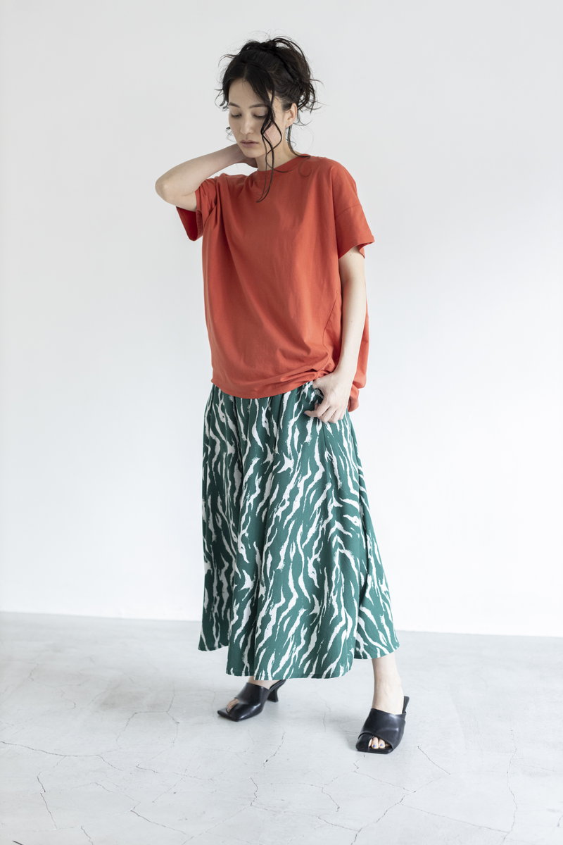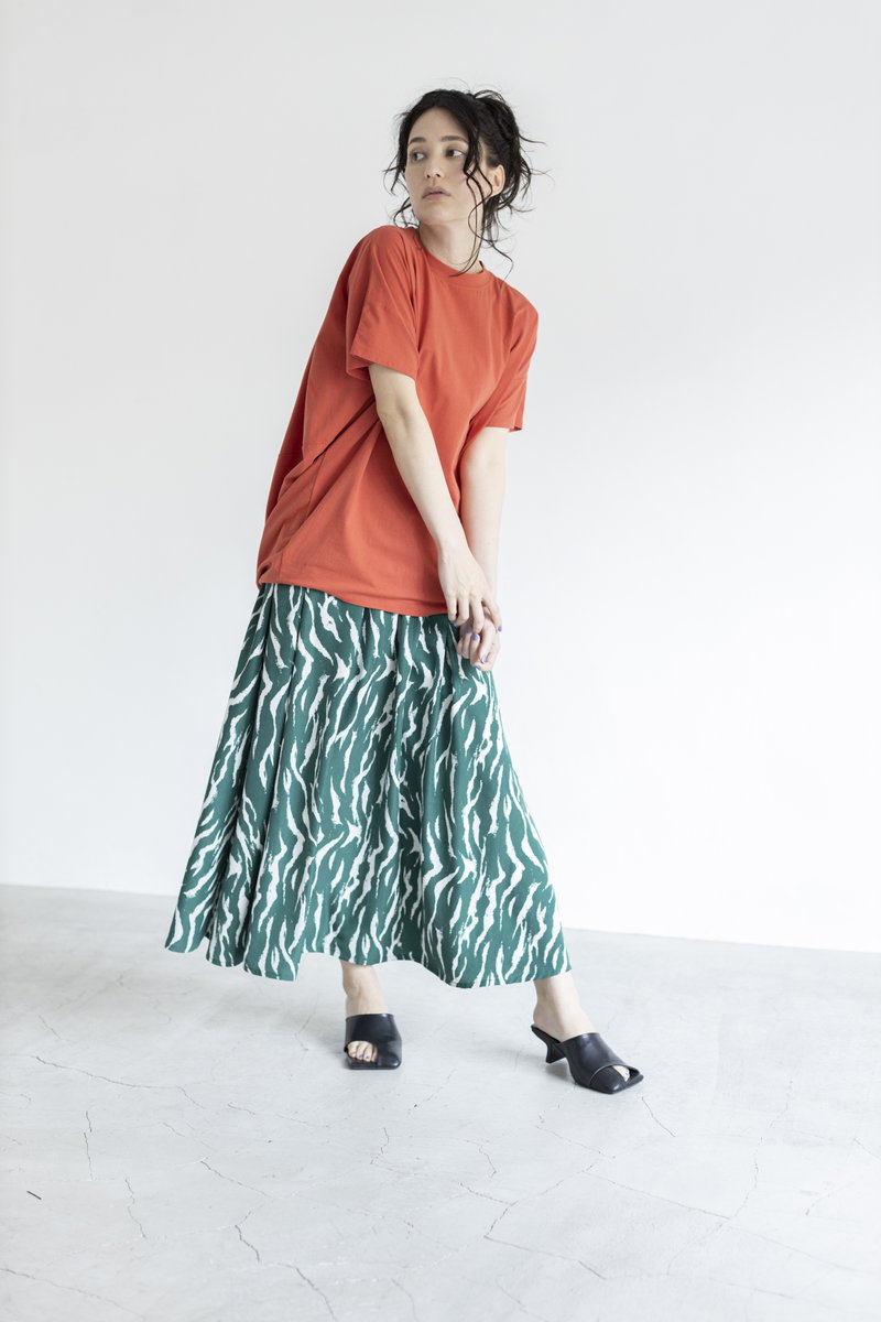 女っぽさに傾くフレアスカートにエッジを効かせて。