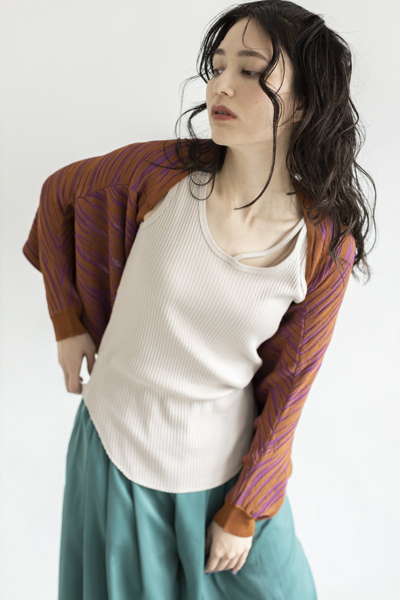 ボレロにも変化するニットプルオーバーは、