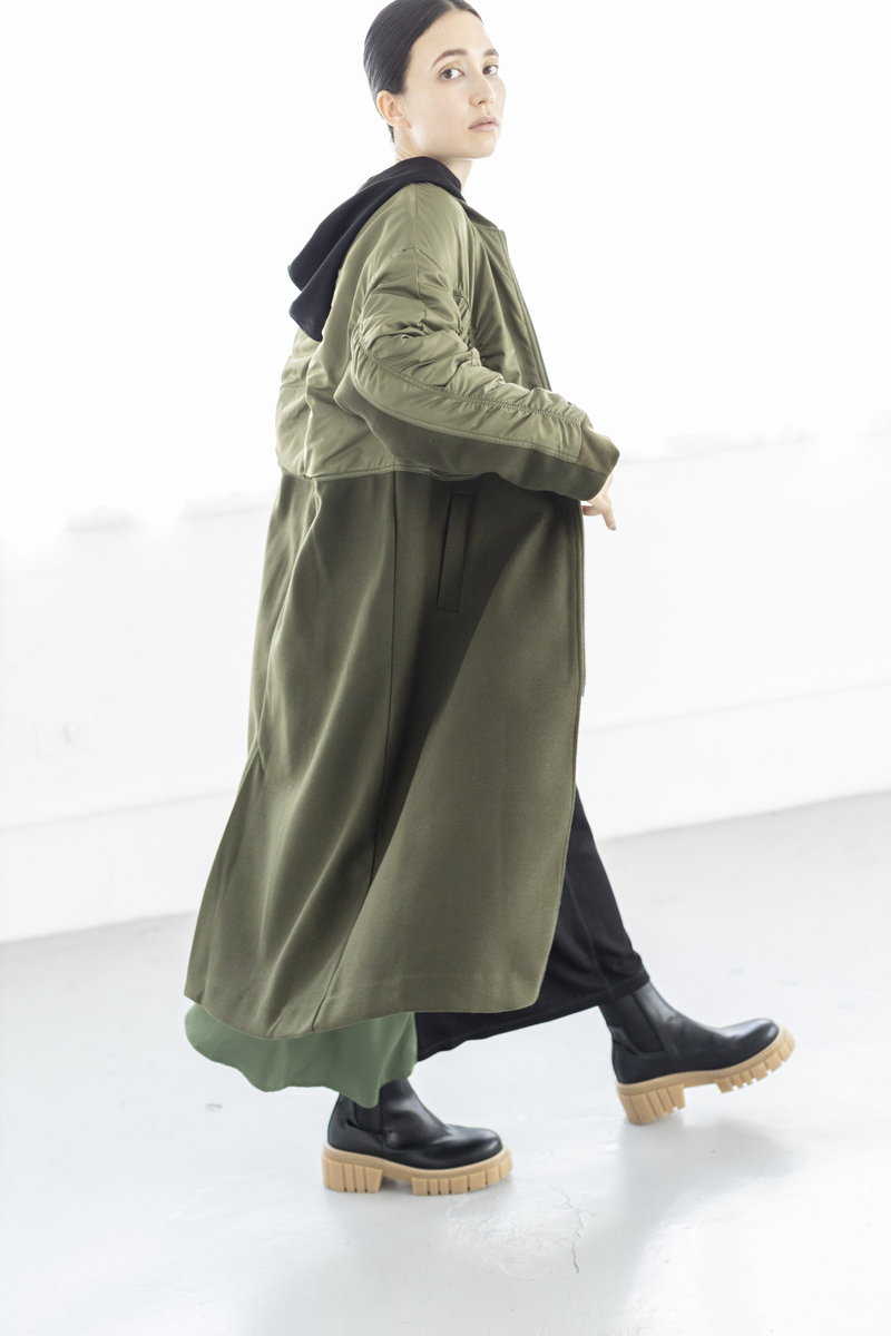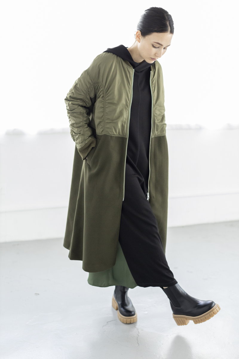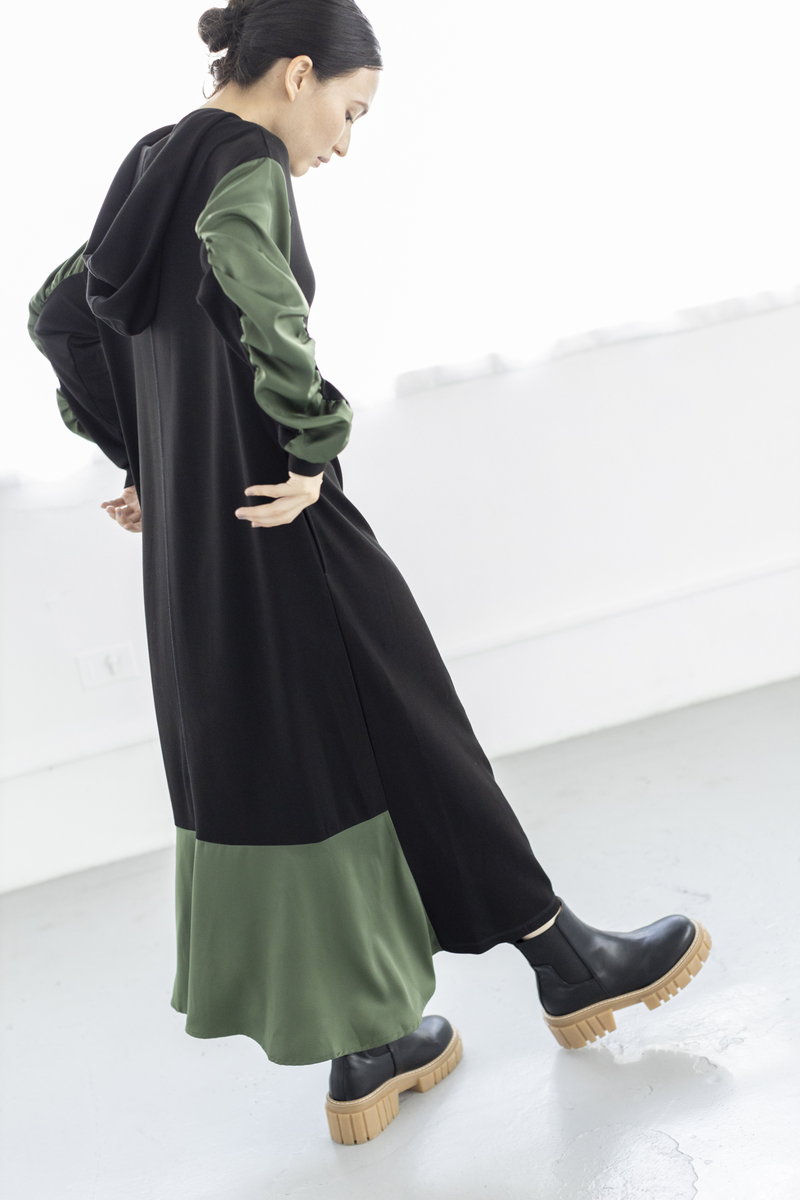 フーディもロングワンピースなら、大人っぽさをキープ。