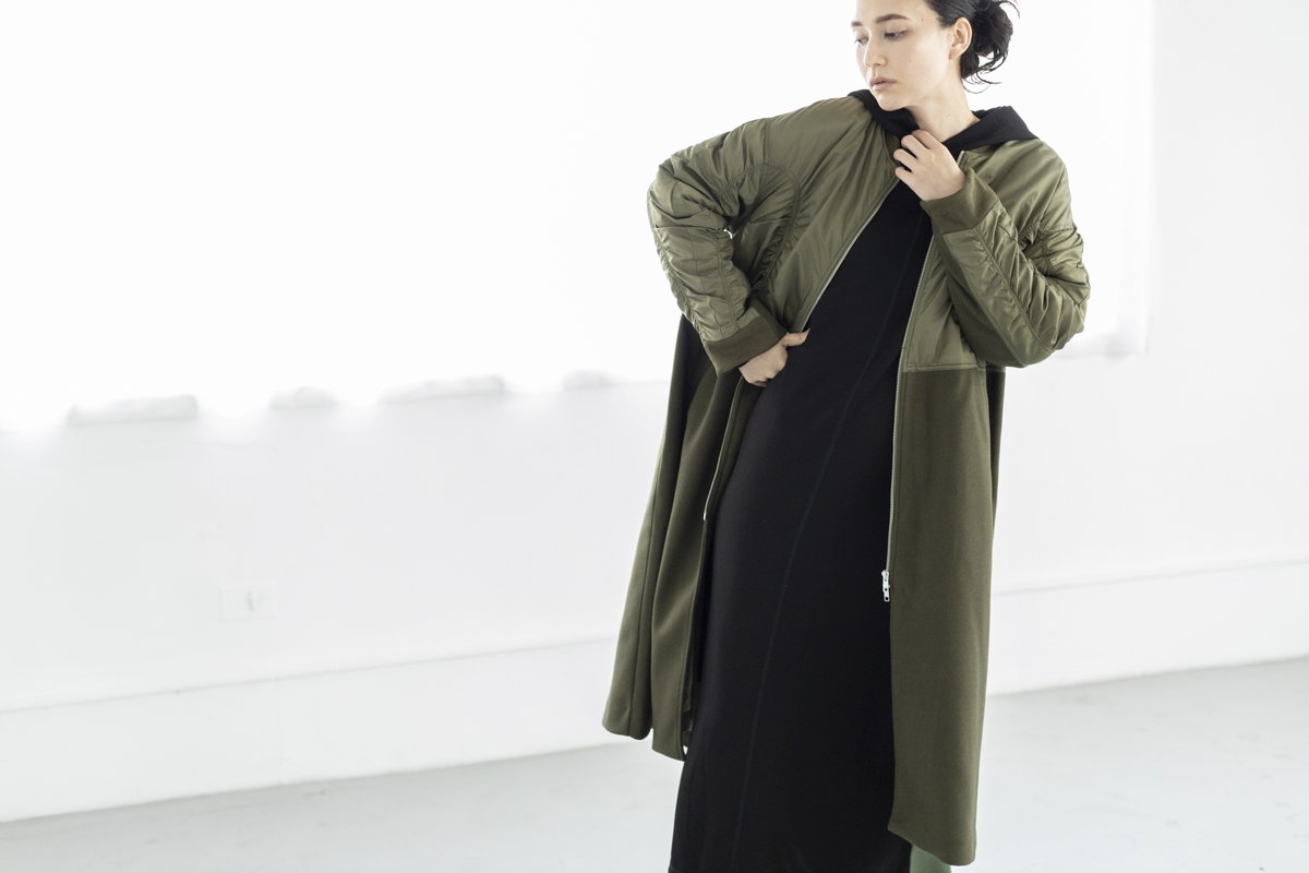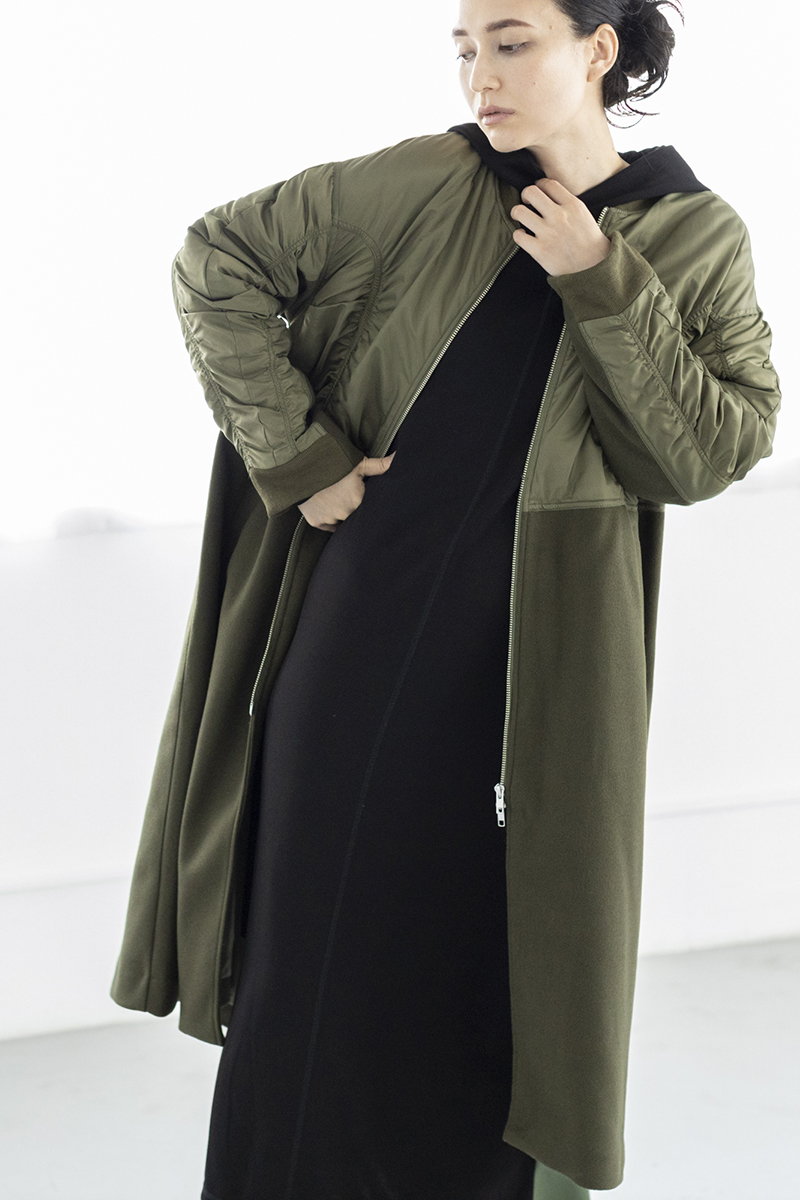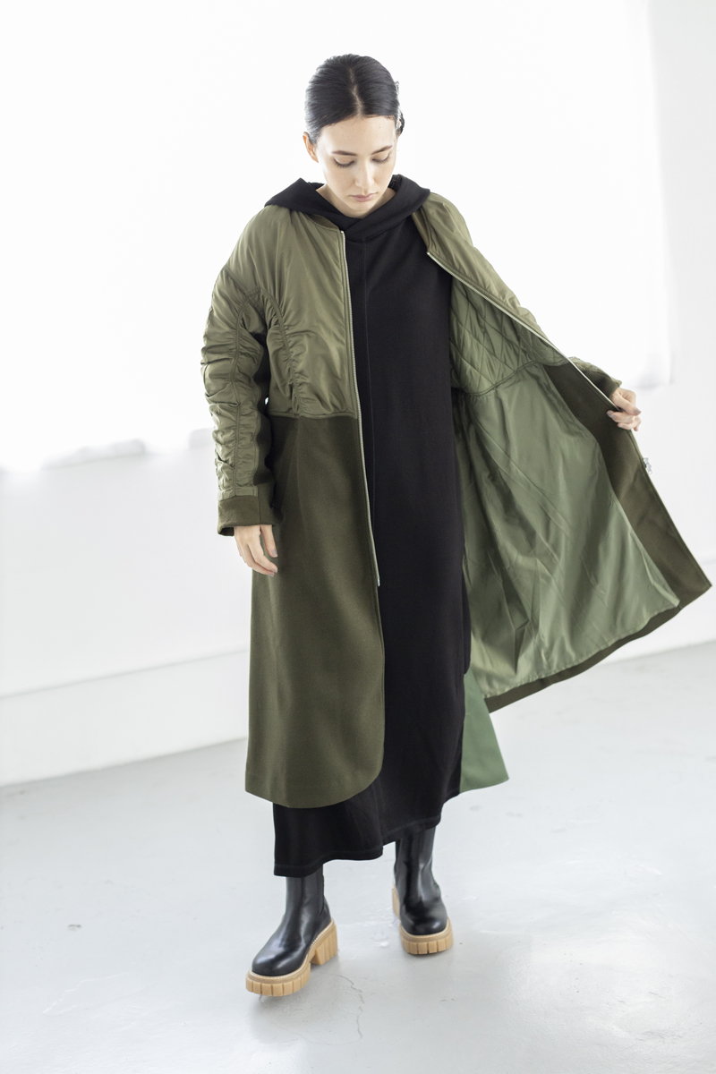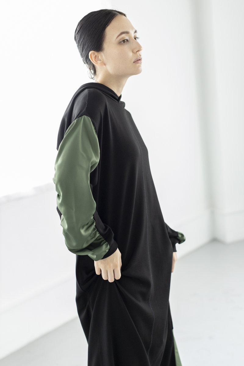 フーディもロングワンピースなら、大人っぽさをキープ。