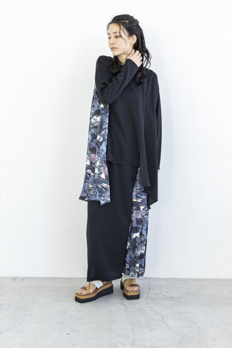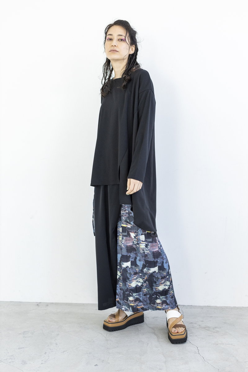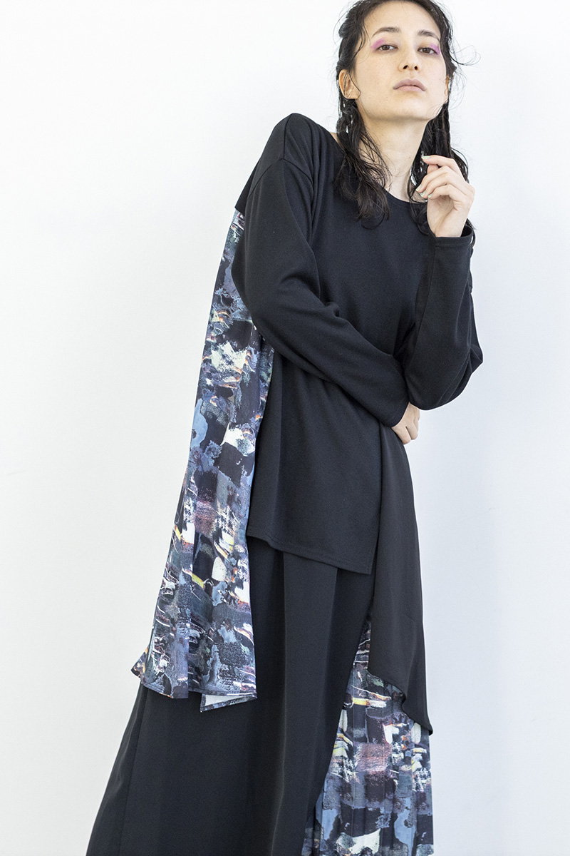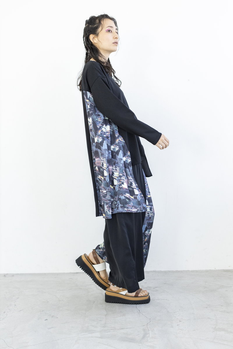 ラフなカットソーをプリントパターンで繋いで、