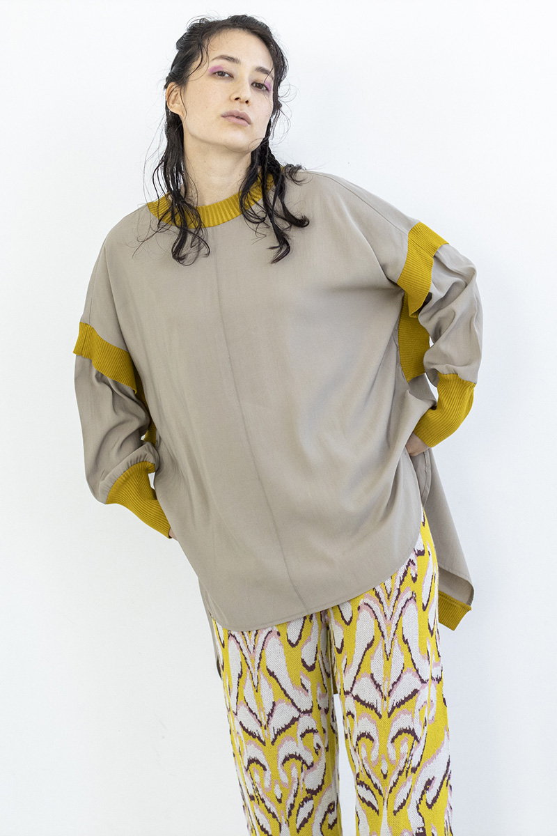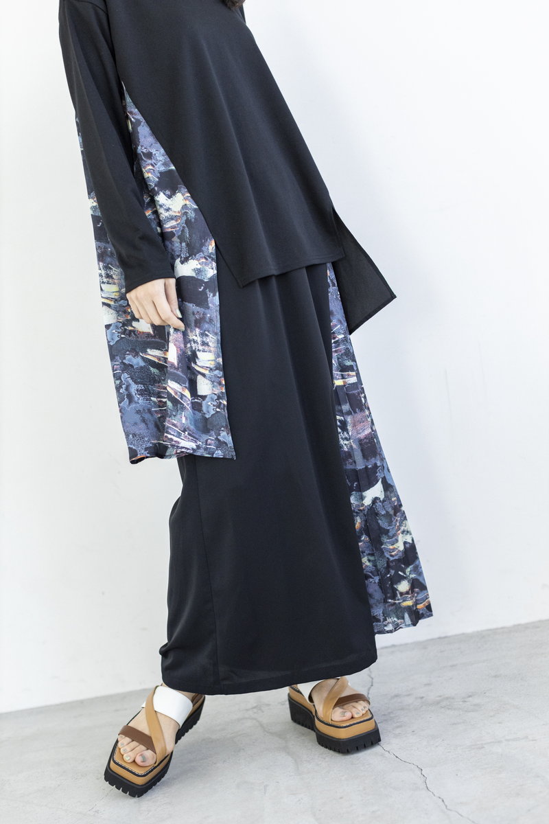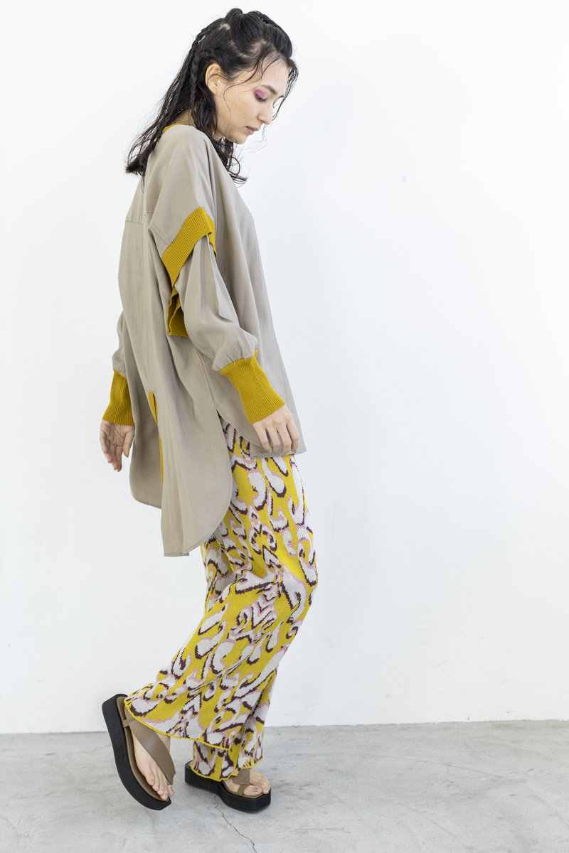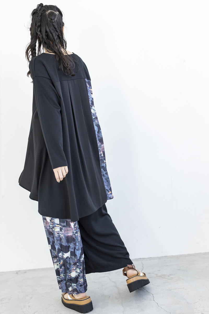 ラフなカットソーをプリントパターンで繋いで、