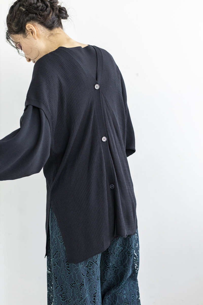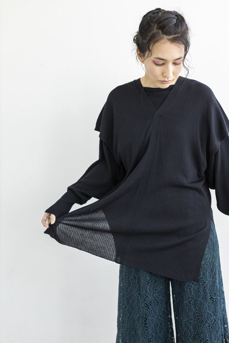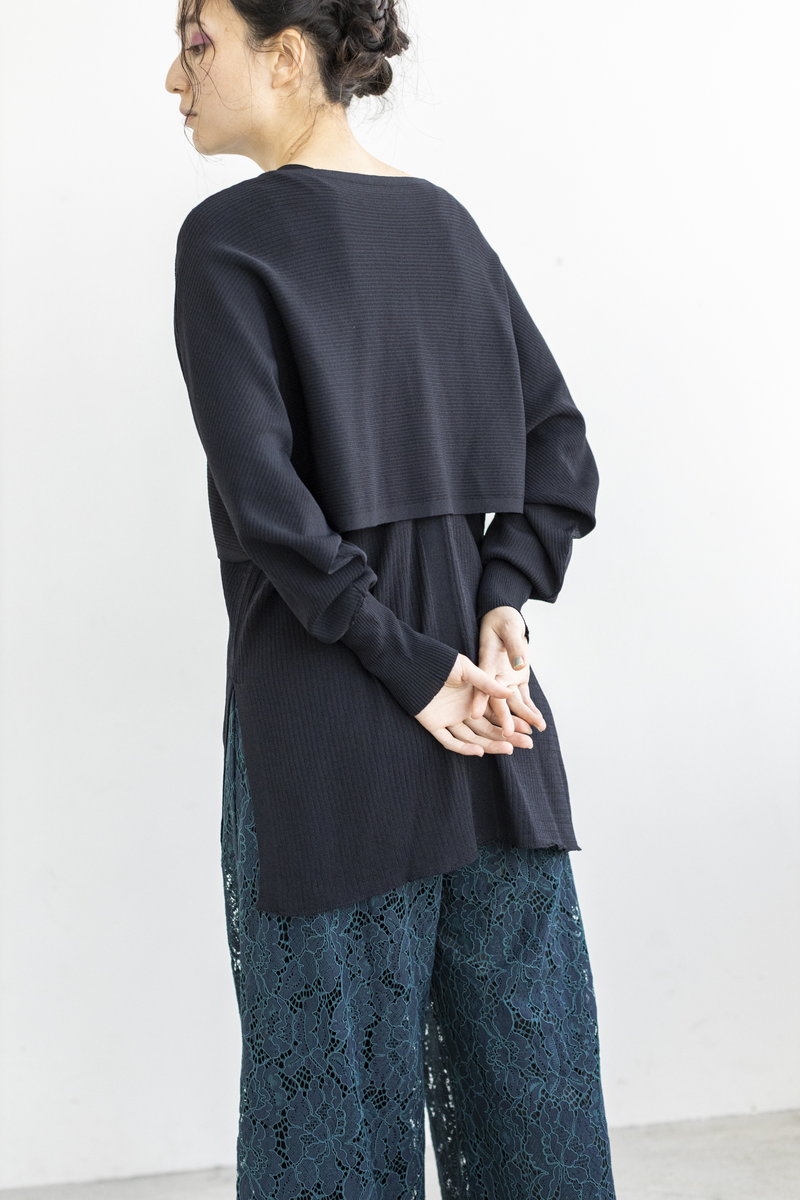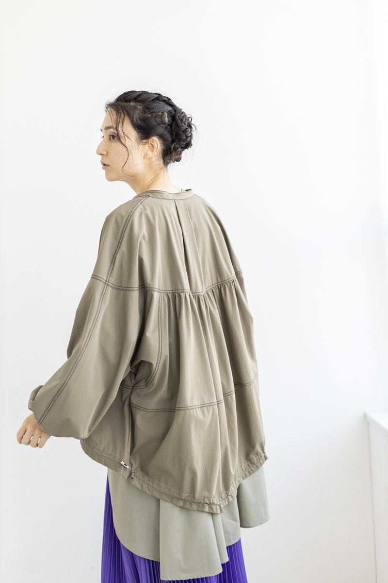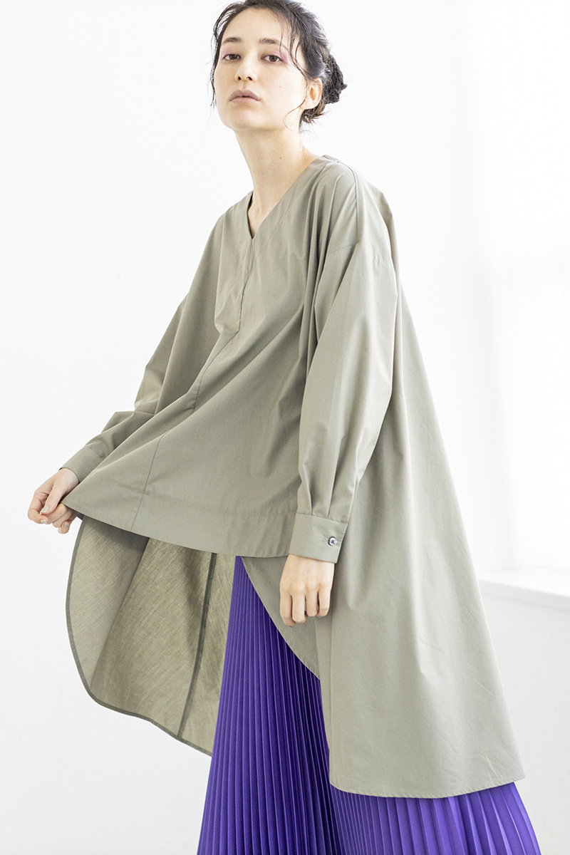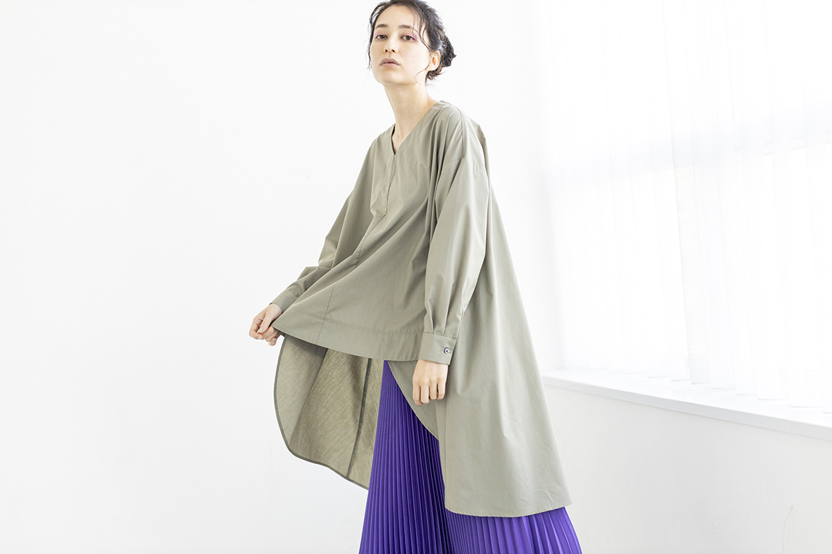 ブラウスのフレアを重ねて。