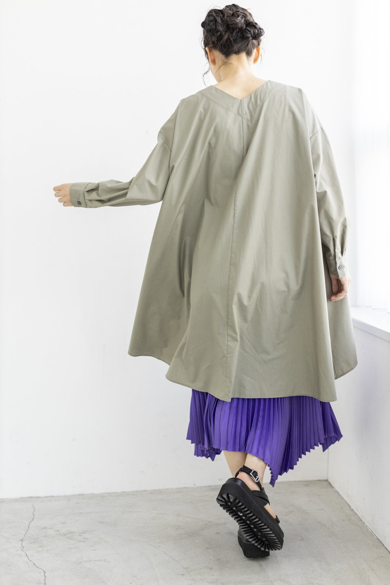 シャツワンピース。サンダルは
