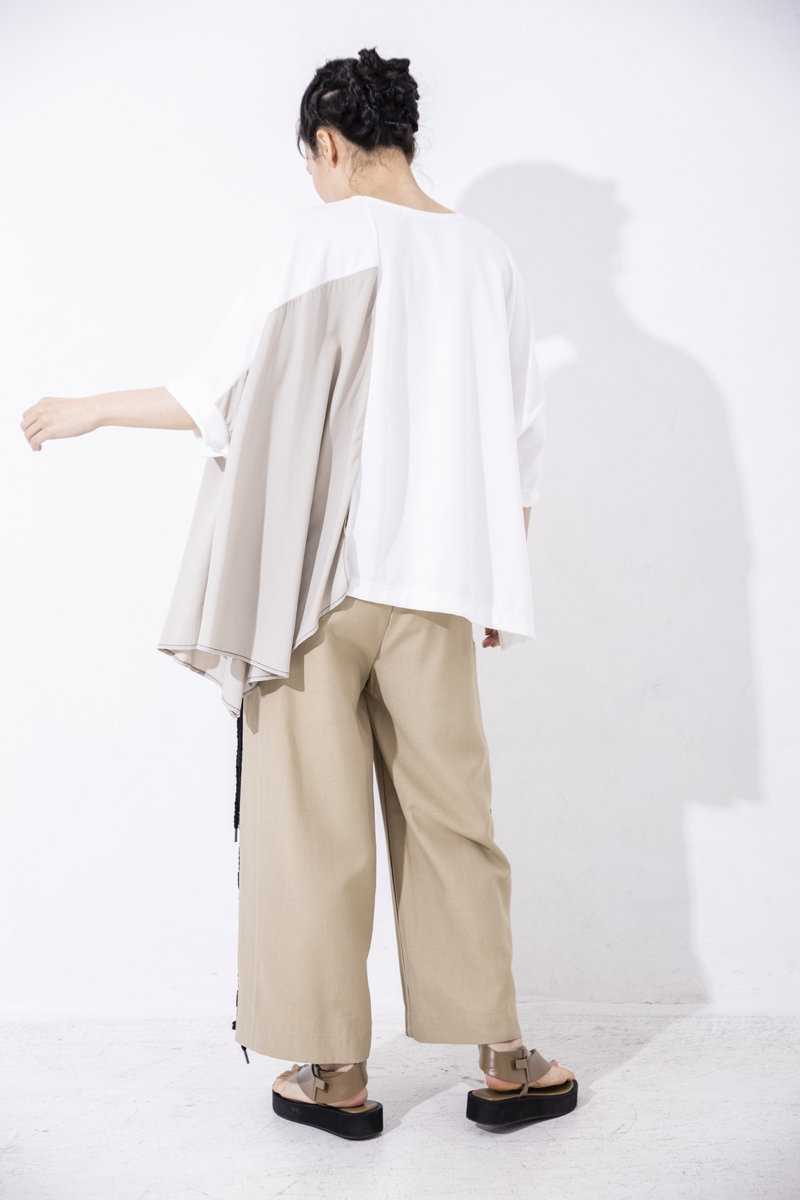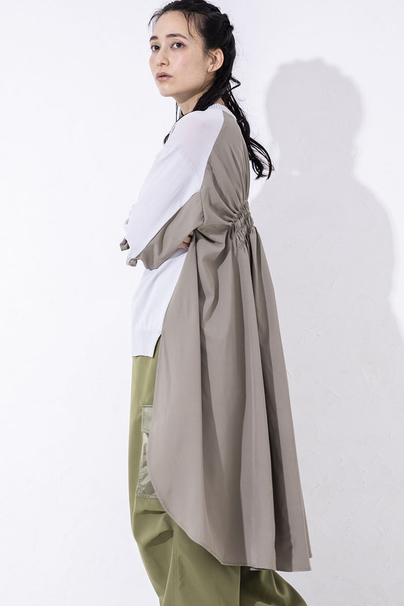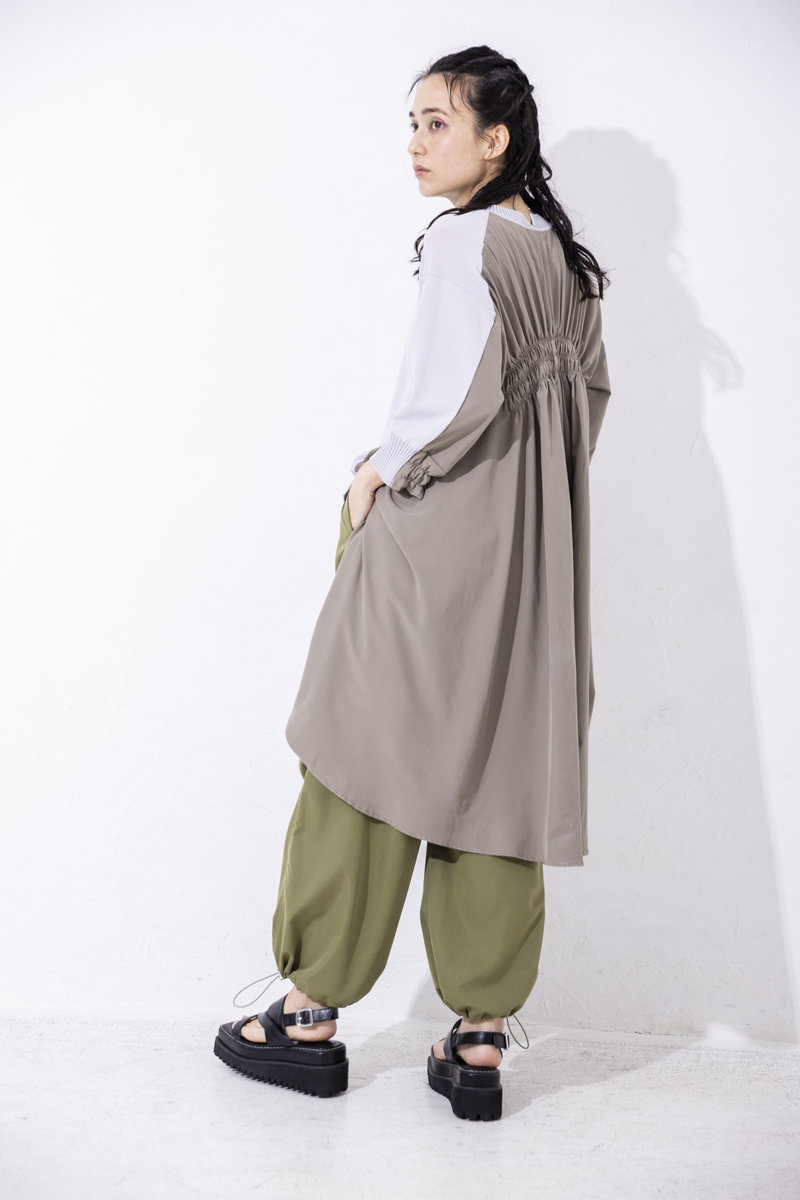背中にギャザーをたっぷり寄せて、