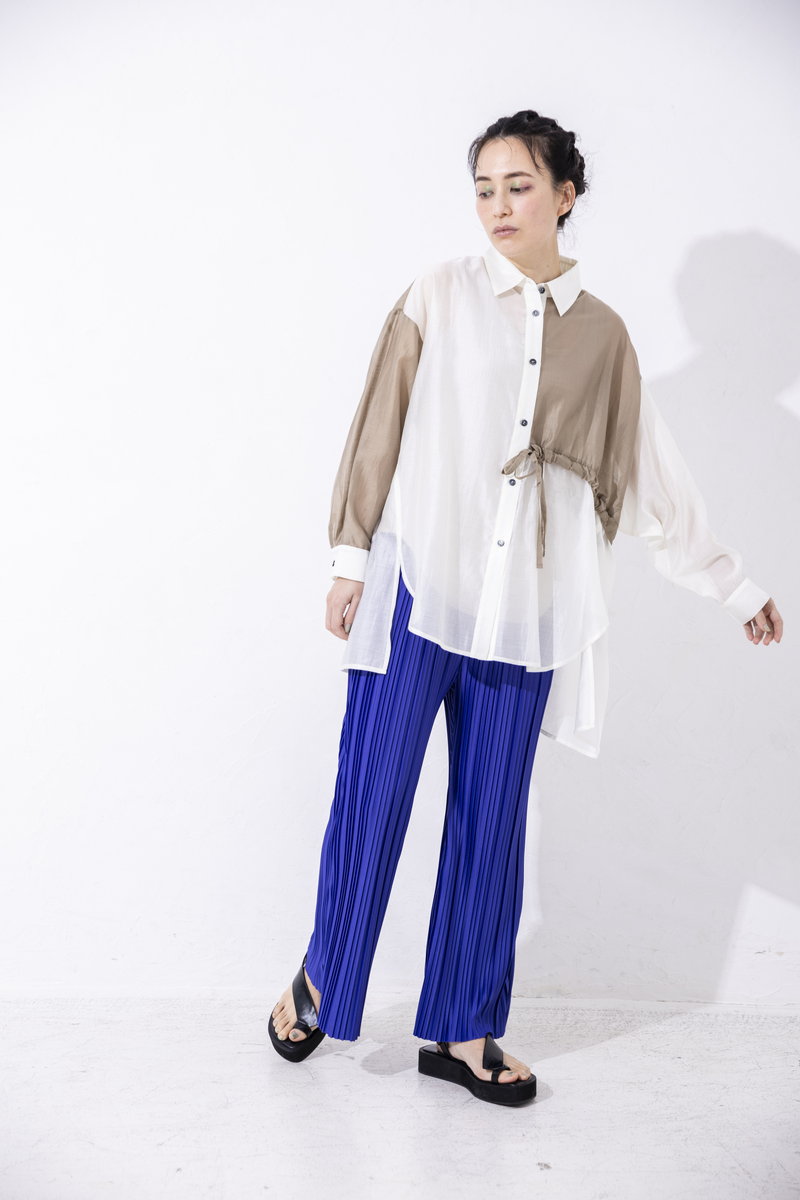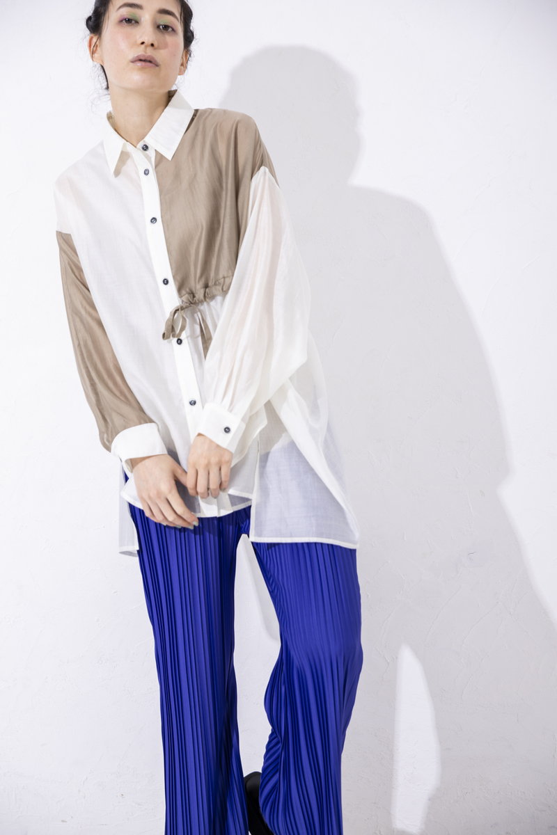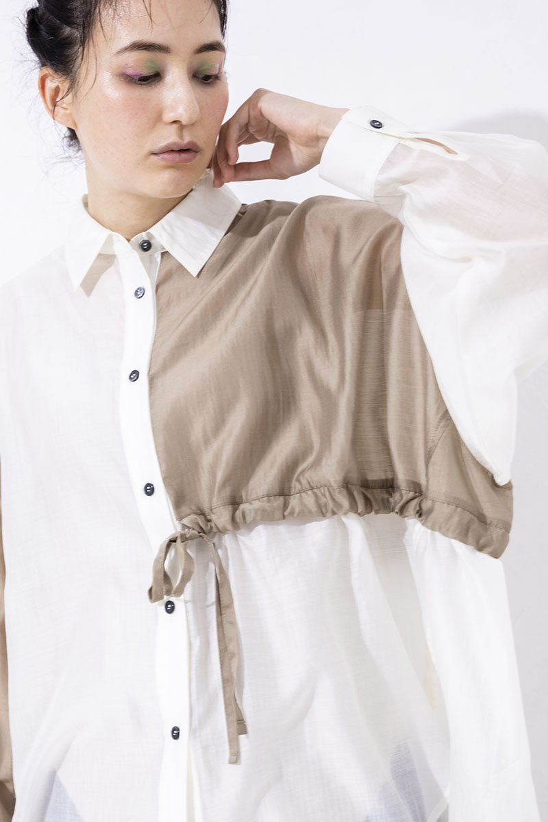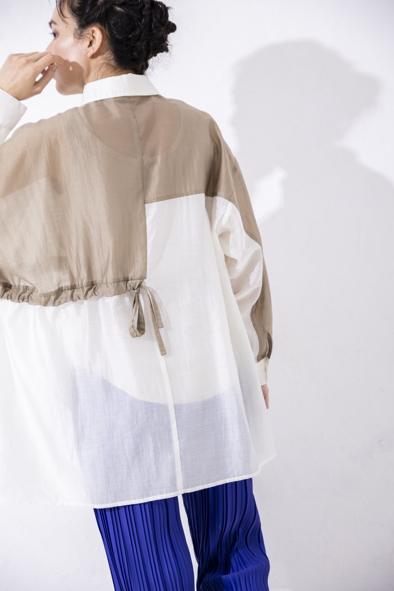 ほんのりマットな光沢も魅力のシアーシャツ。