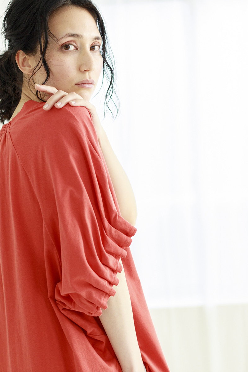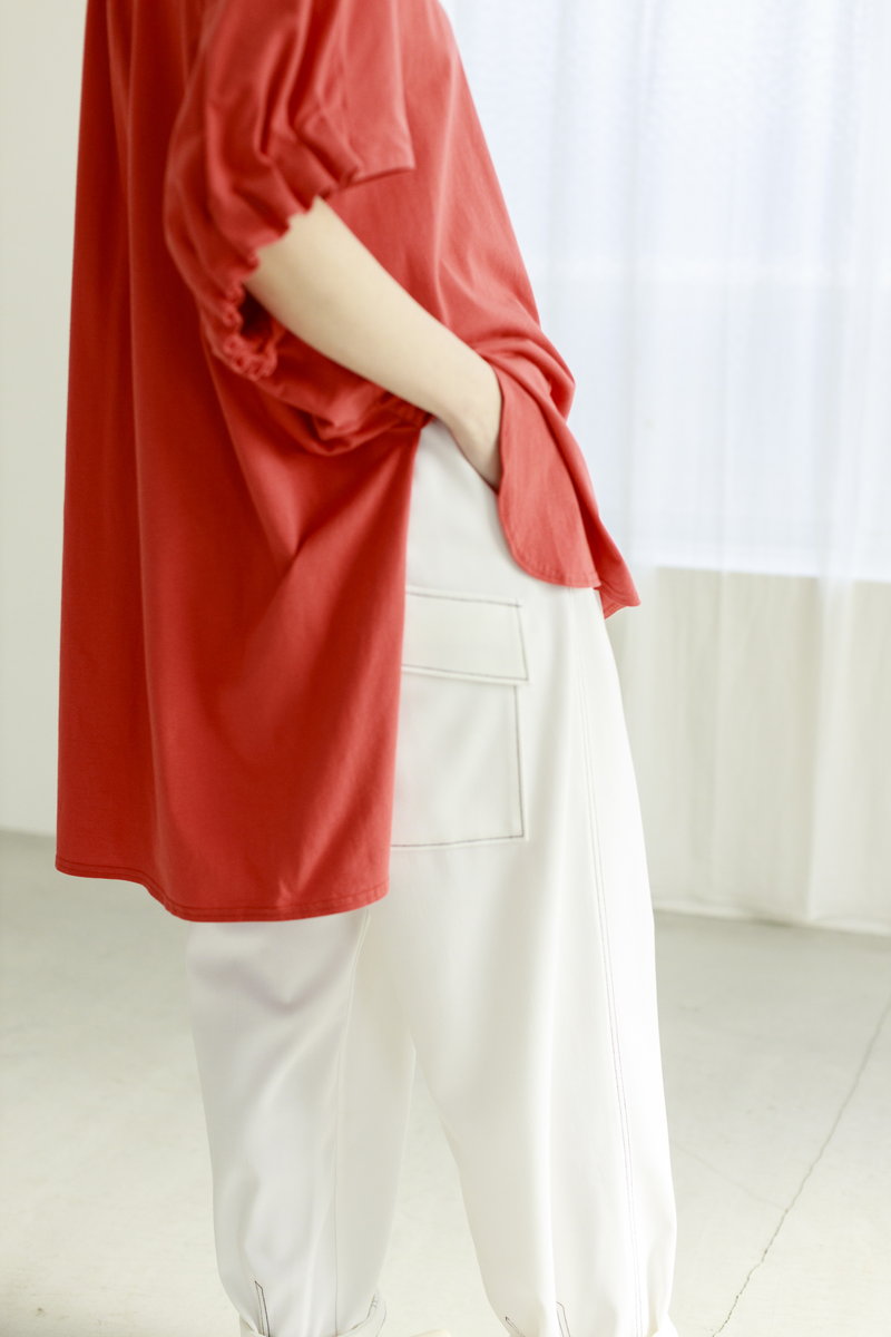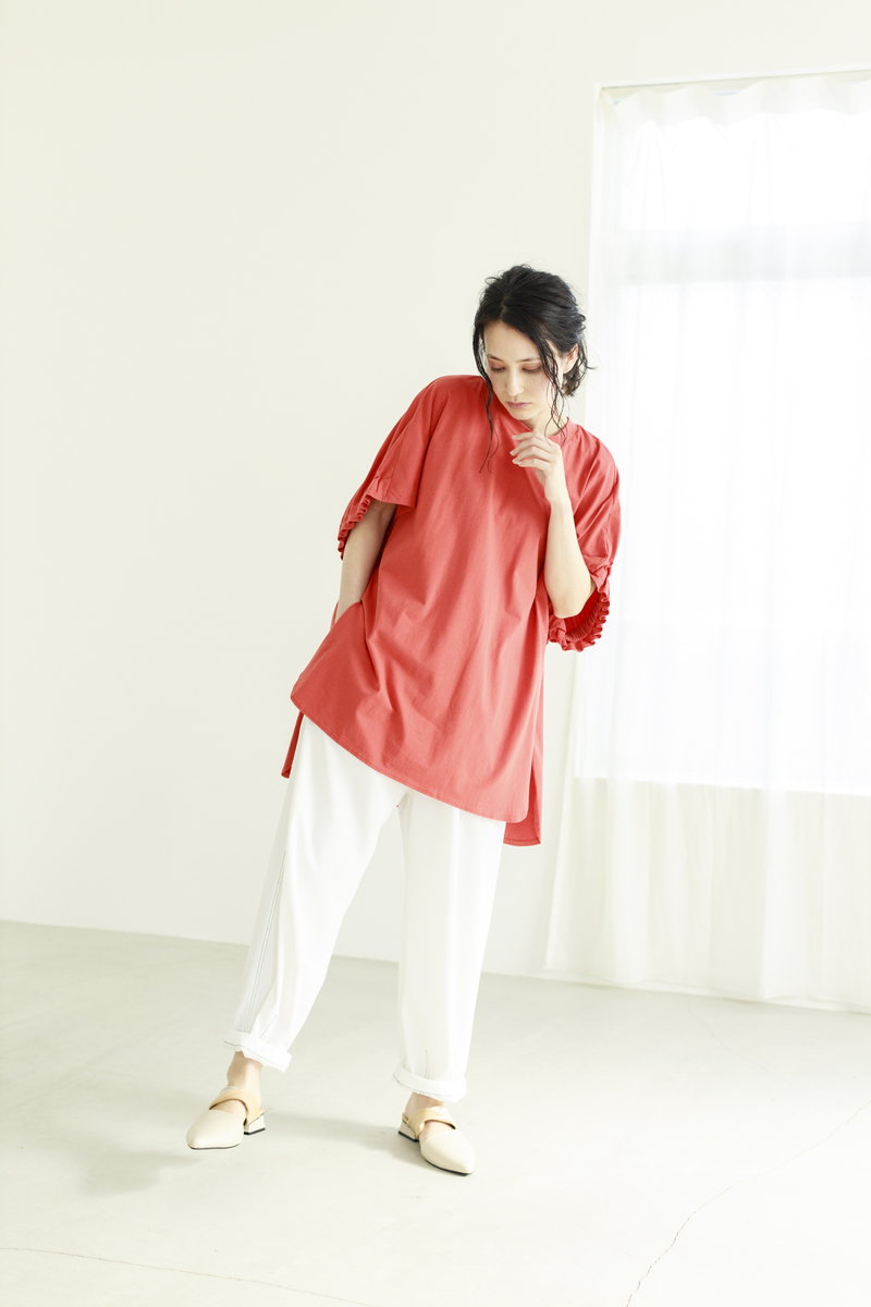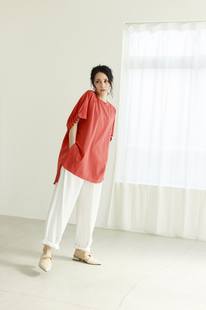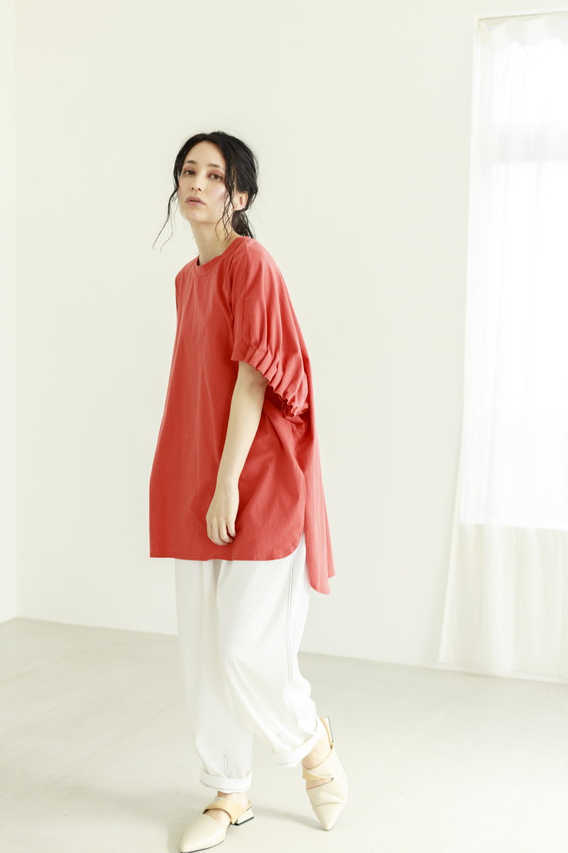 フェミニンなギャザースリーブ。