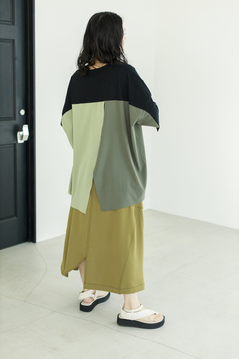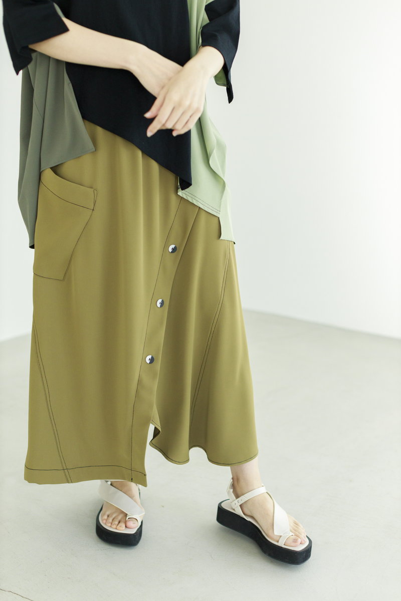 ツヤとスリットが魅力のボトムで、
