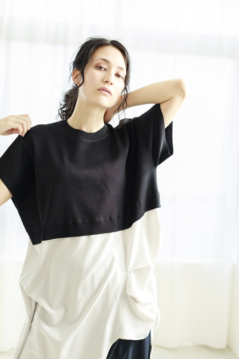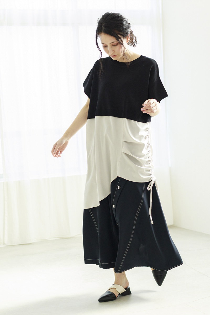 切替ニットを主役に。
