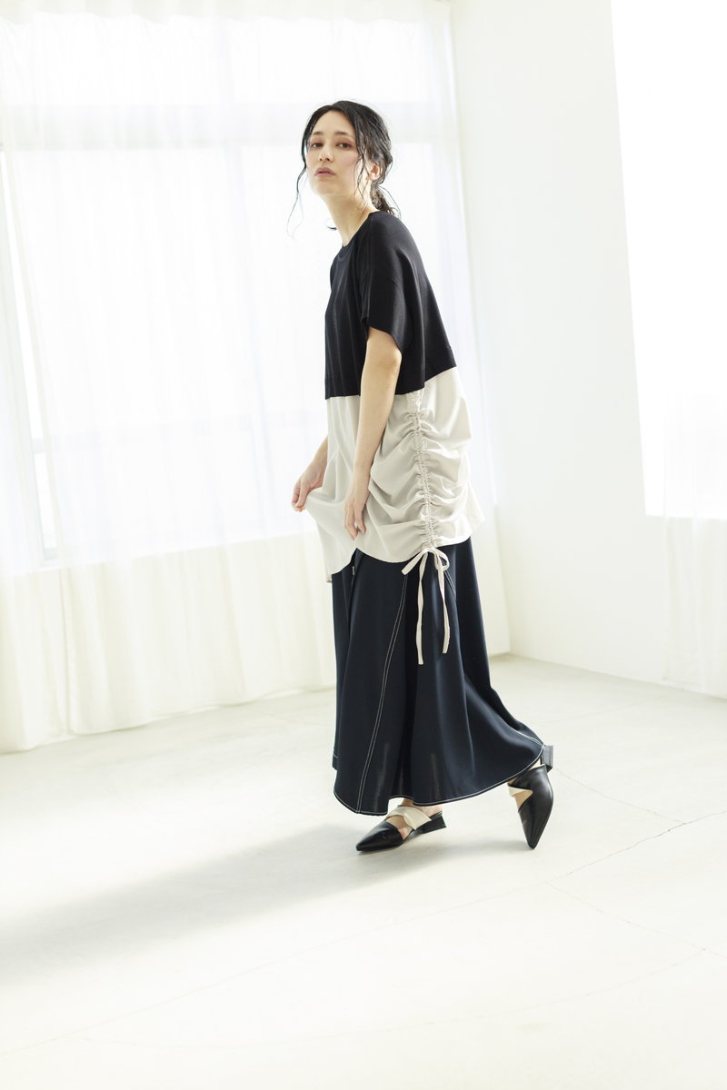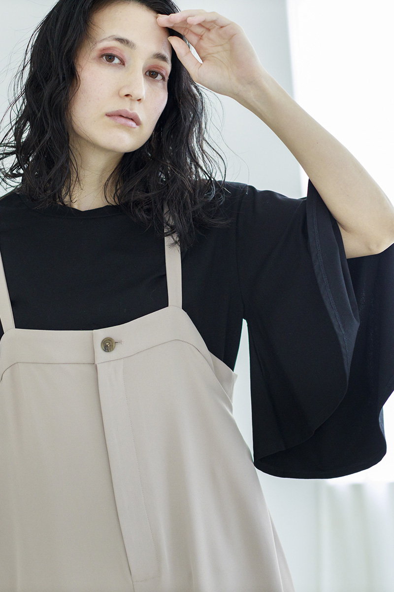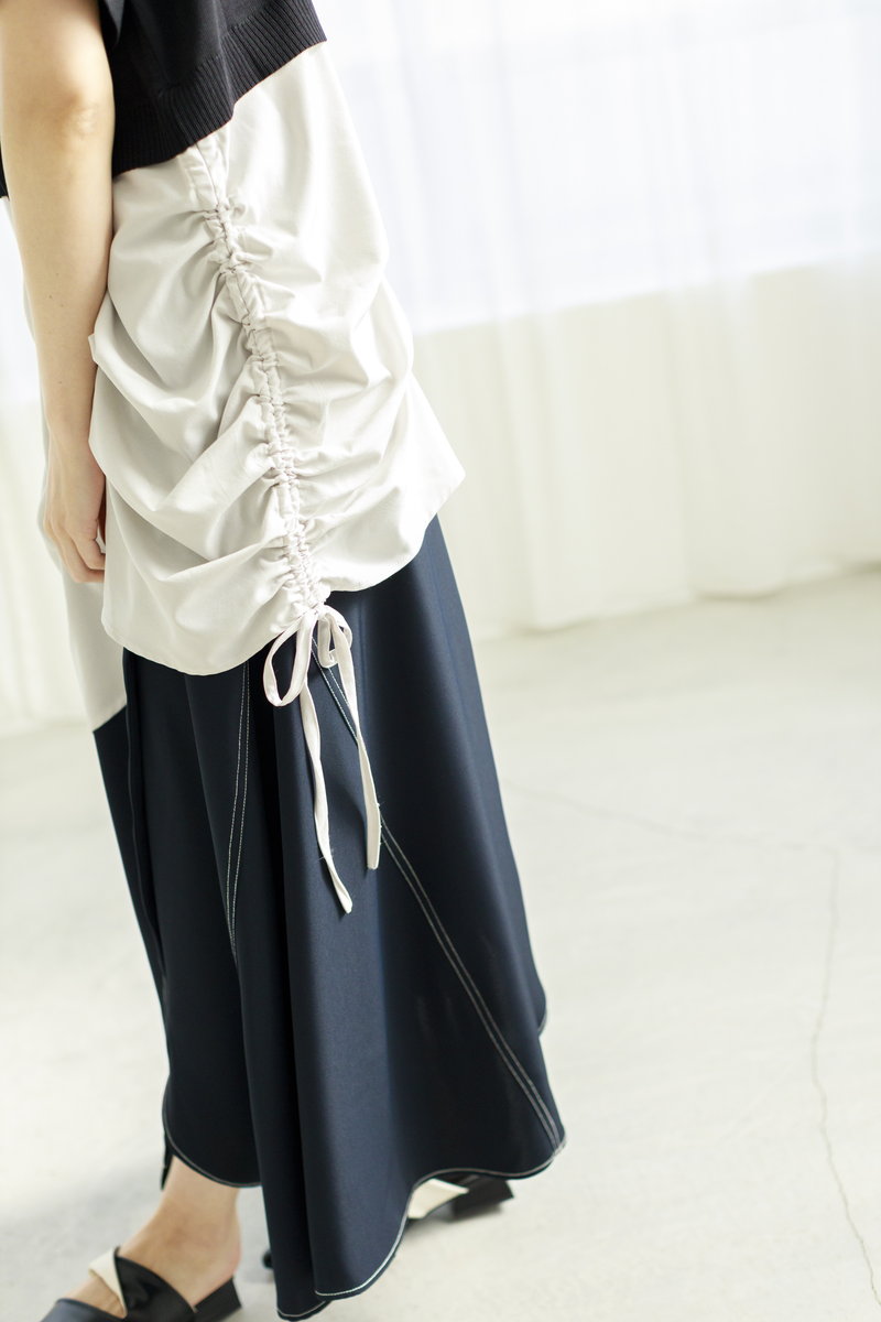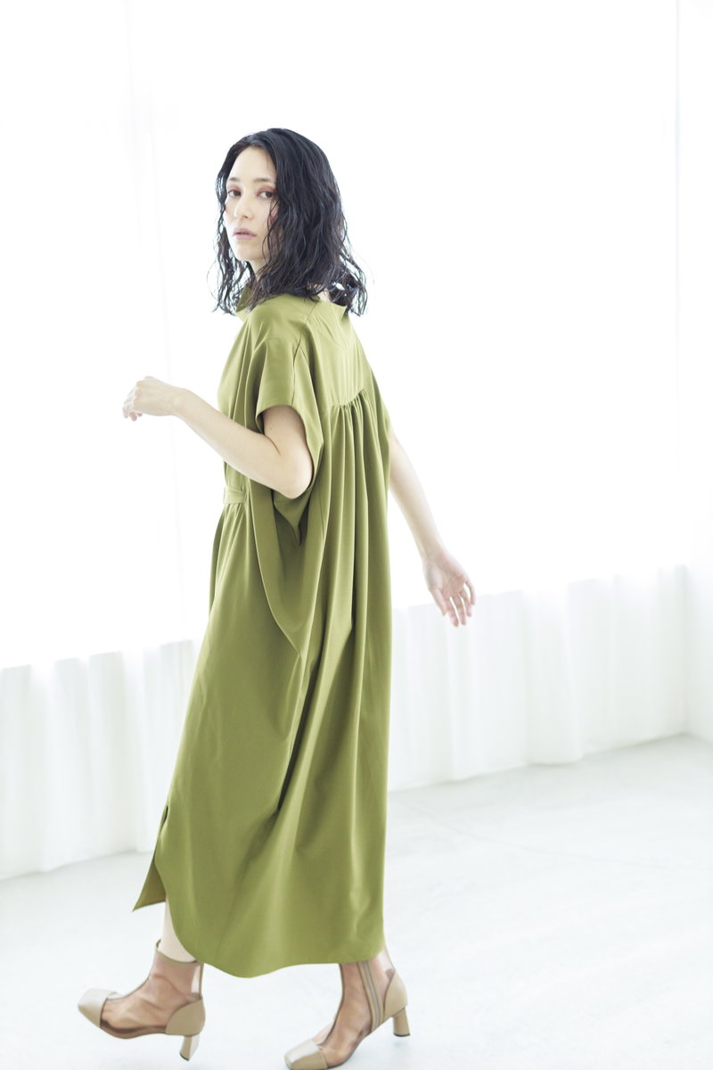 色味は抑えて、立体的なタックやギャザーを印象付けて。