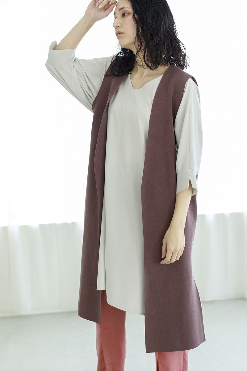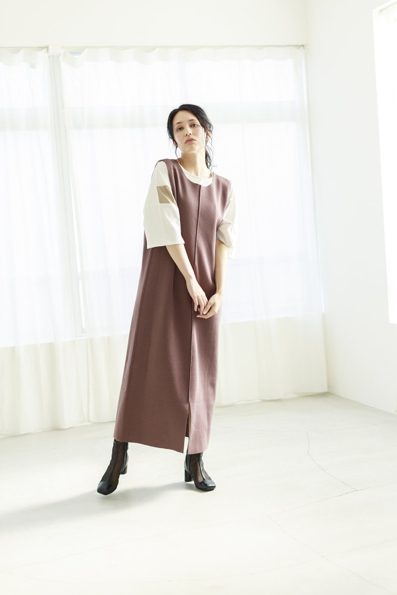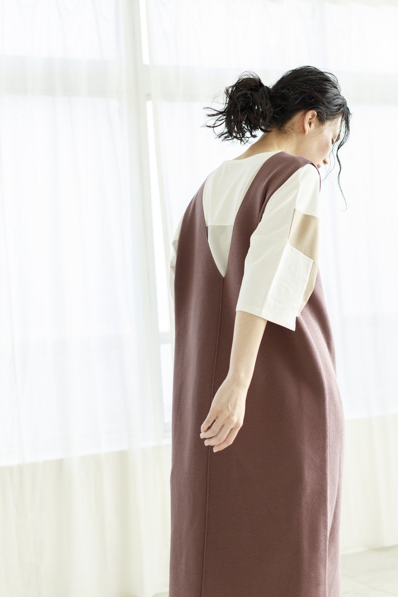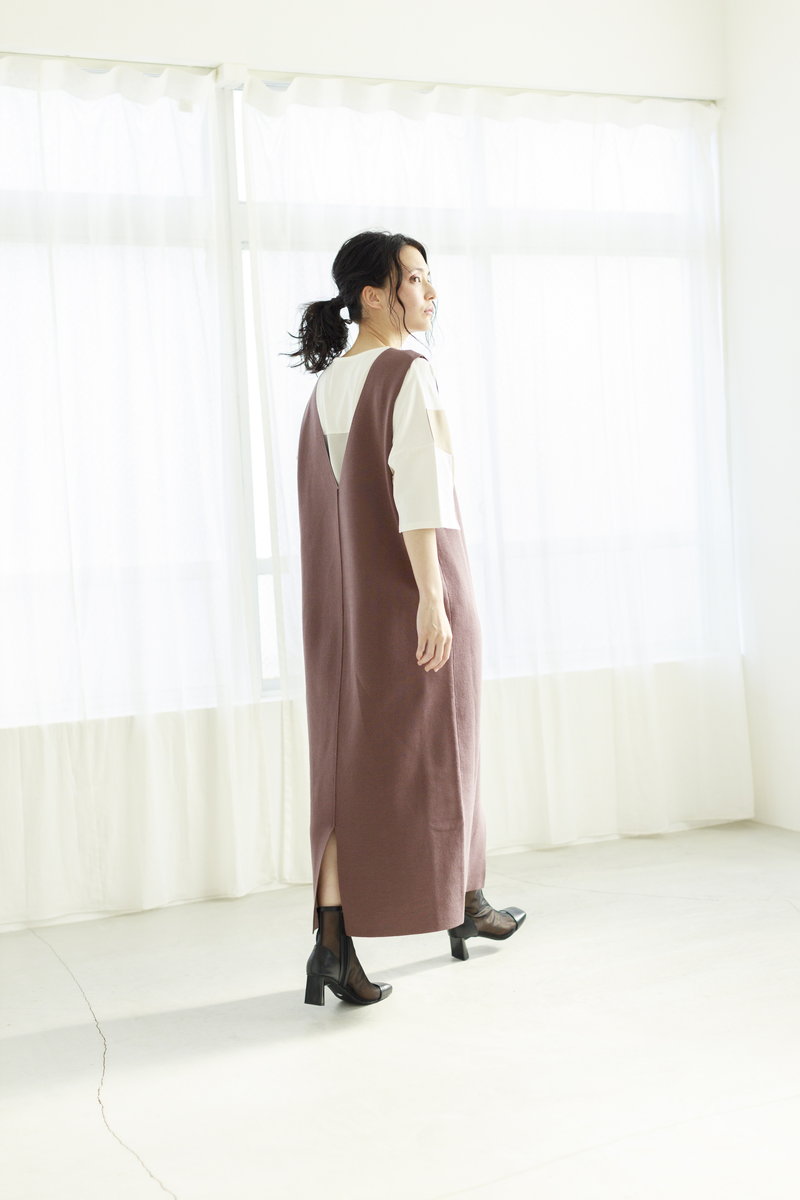 フラットなシルエットのニットワンピは、