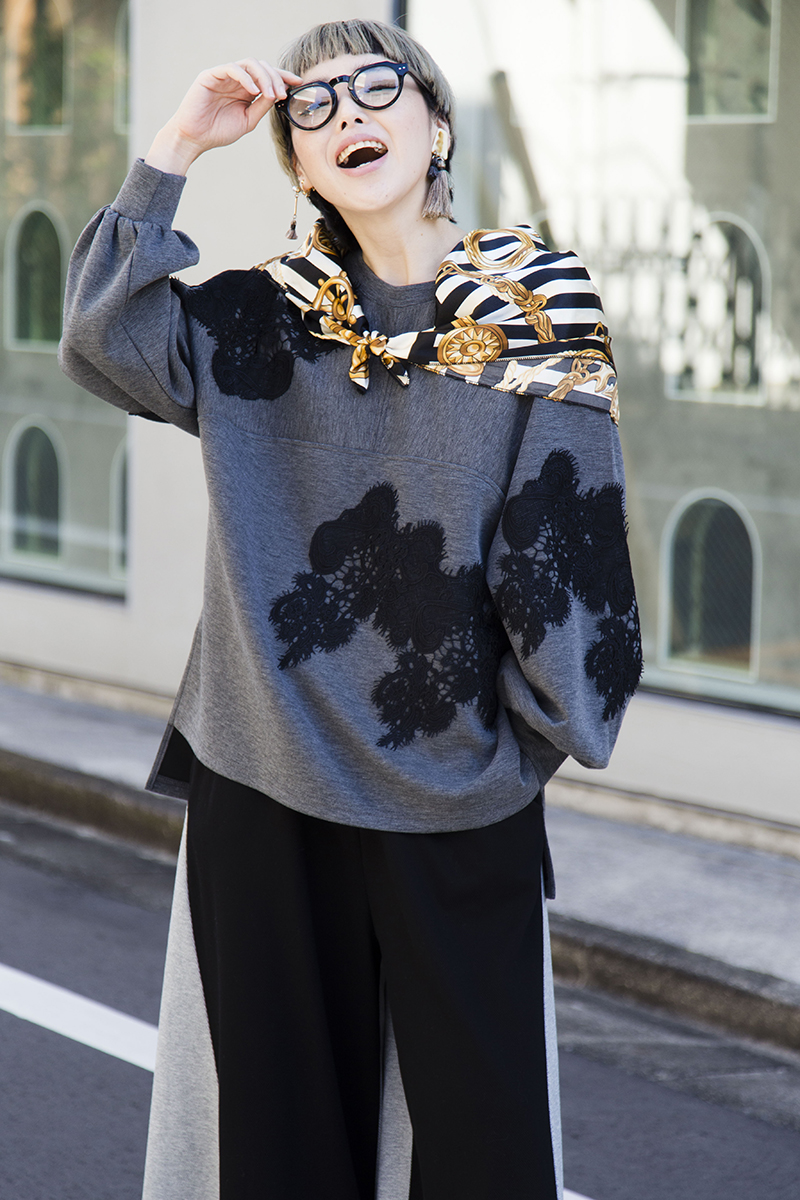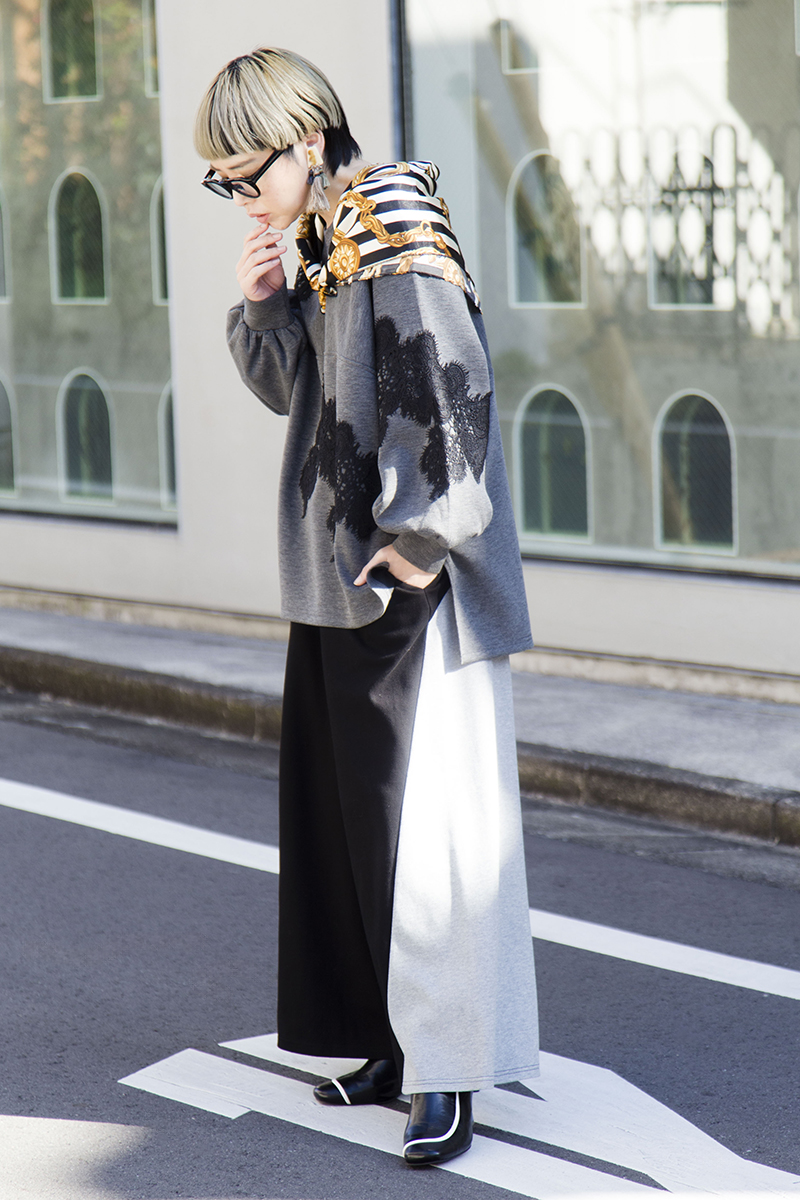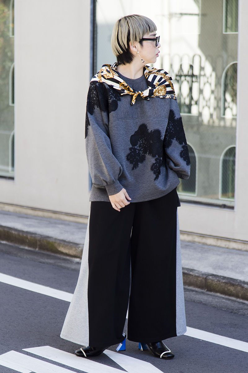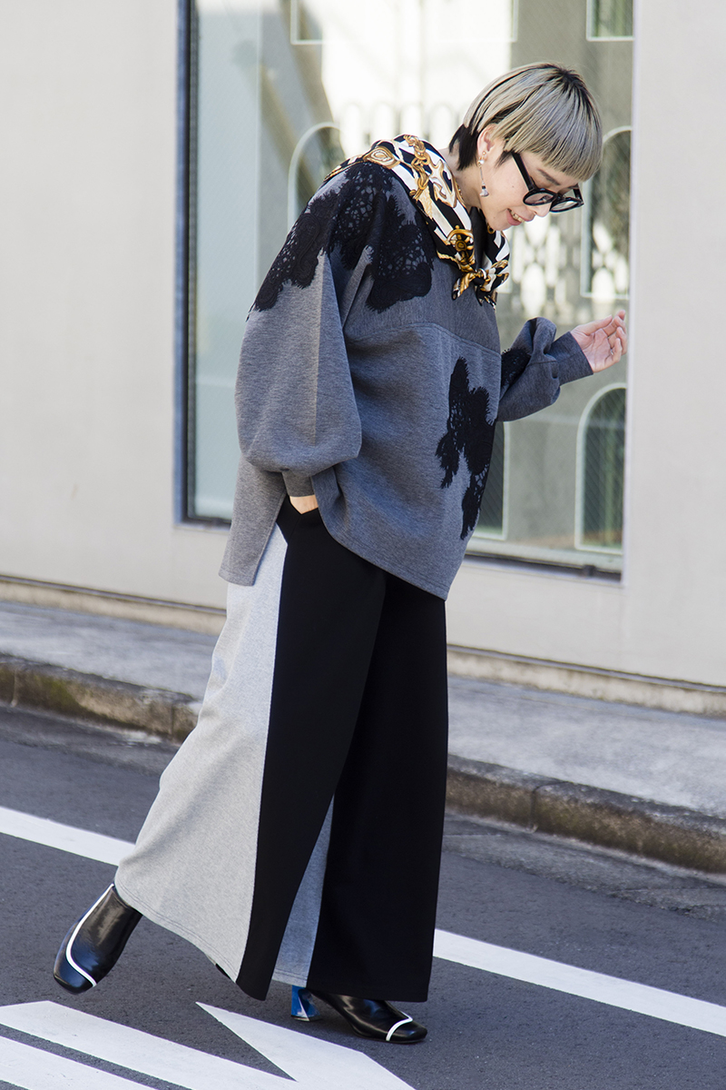 ラフに見えがちなスウェット風のコーデは、