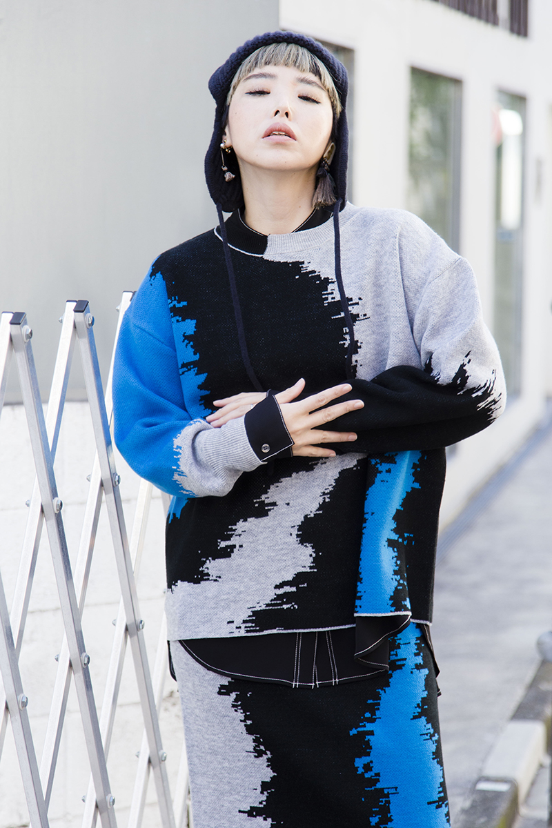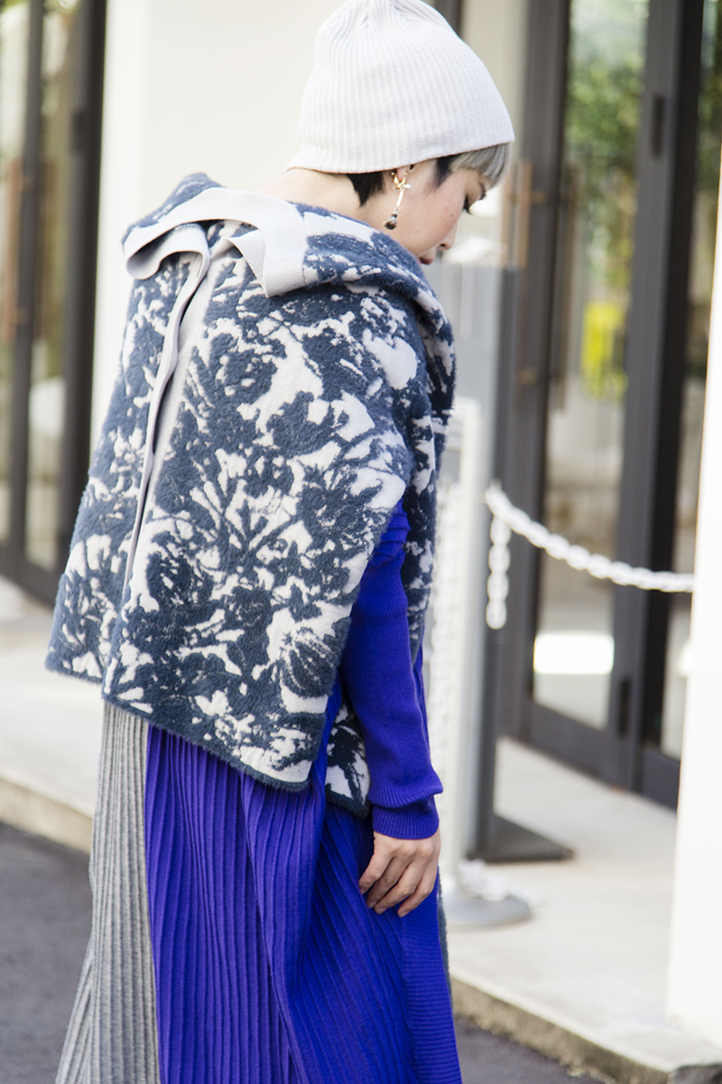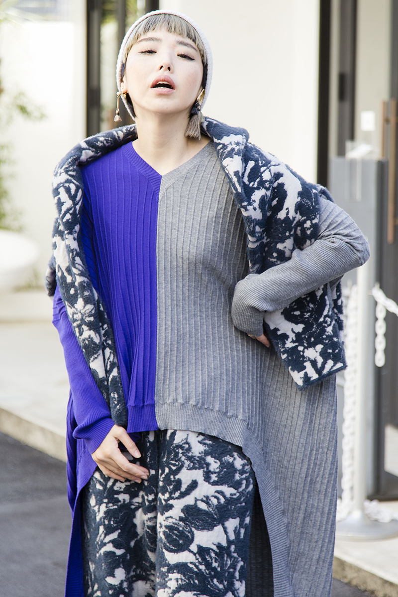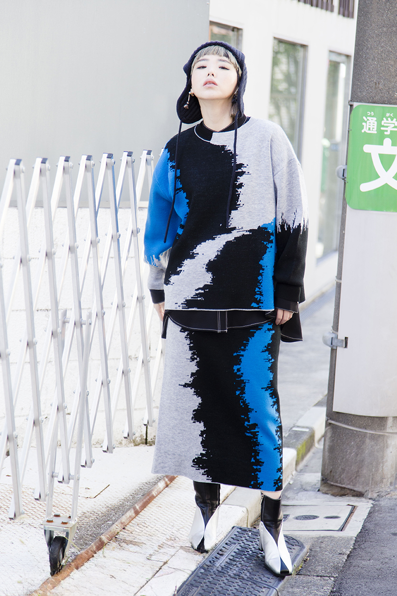 女子会には華やかなニットアップを選択。