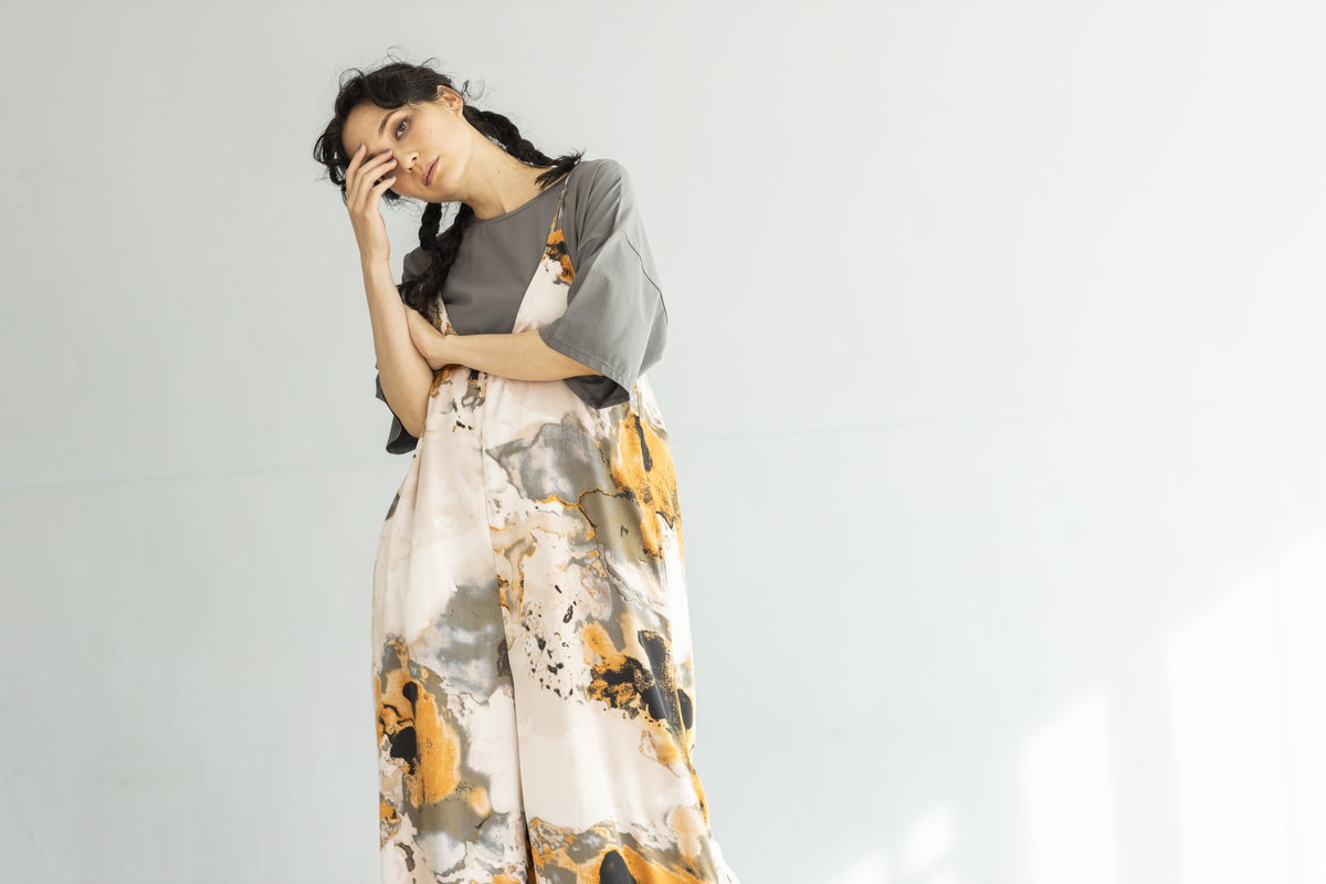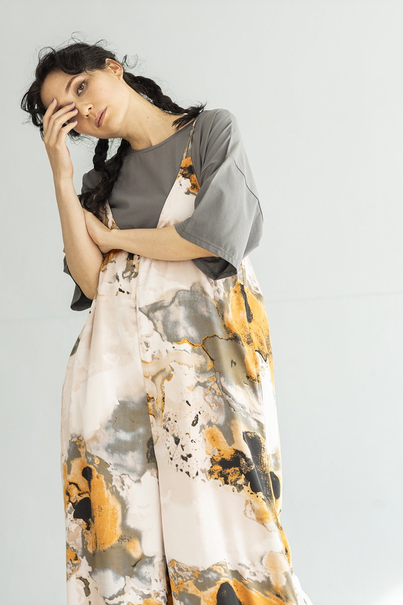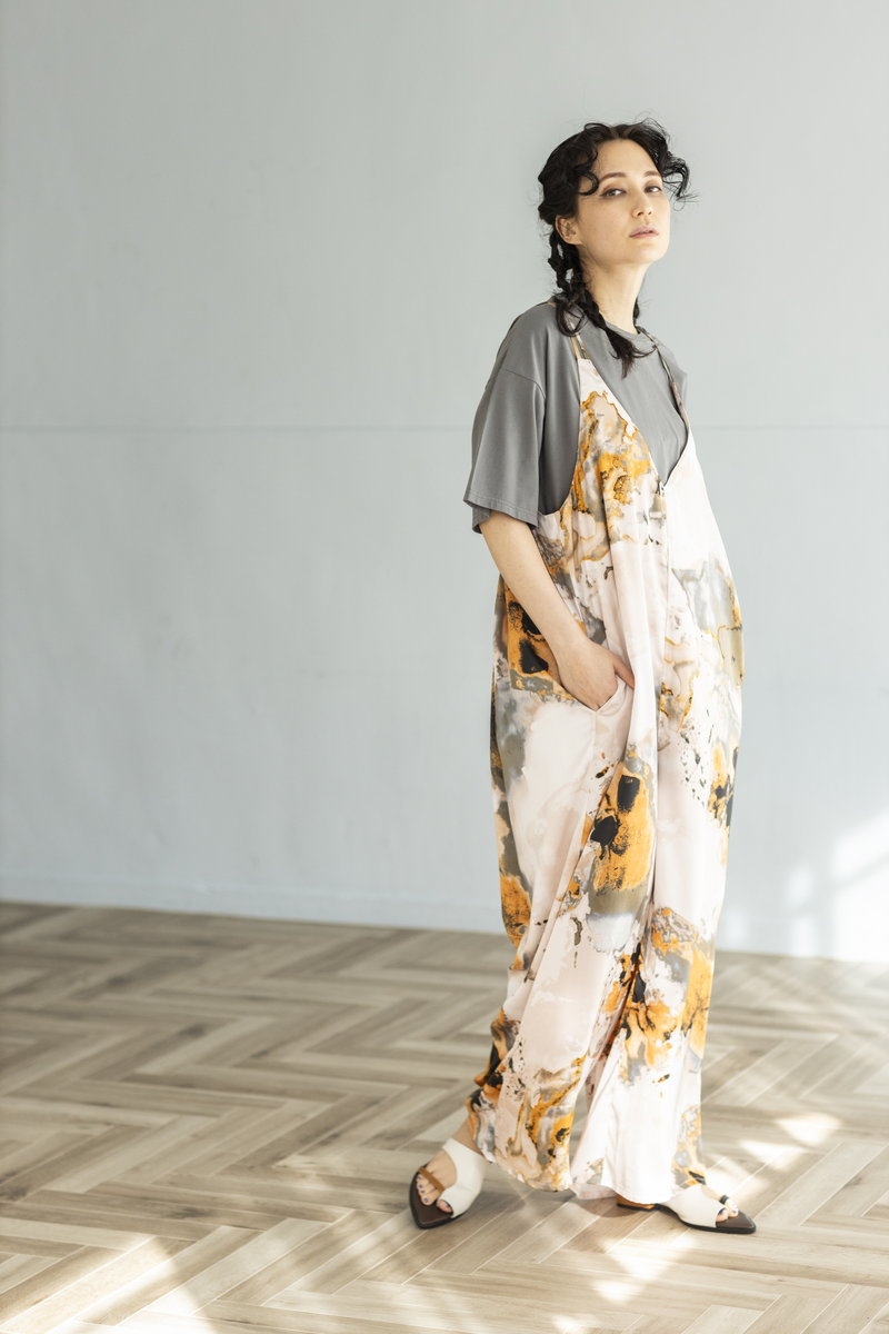 淡い水彩画の様なプリントパターンを、