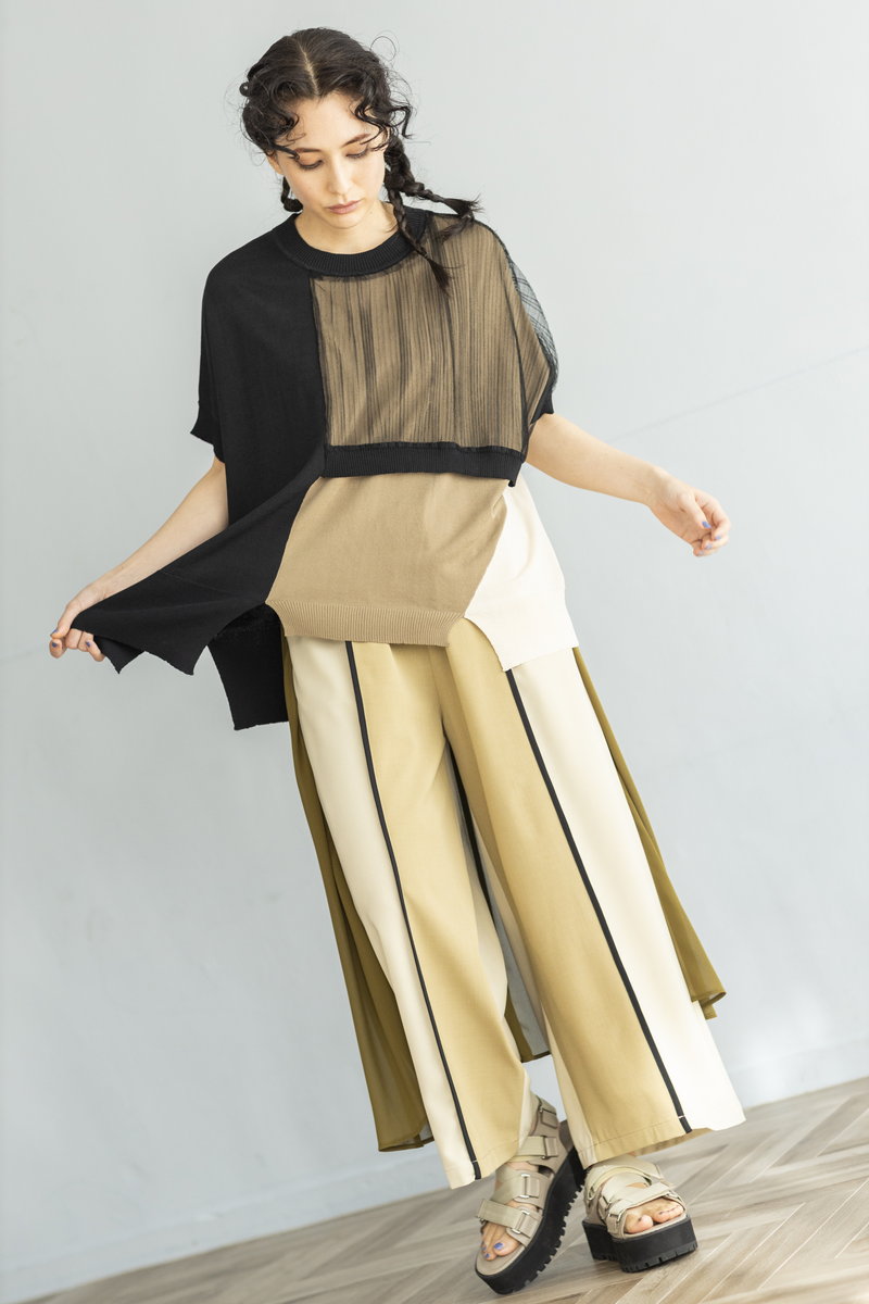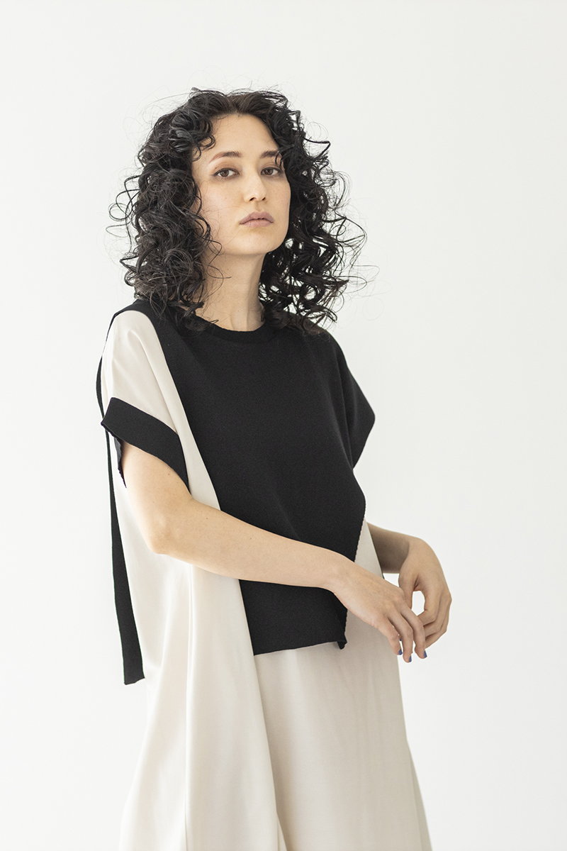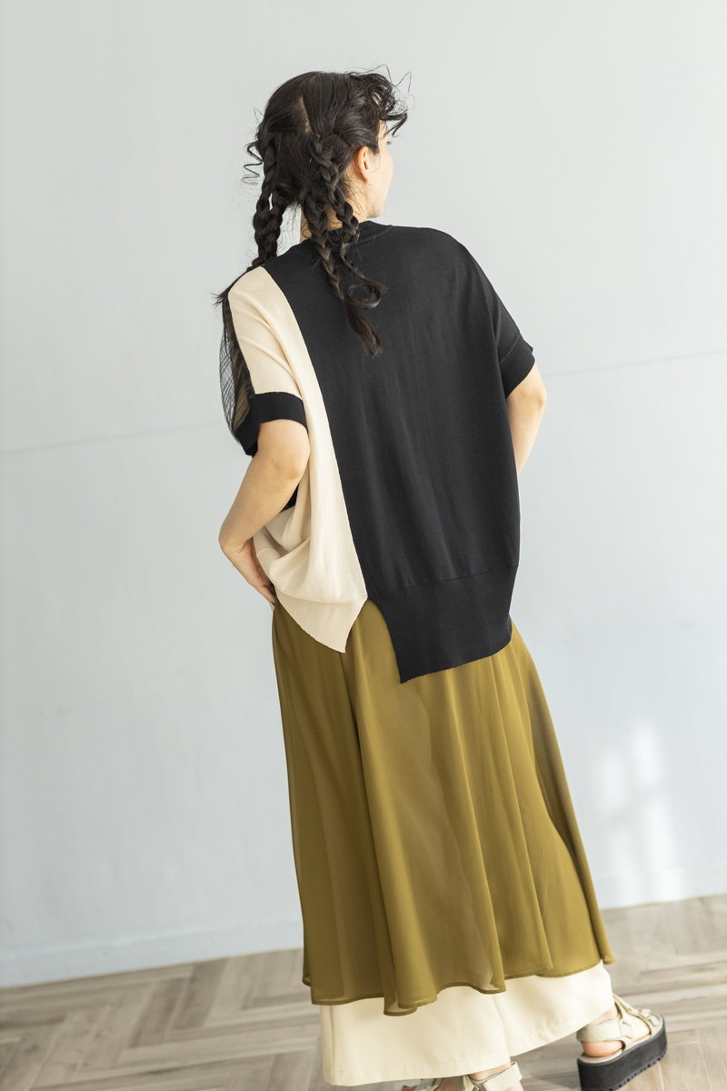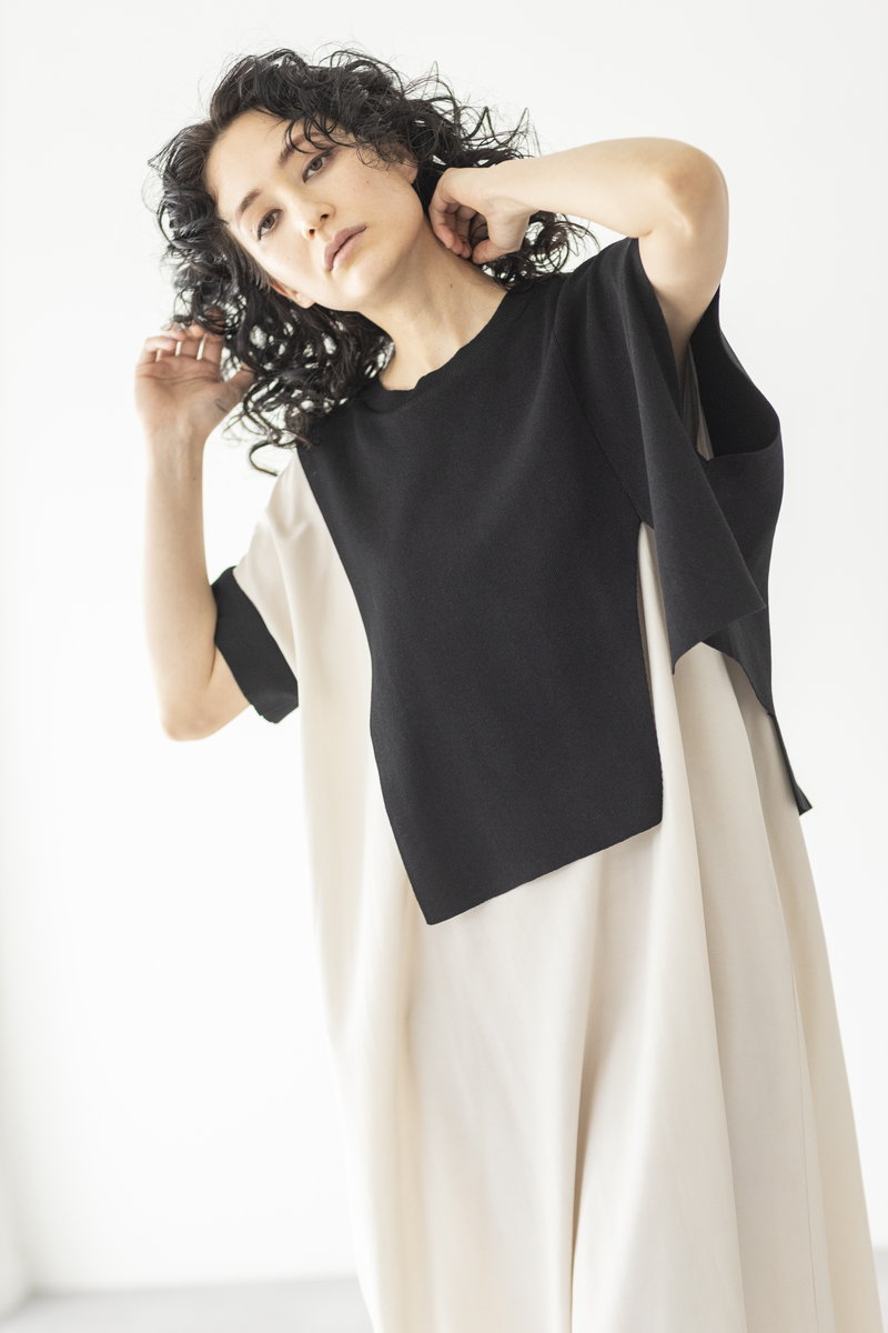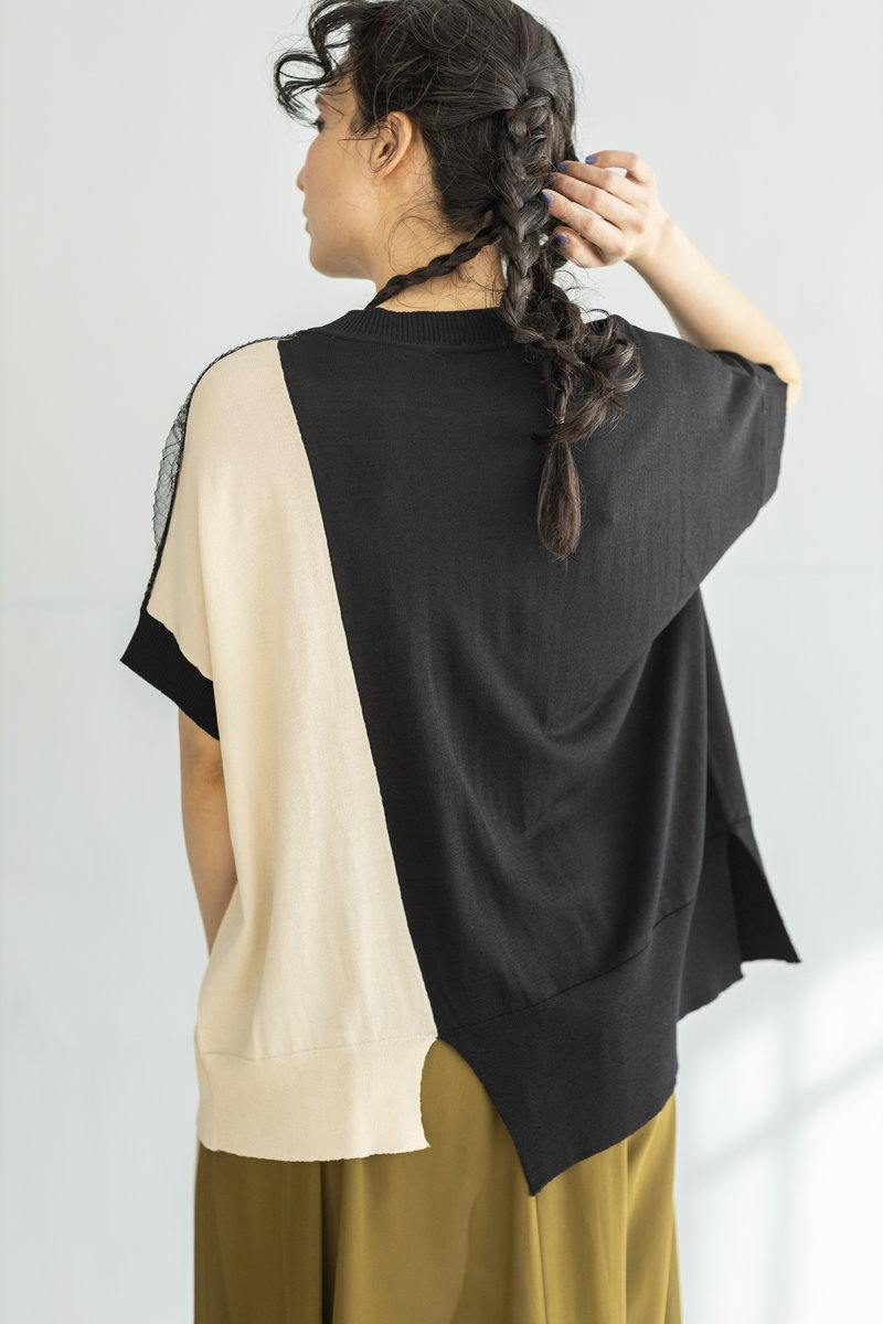 BLACKニットをアシンメトリーにトリミング。