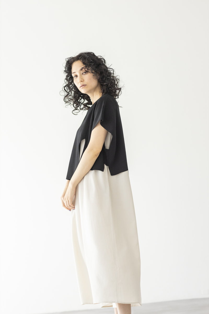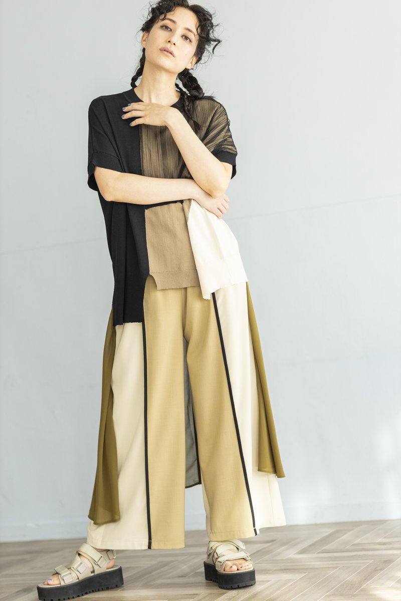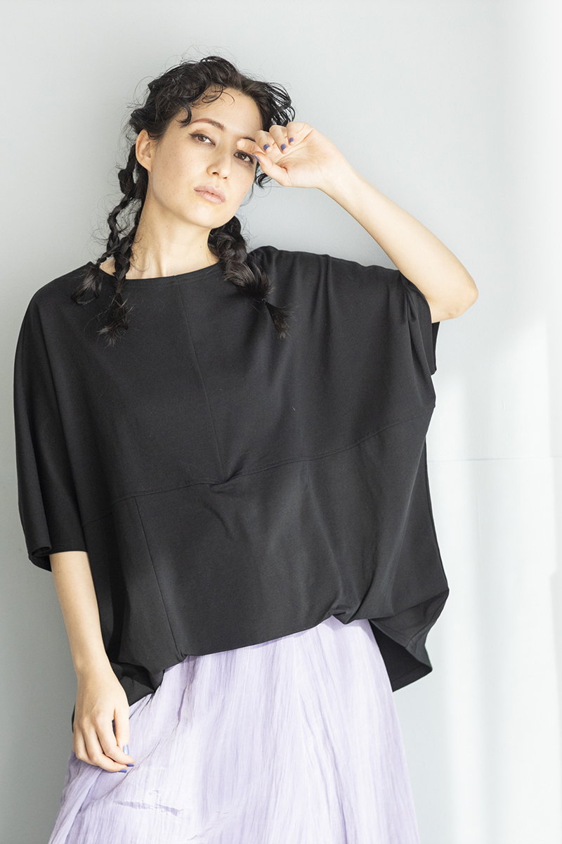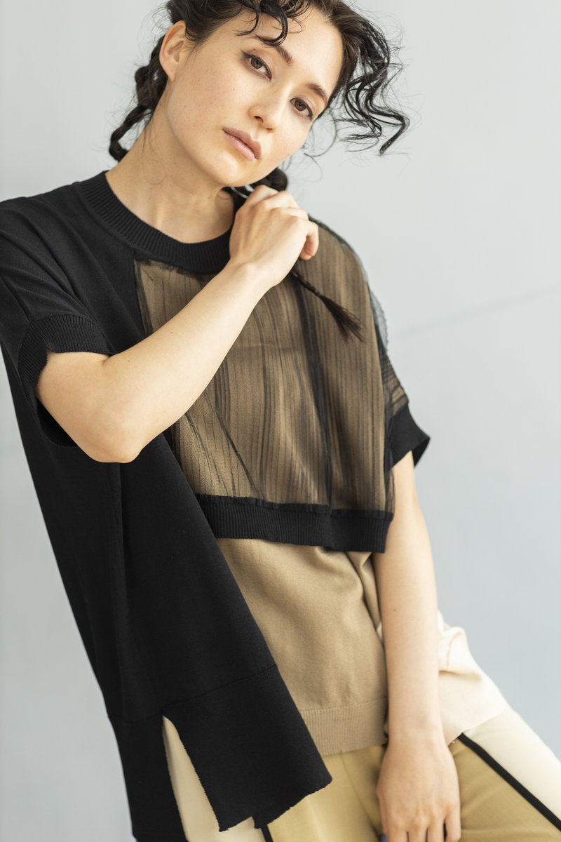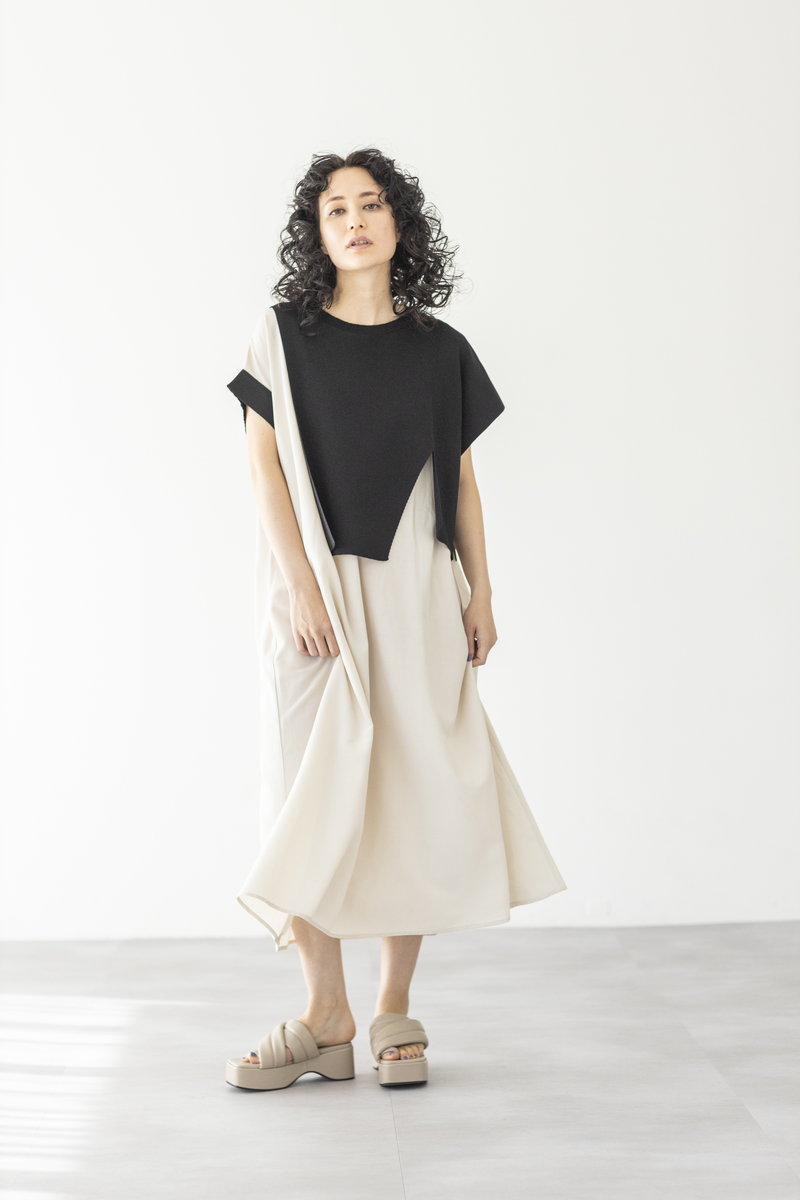 BLACKニットをアシンメトリーにトリミング。