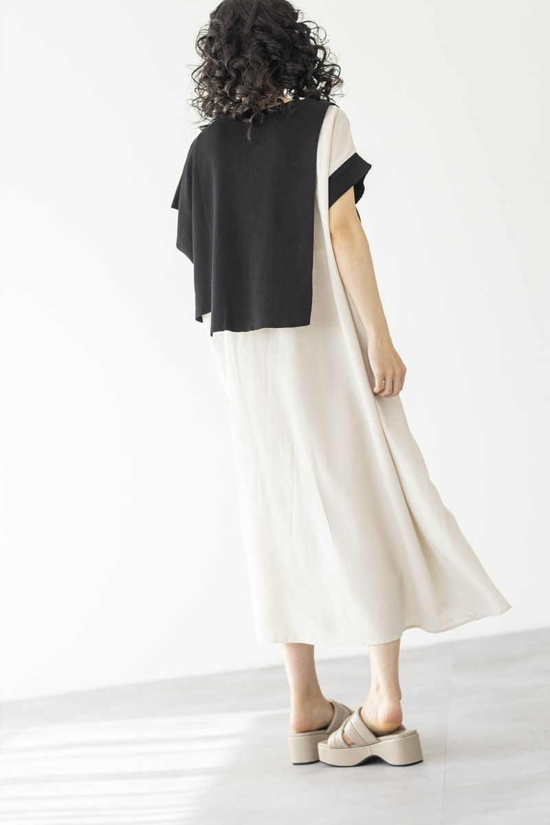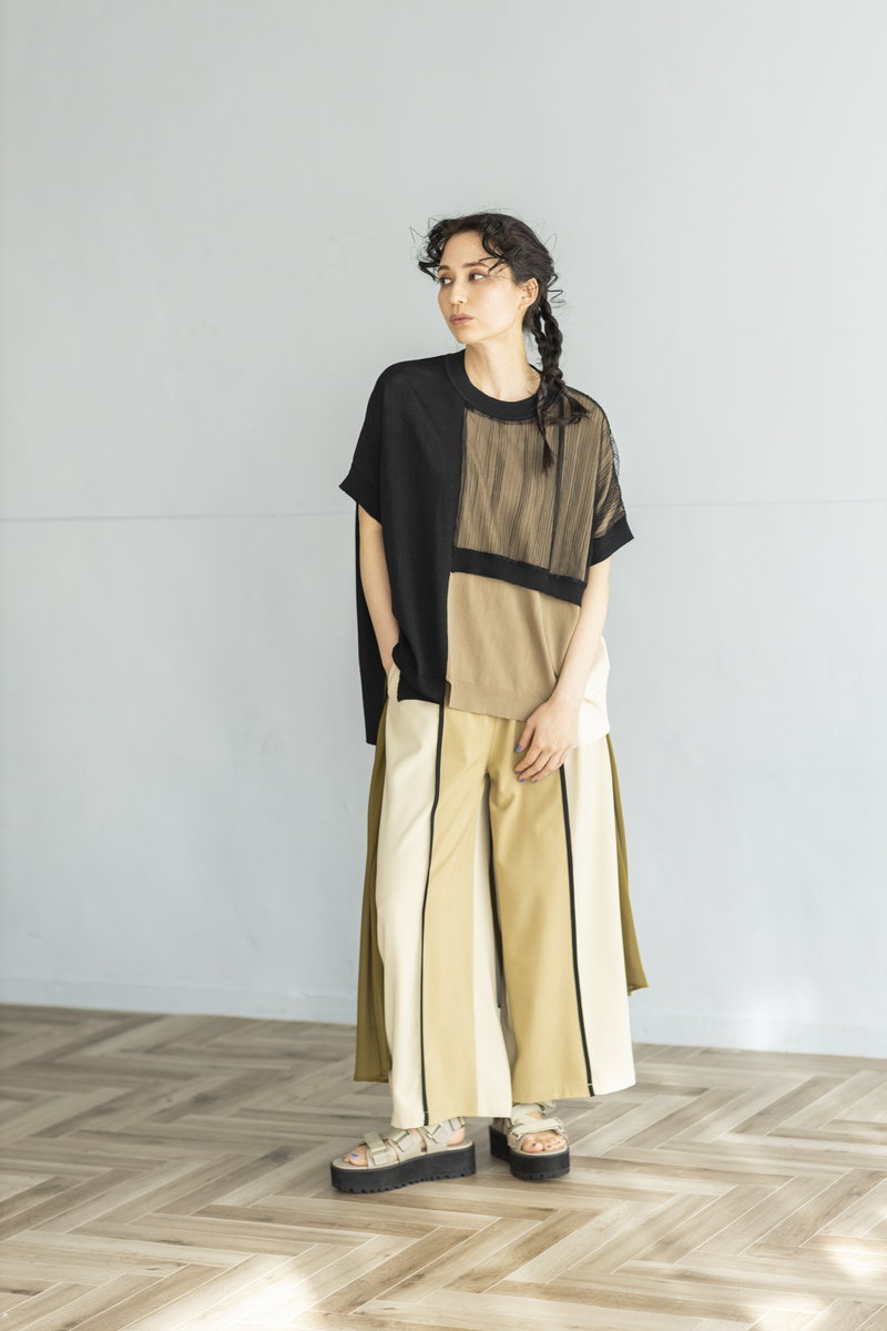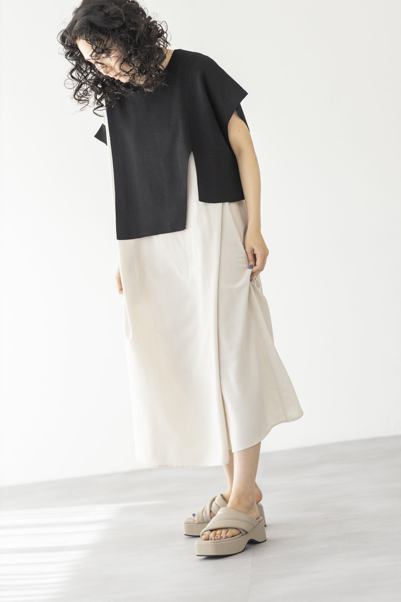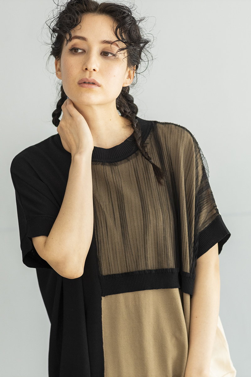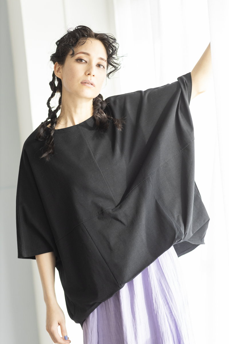 BLACKニットをアシンメトリーにトリミング。