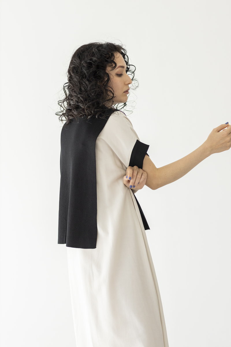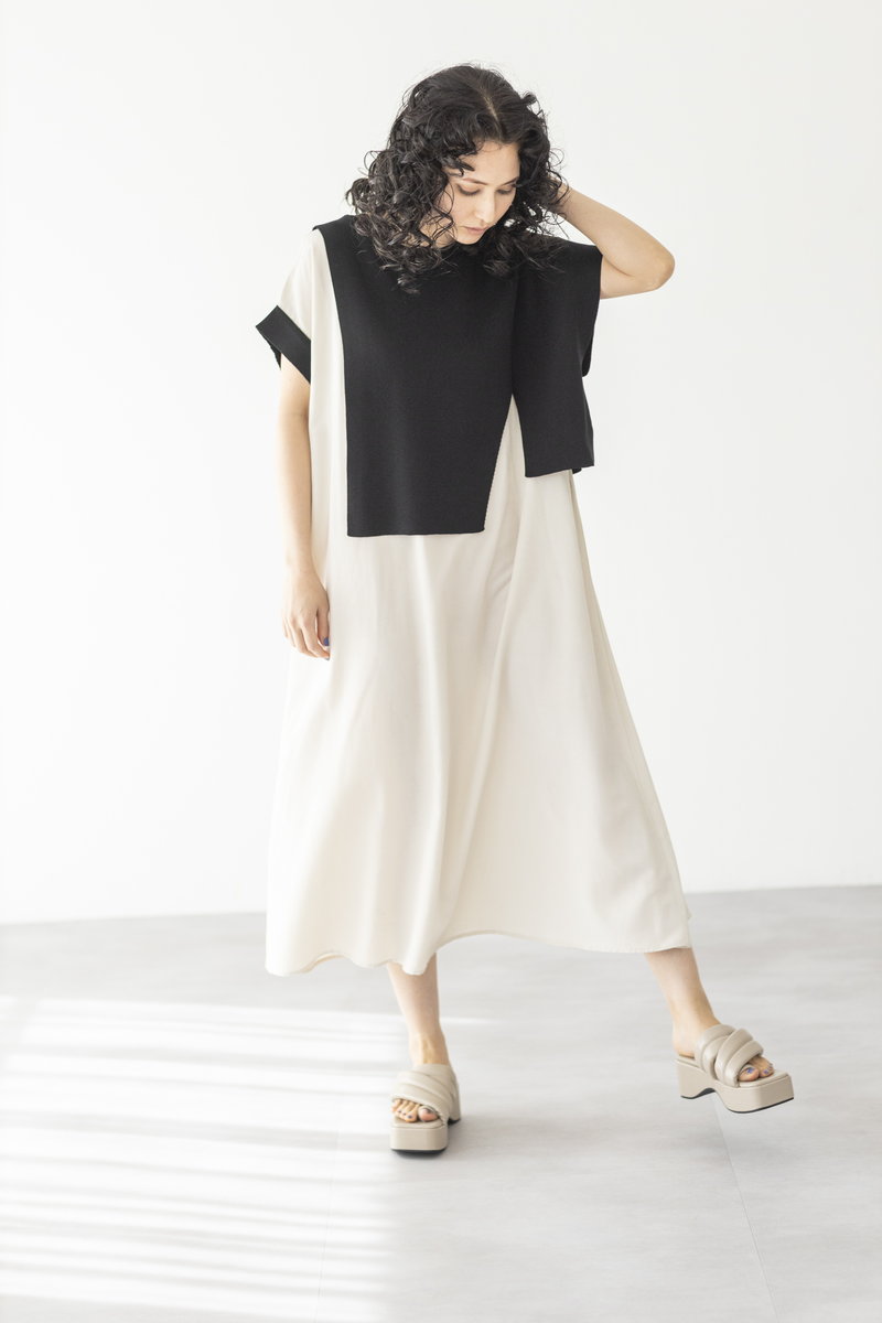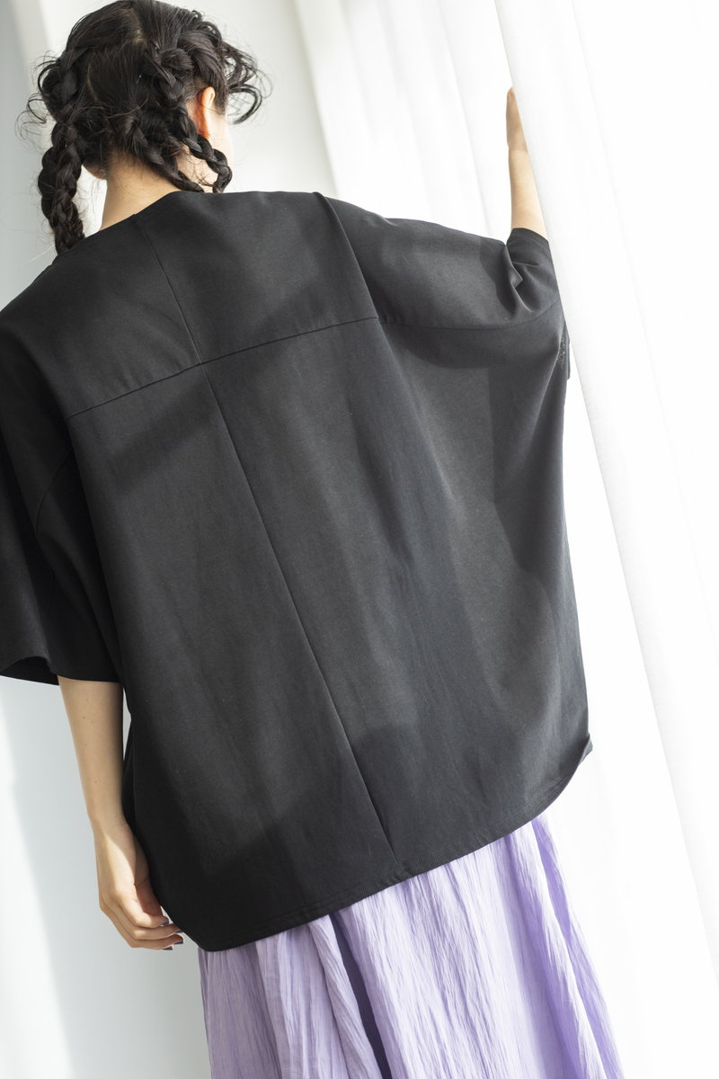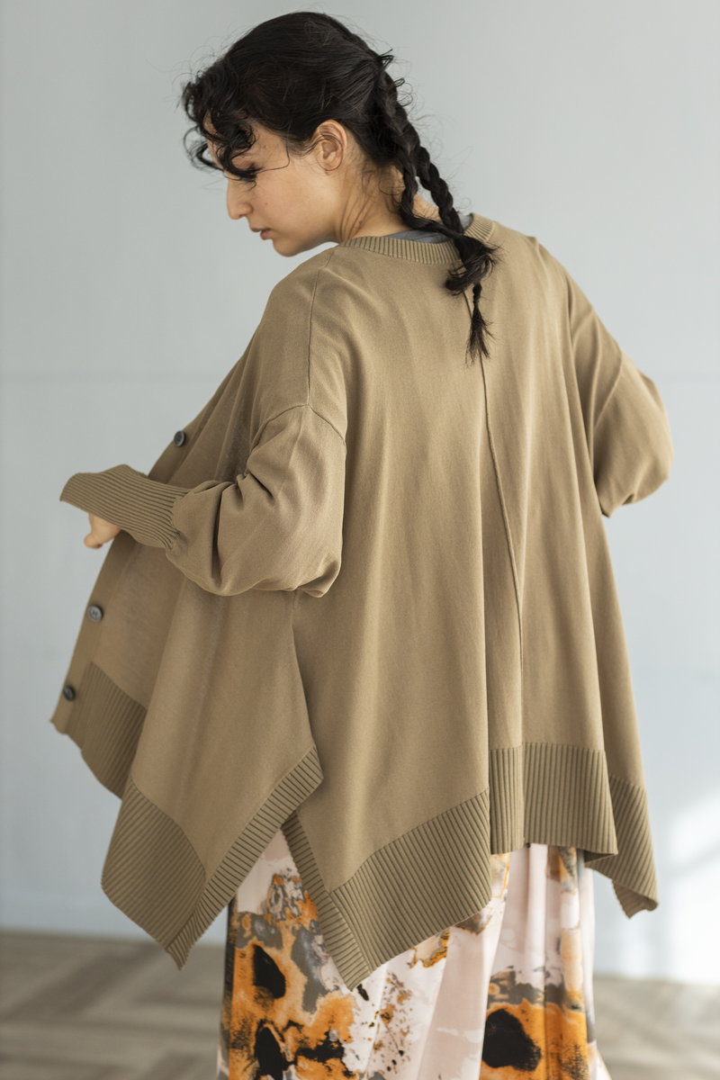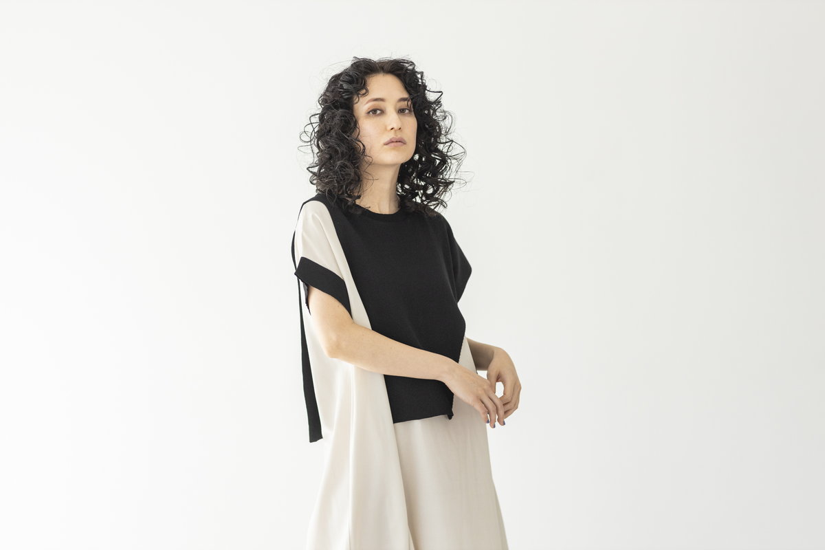 BLACKニットをアシンメトリーにトリミング。