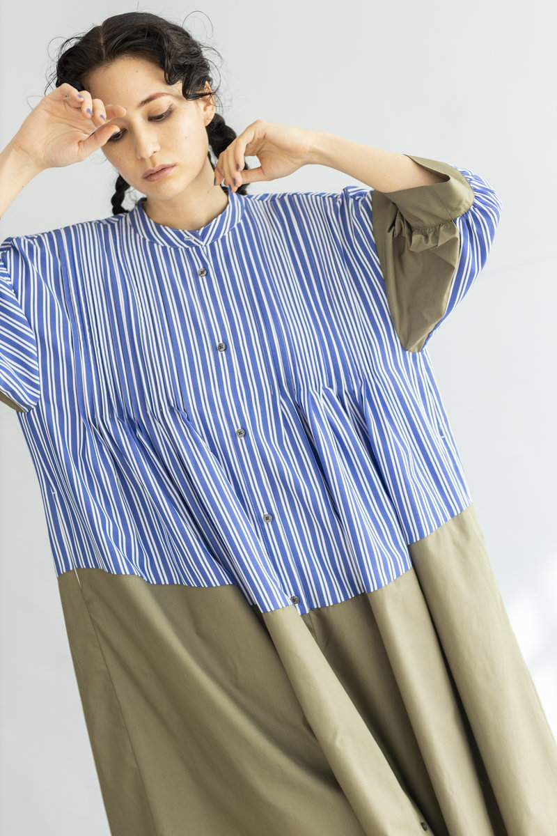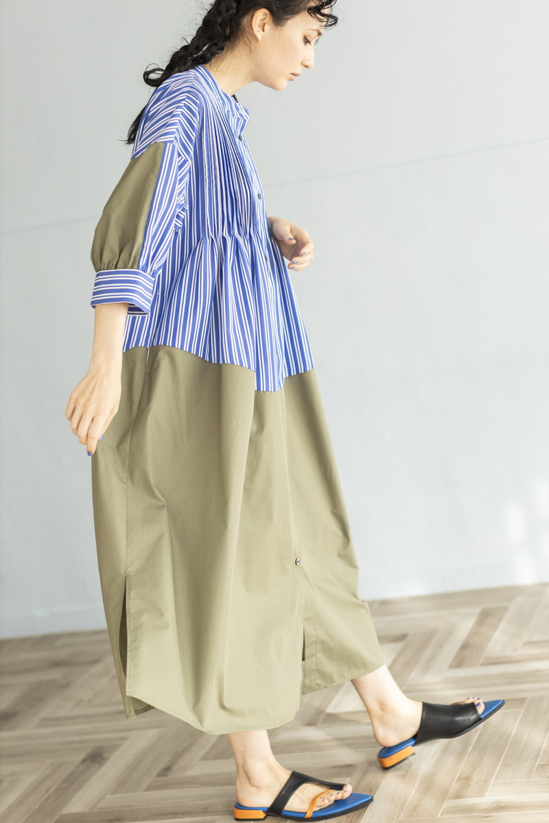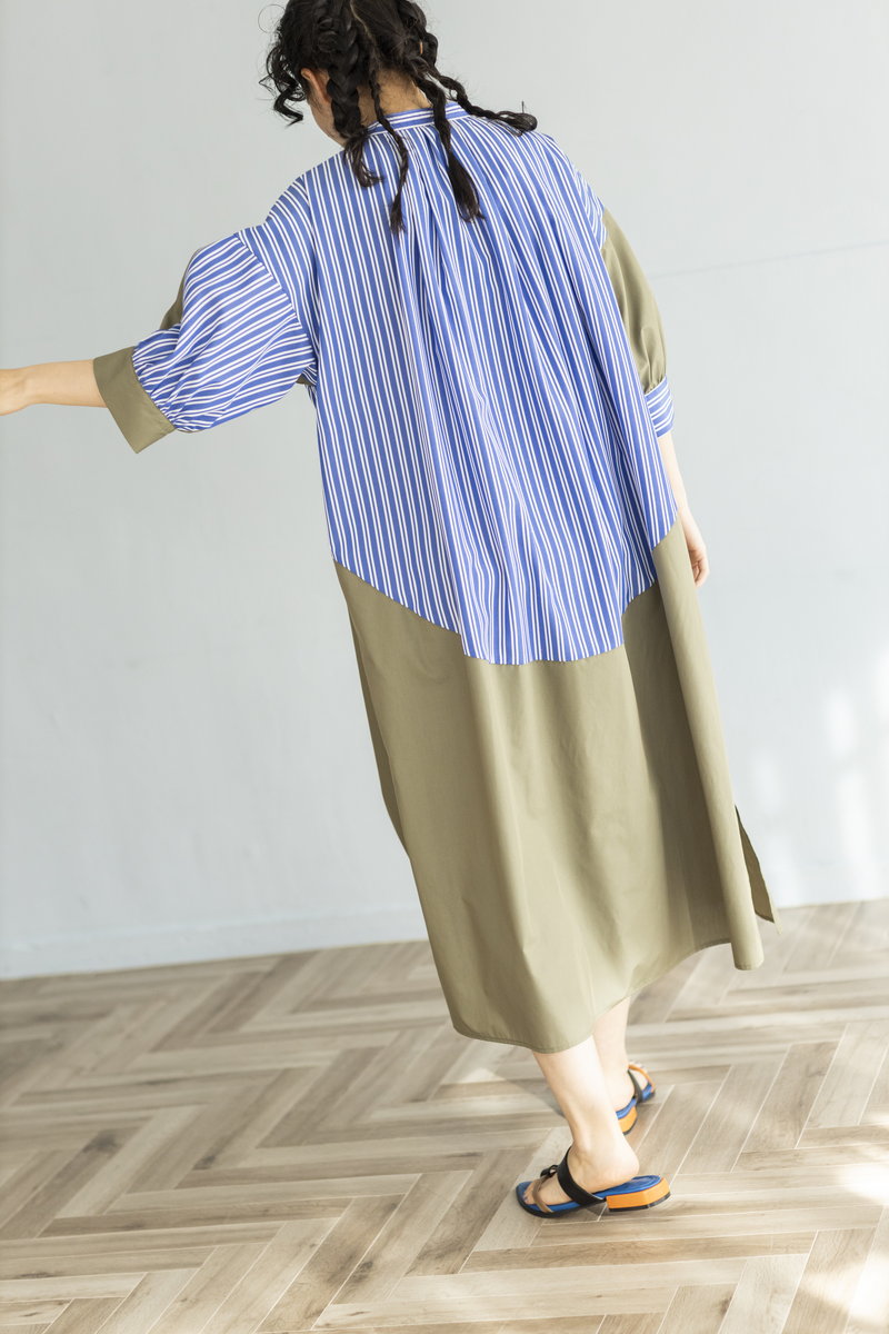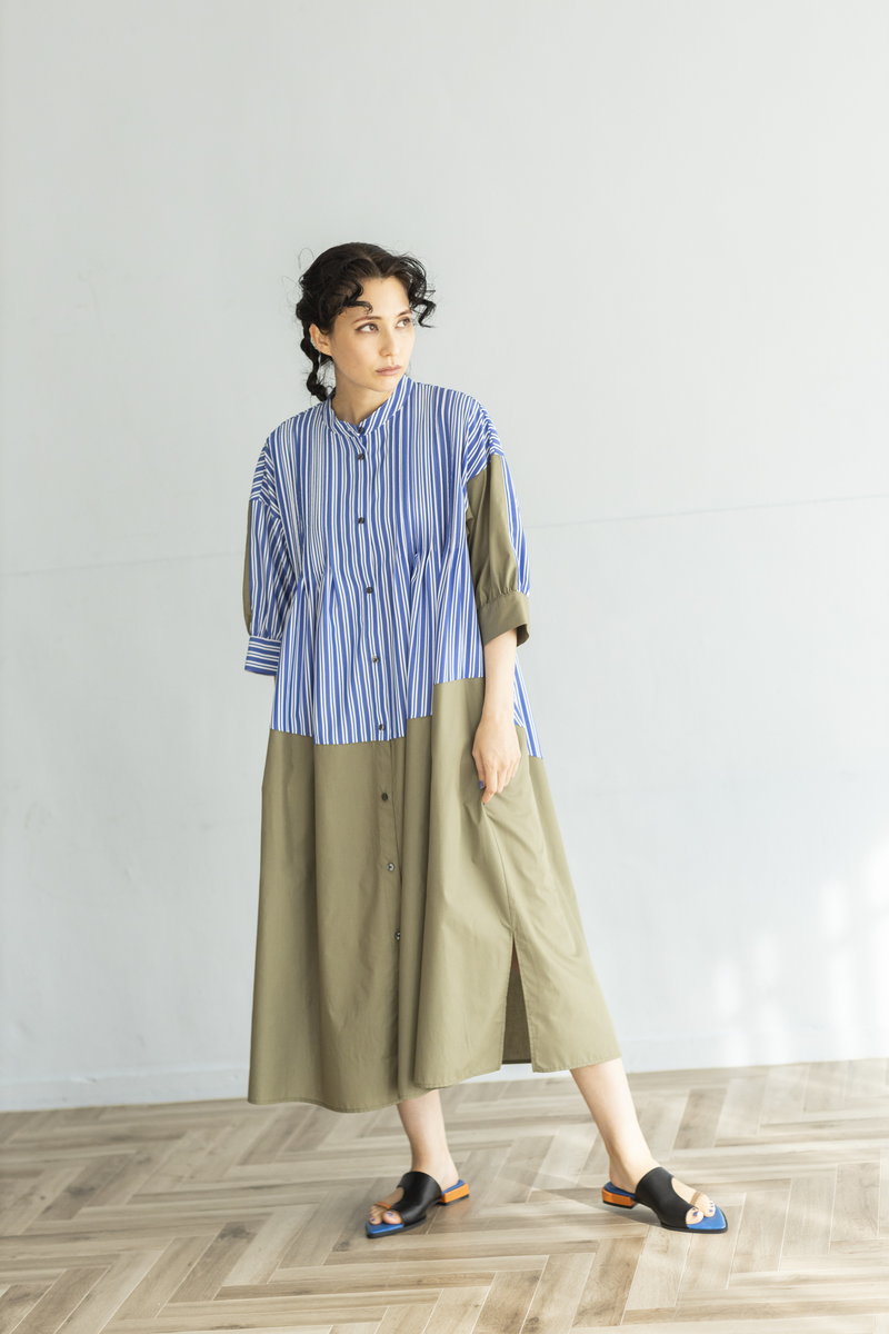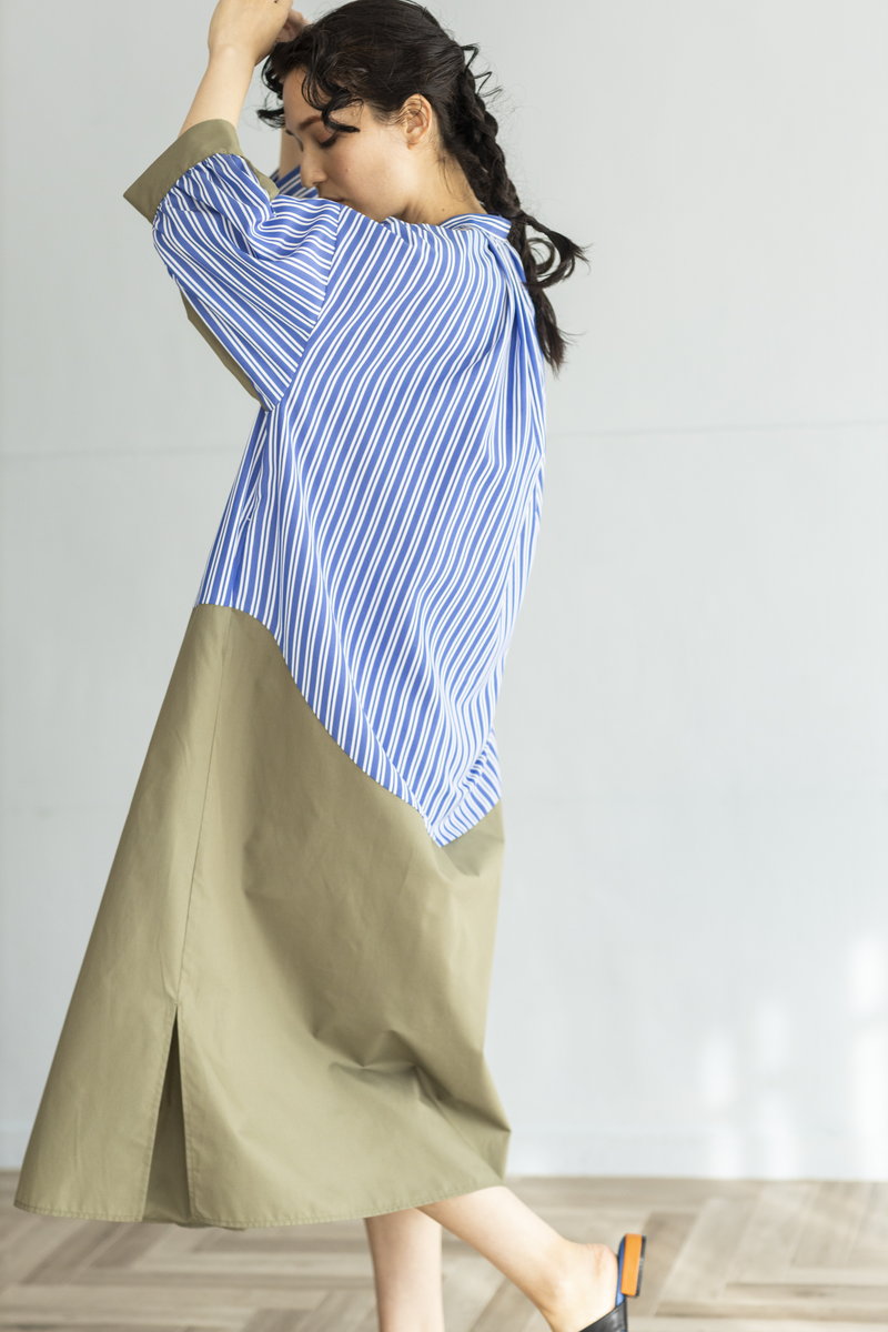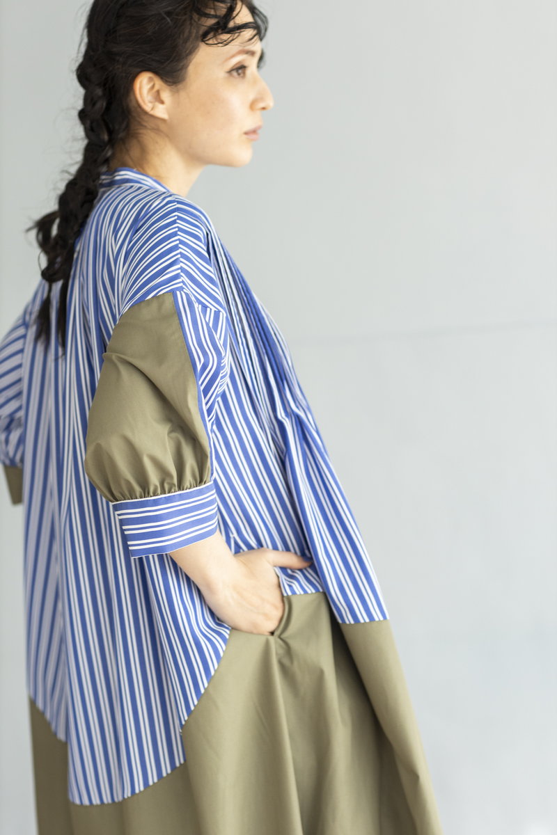 ストライプと切替で大人がサラリと着こなしたい名品に。