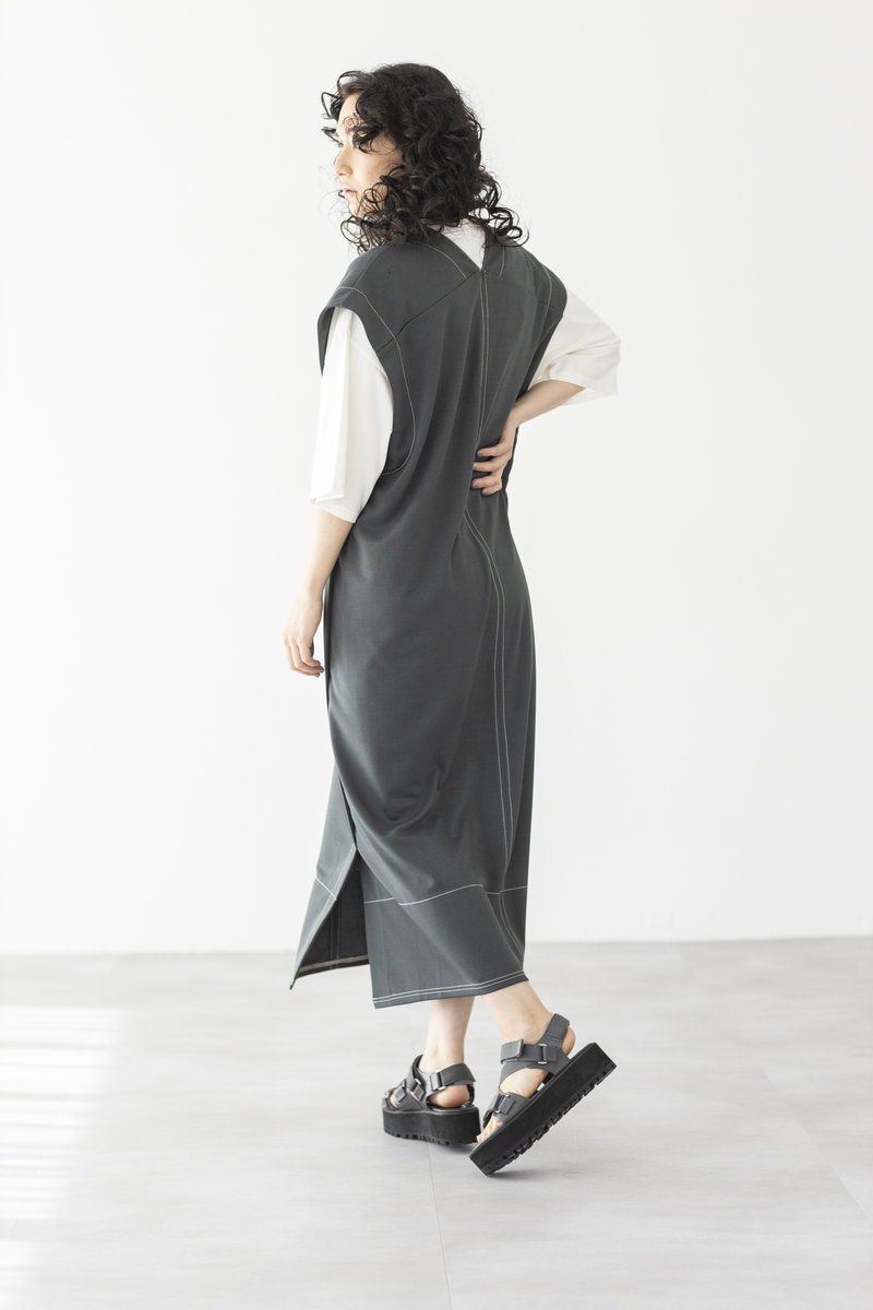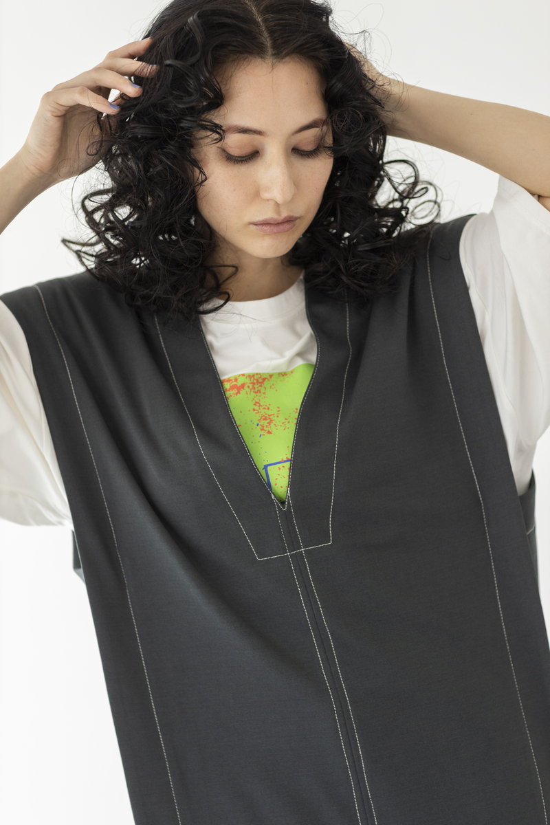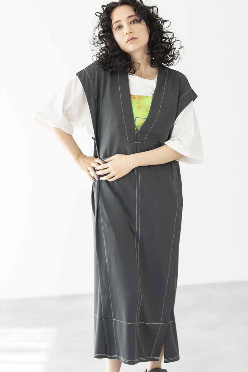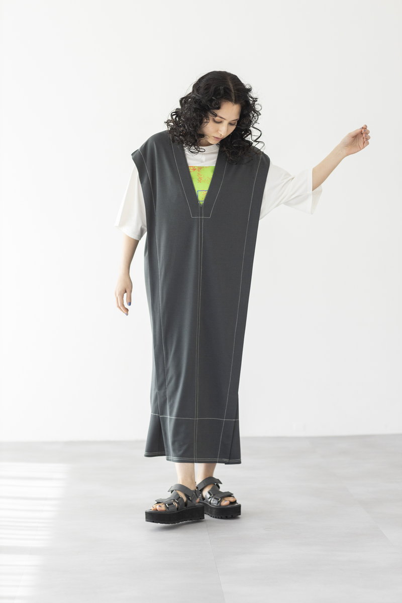 深めVネックとステッチが、