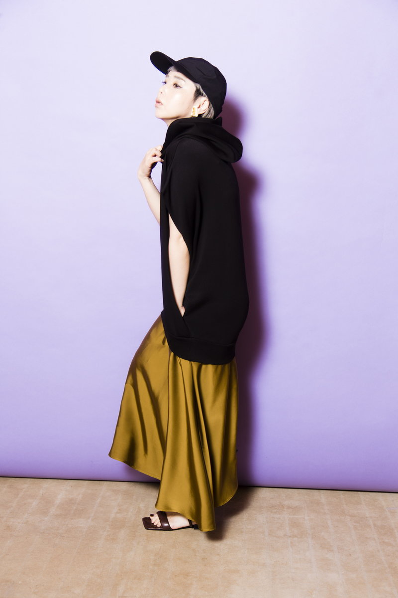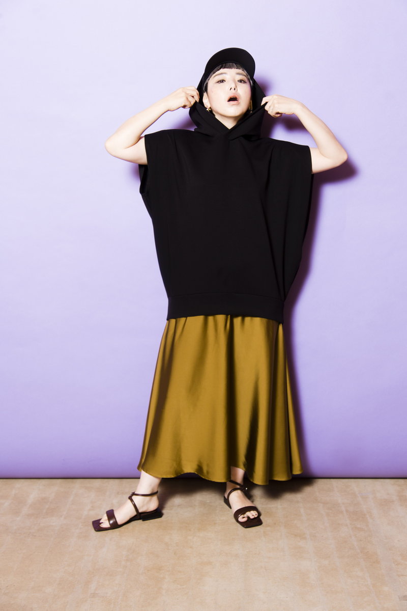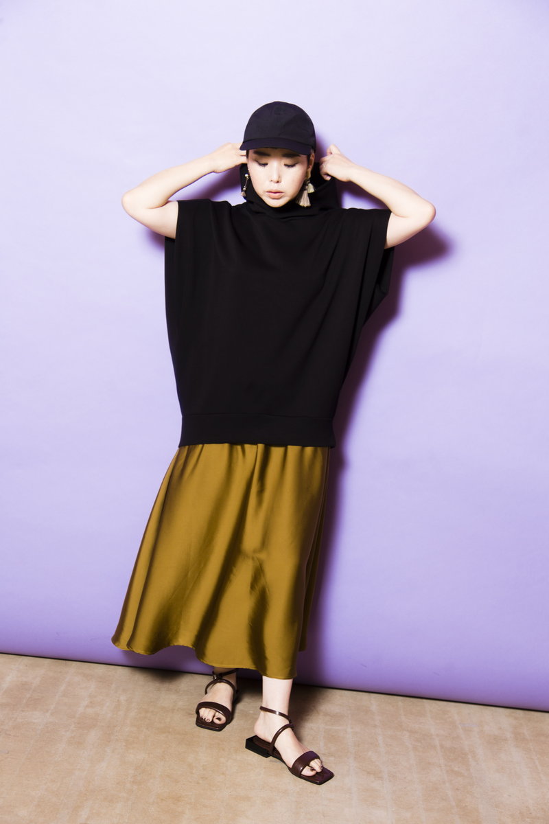 緩いだけじゃ短調になるから、ほんのりフィット&フレアなスカートでメリハリを。