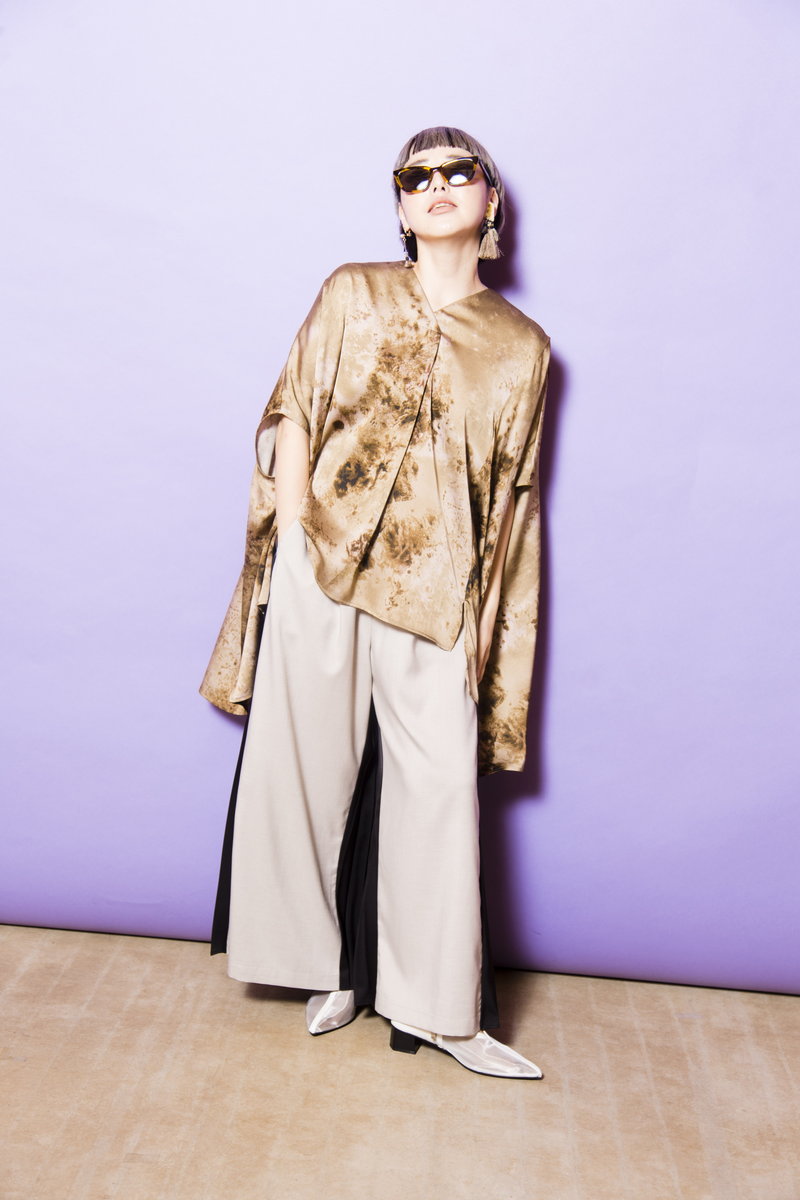 プリントブラウスの華やかさを活かしながら、簡単に垢抜けるから不思議。