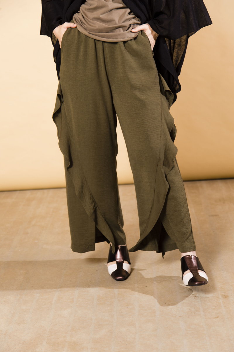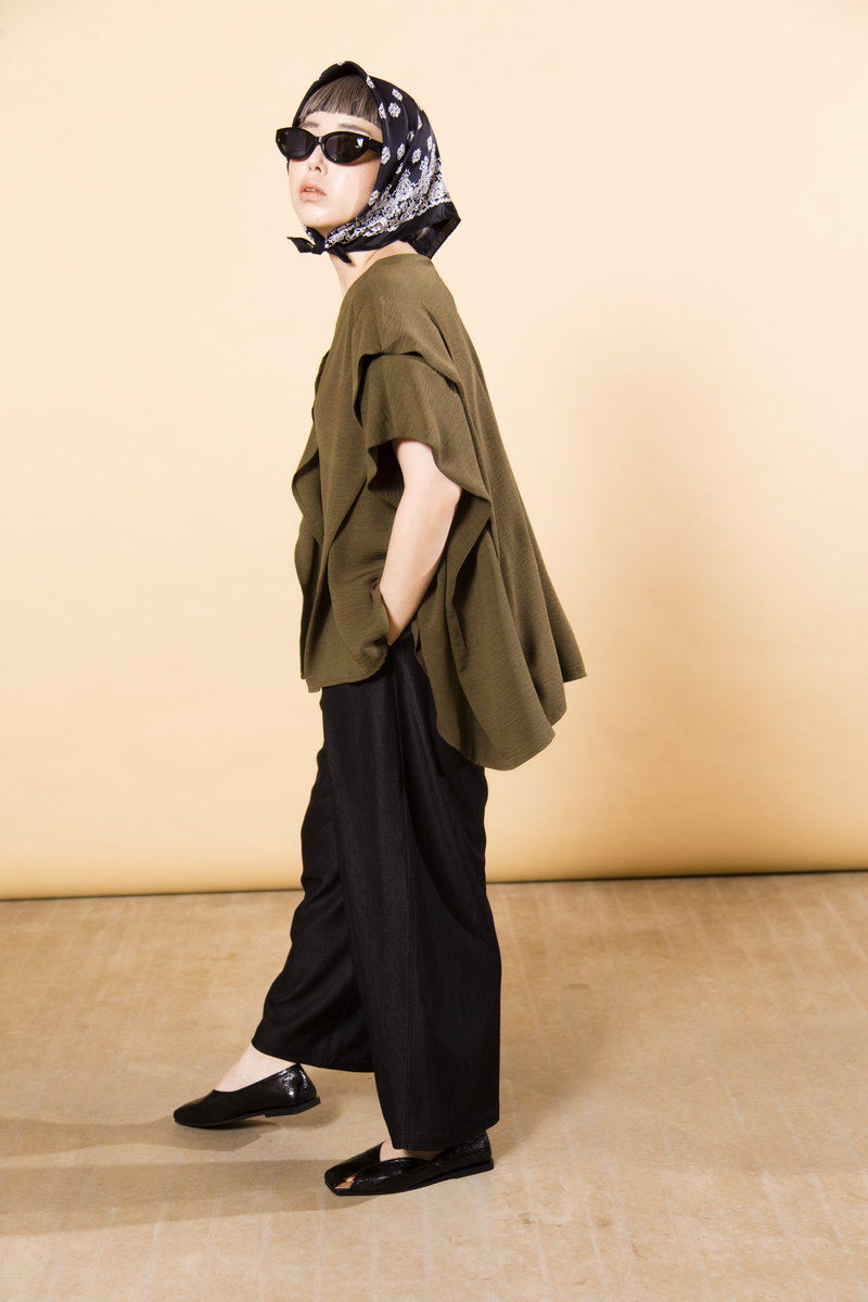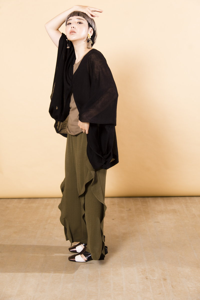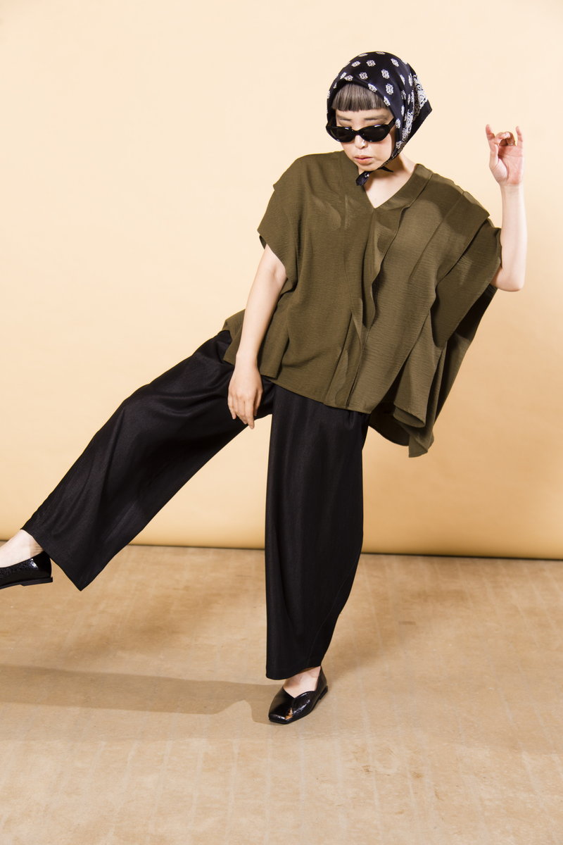 V-NECK TUCK BLOUSE¥8,690 CHIFFON LAYERED PANTS¥10,780 QUILTED SANDALS¥11,880