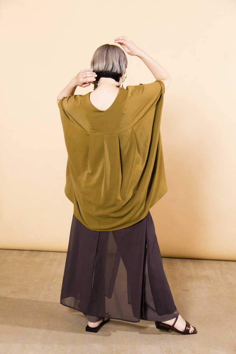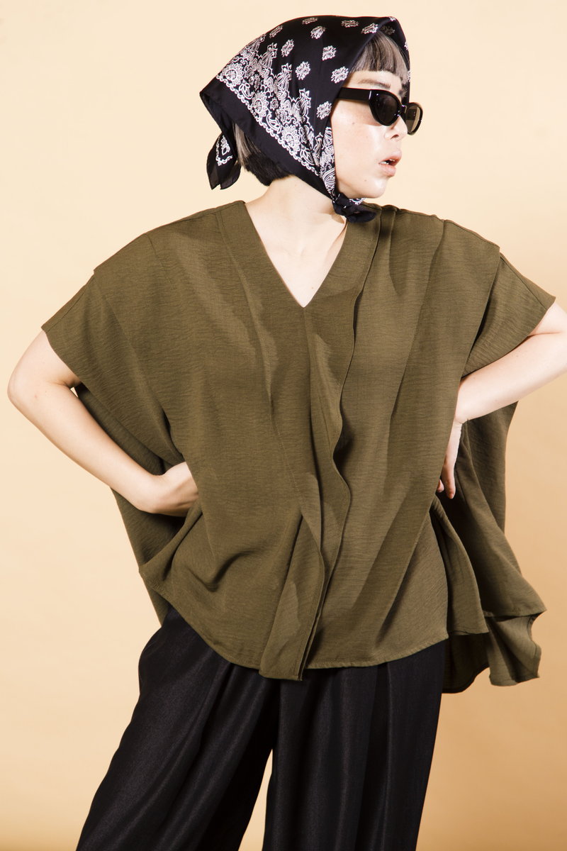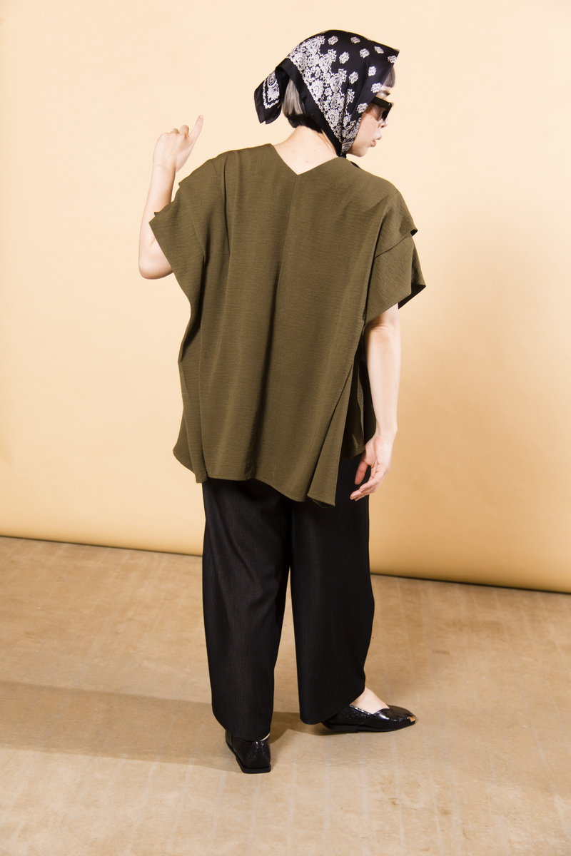 今すぐ着られて、暑さが残る秋にも対応するなら、トレンドのKHAKIをチョイス。