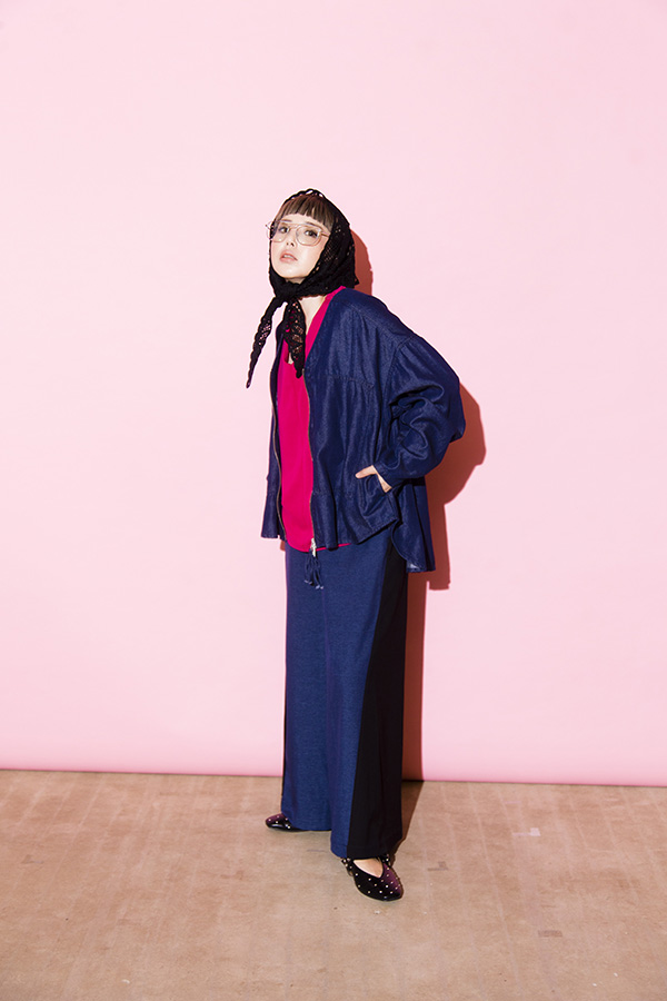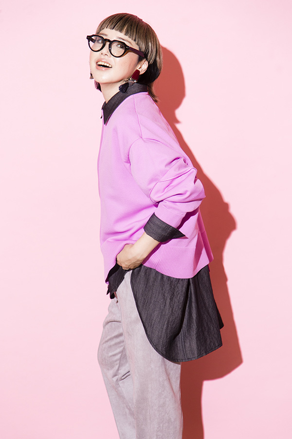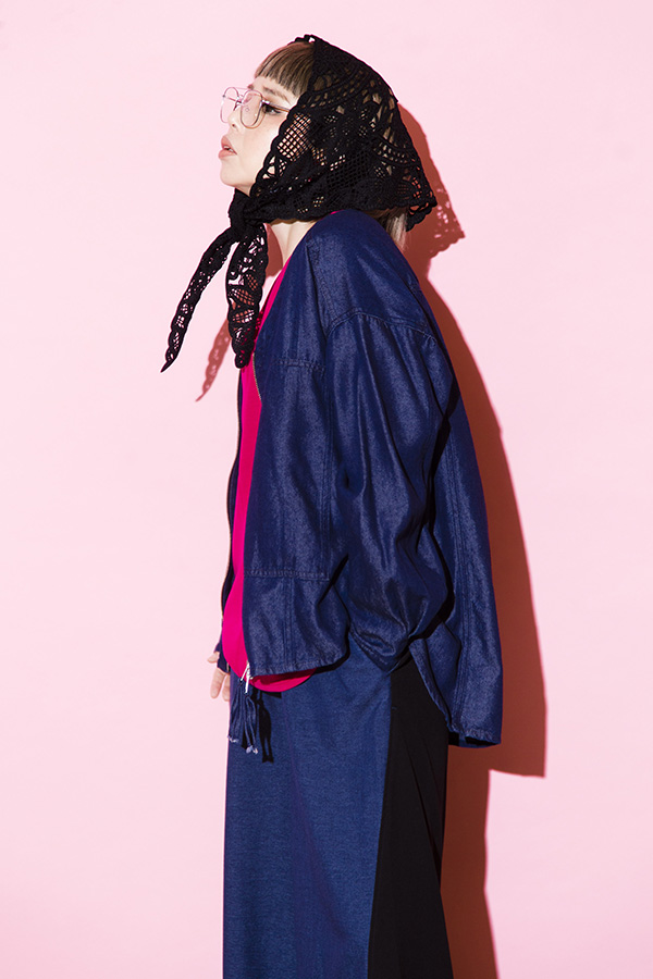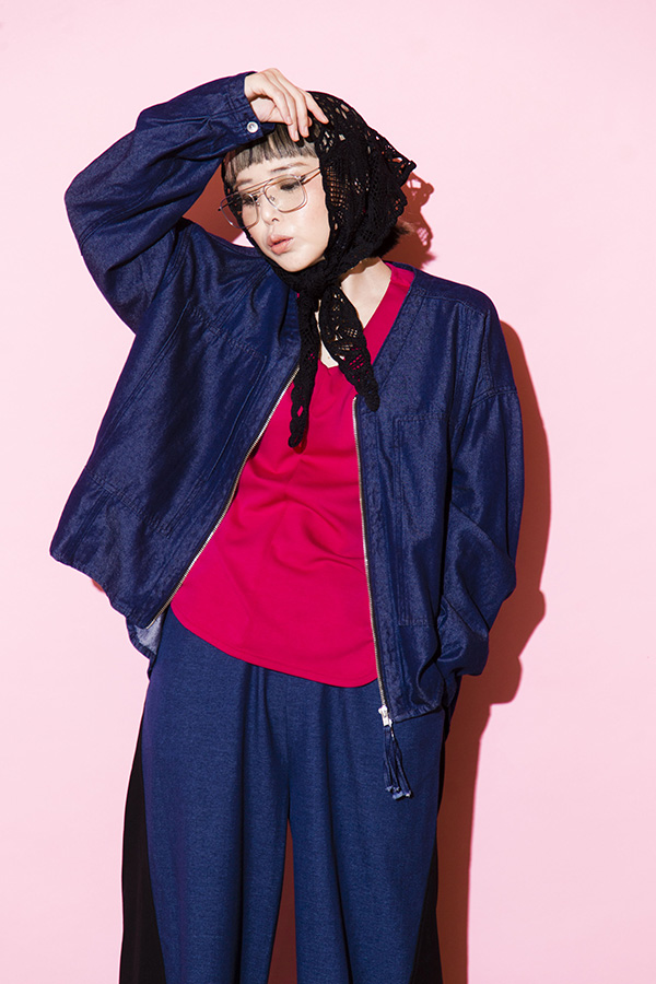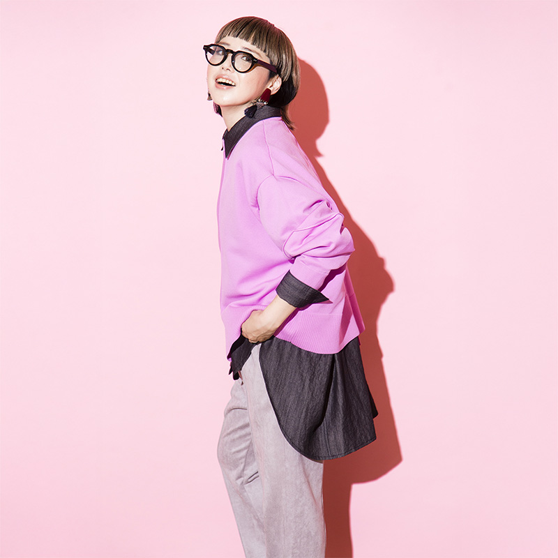 甘さを打ち消すデニムシャツがポイント。