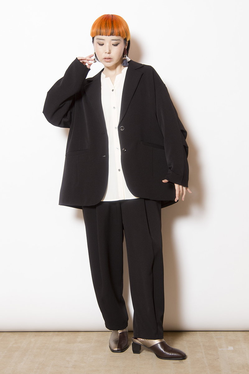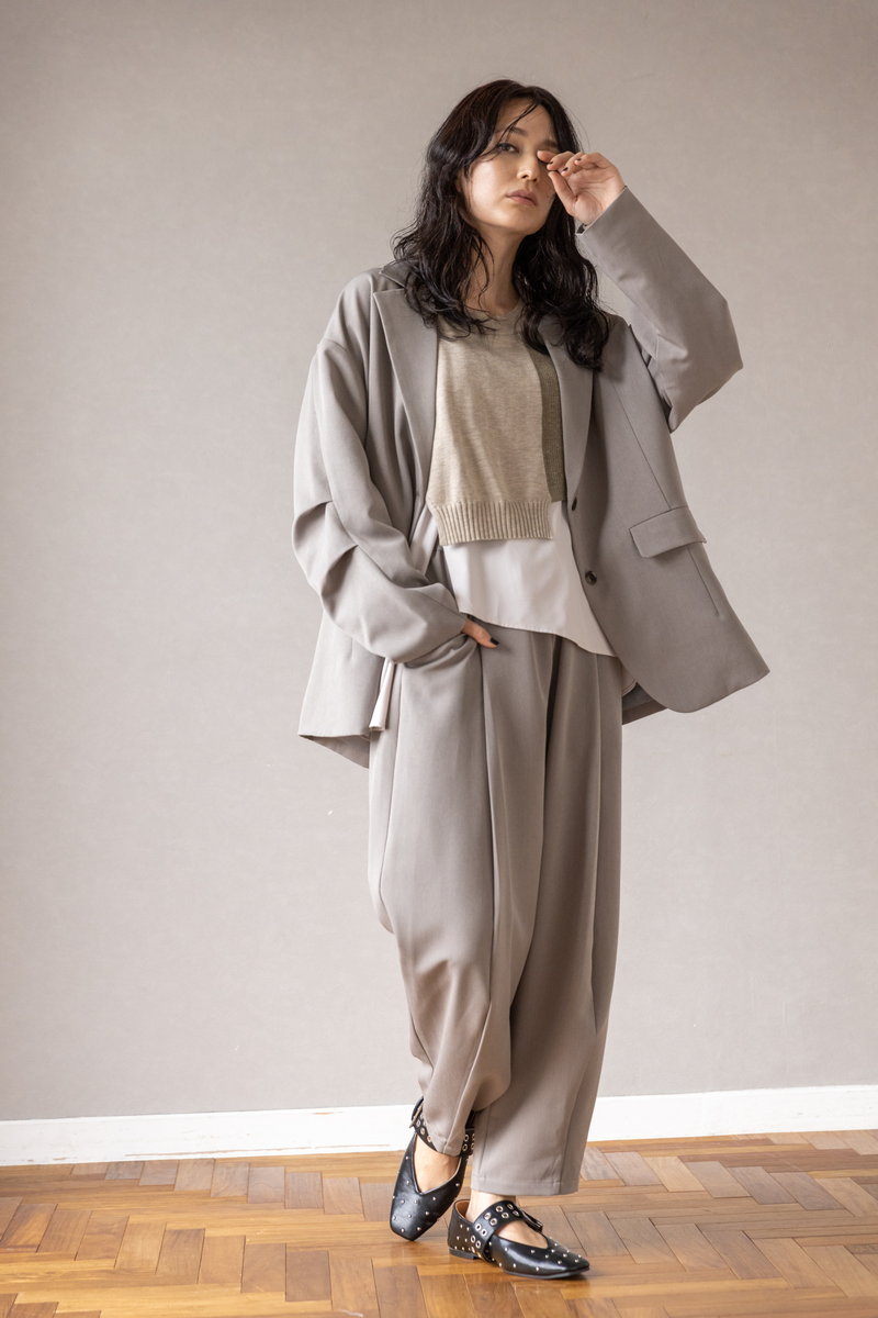 パンツスタイルを引き締め