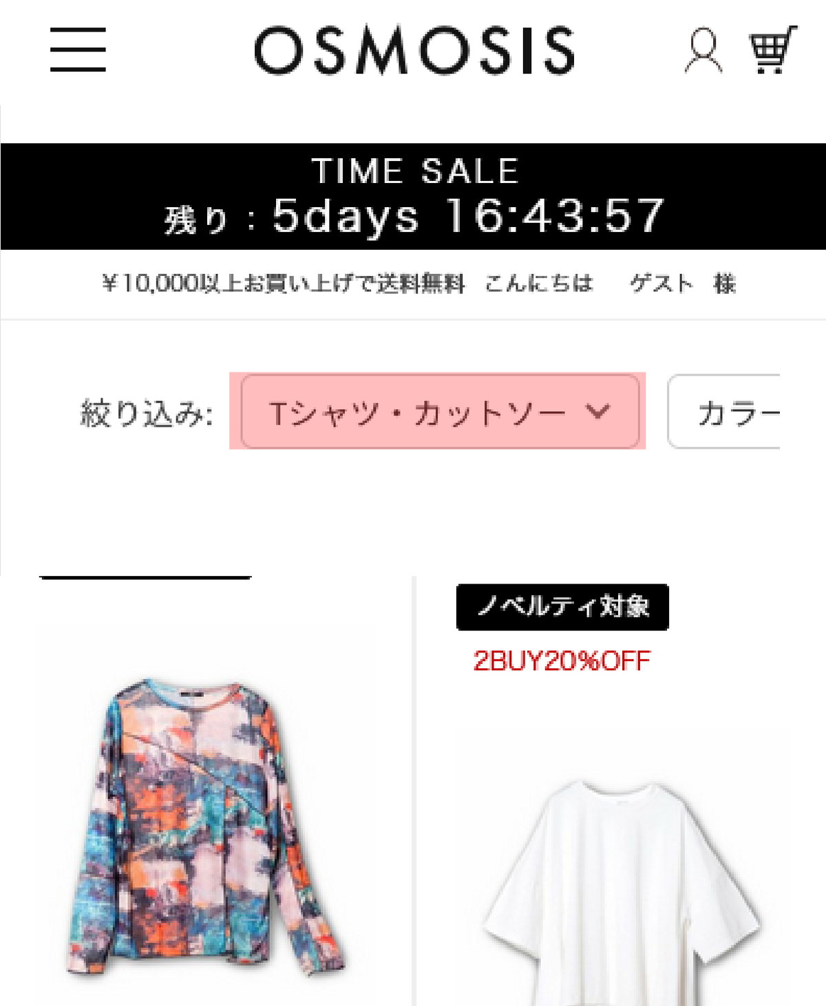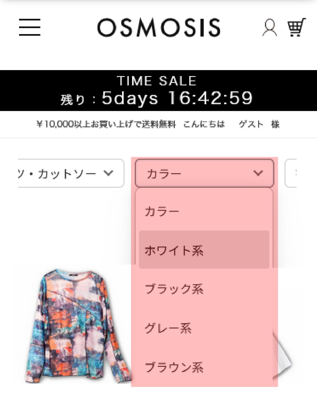 アカオビの箇所でカテゴリー・カラー・割引率など、こだわりの条件をプルダウンから選択して頂いて、商品を絞り込む事ができます。