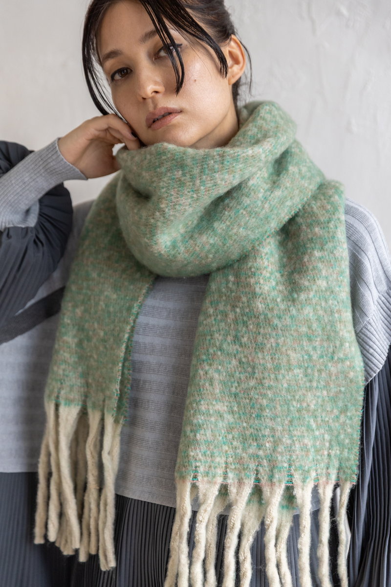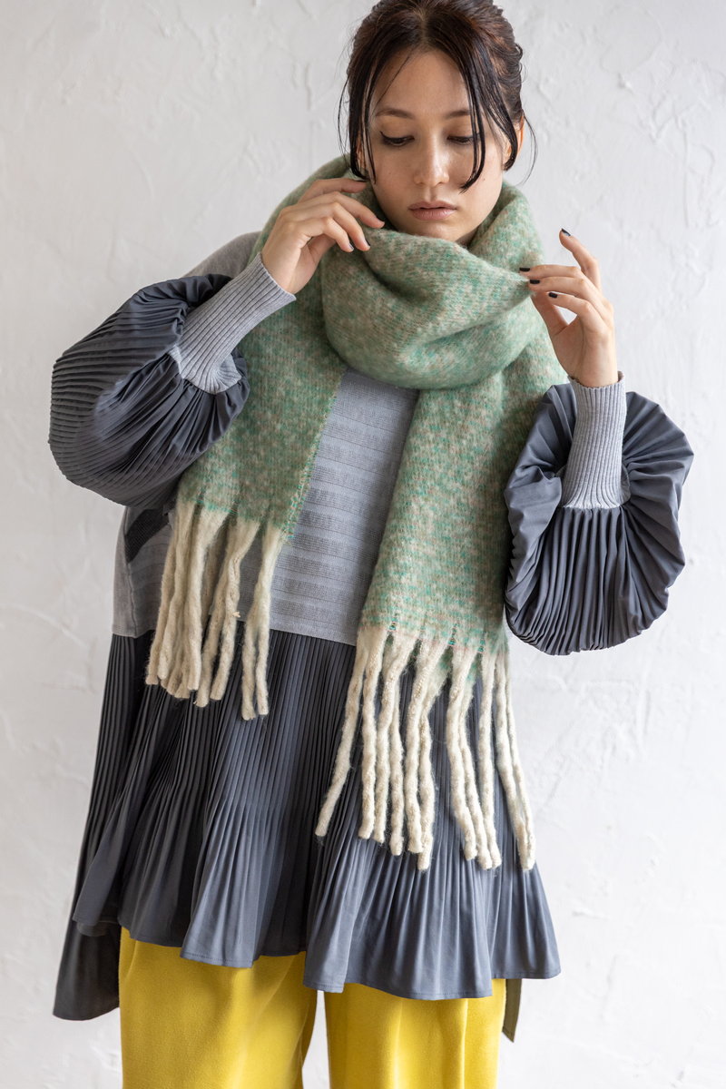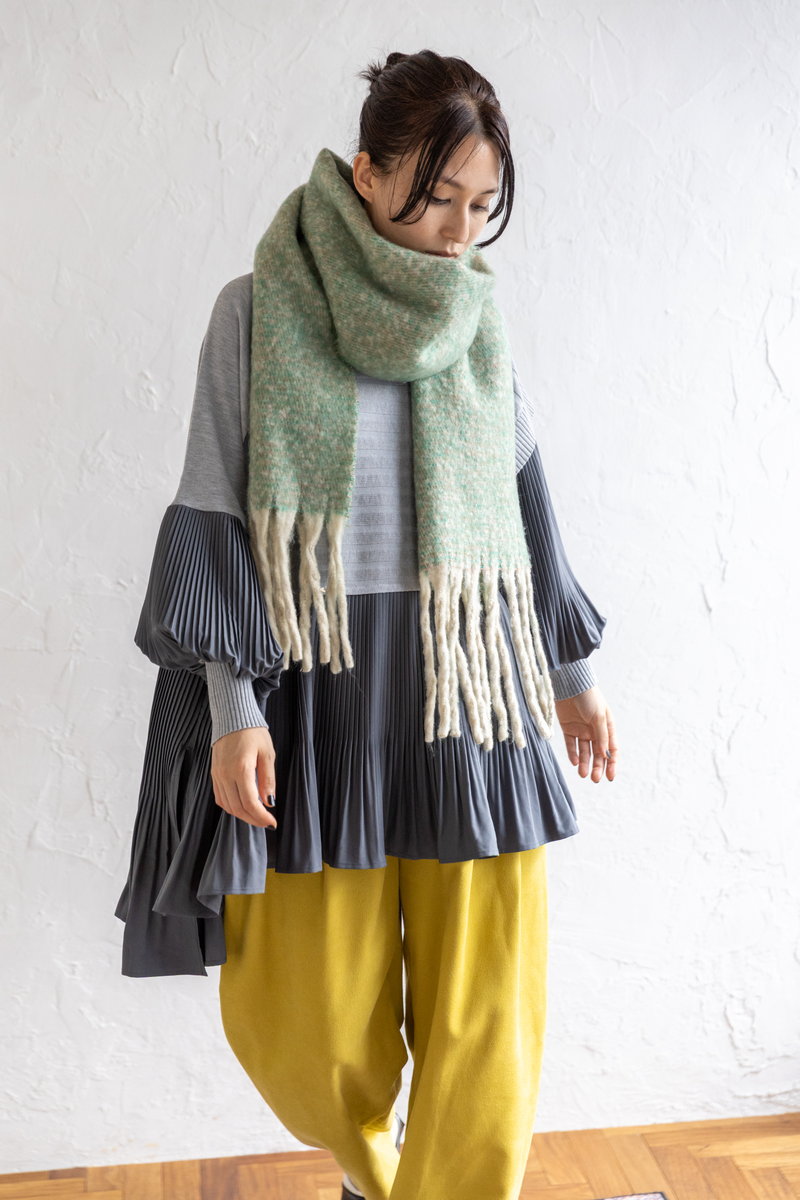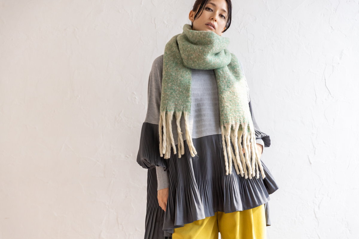 温もりあるマフラーとカラーコーデュロイが、