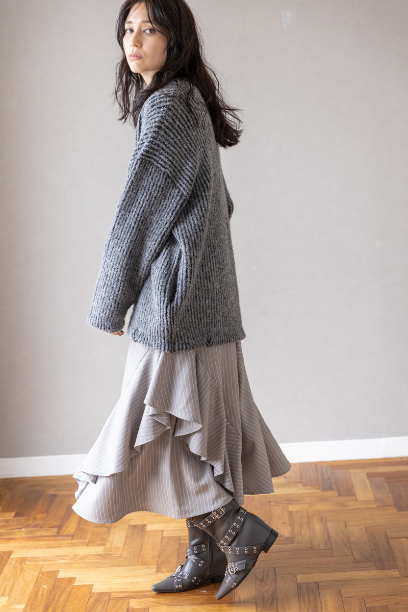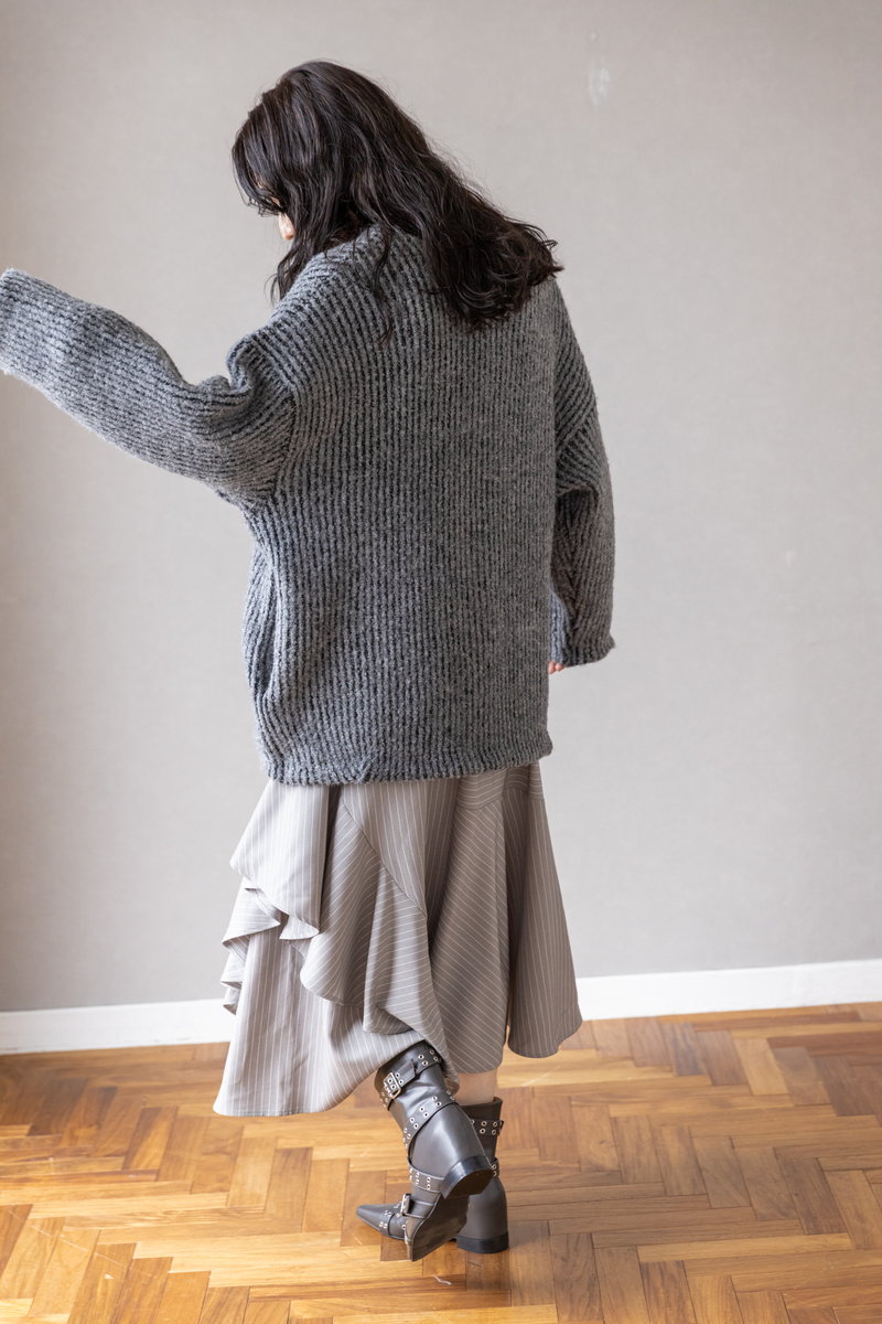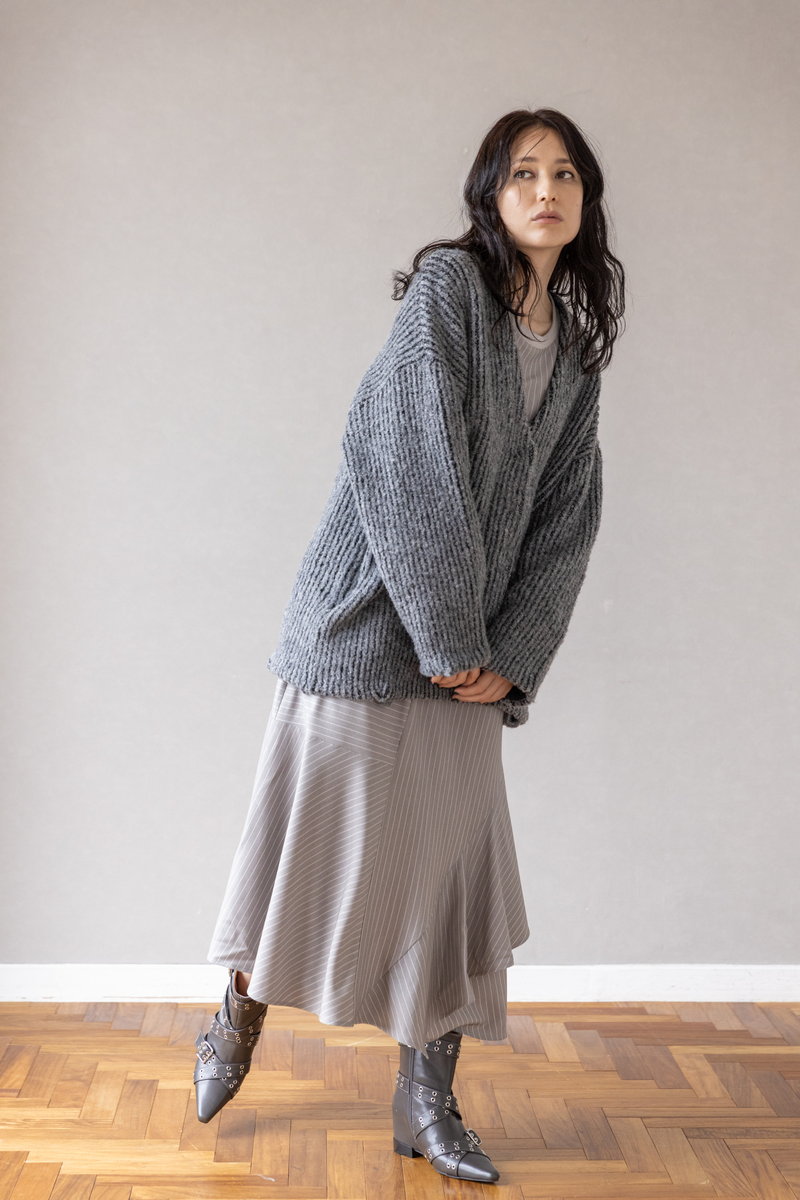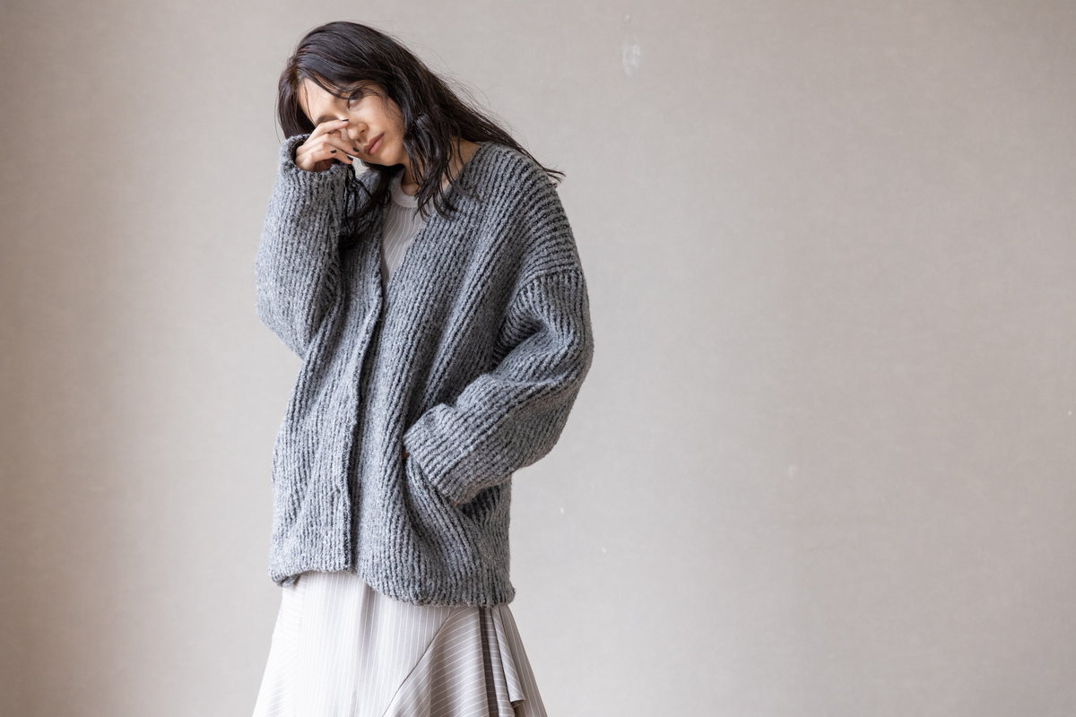 気怠いニットもGRAYのワントーンで知的に収まる。