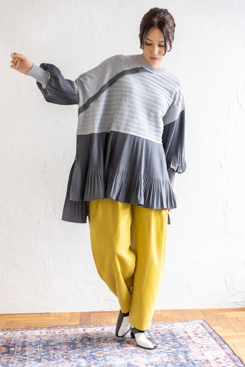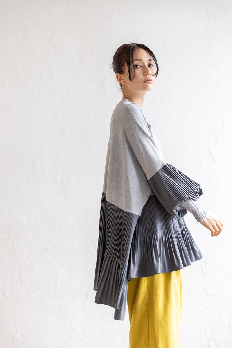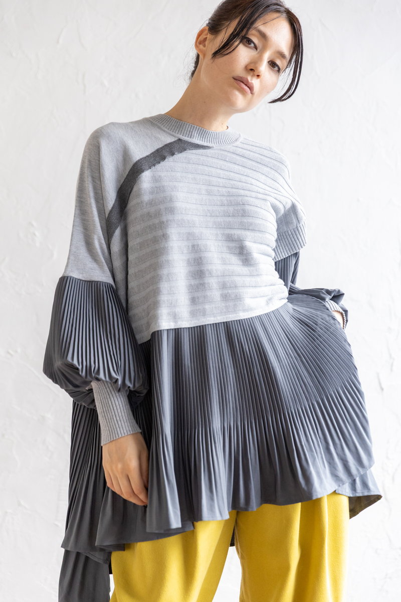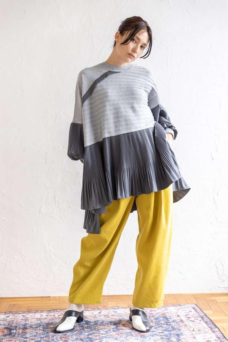 気怠いニットもGRAYのワントーンで知的に収まる。
