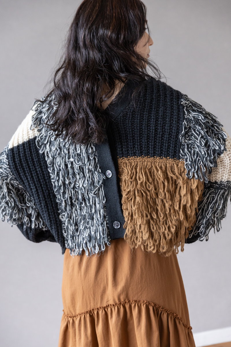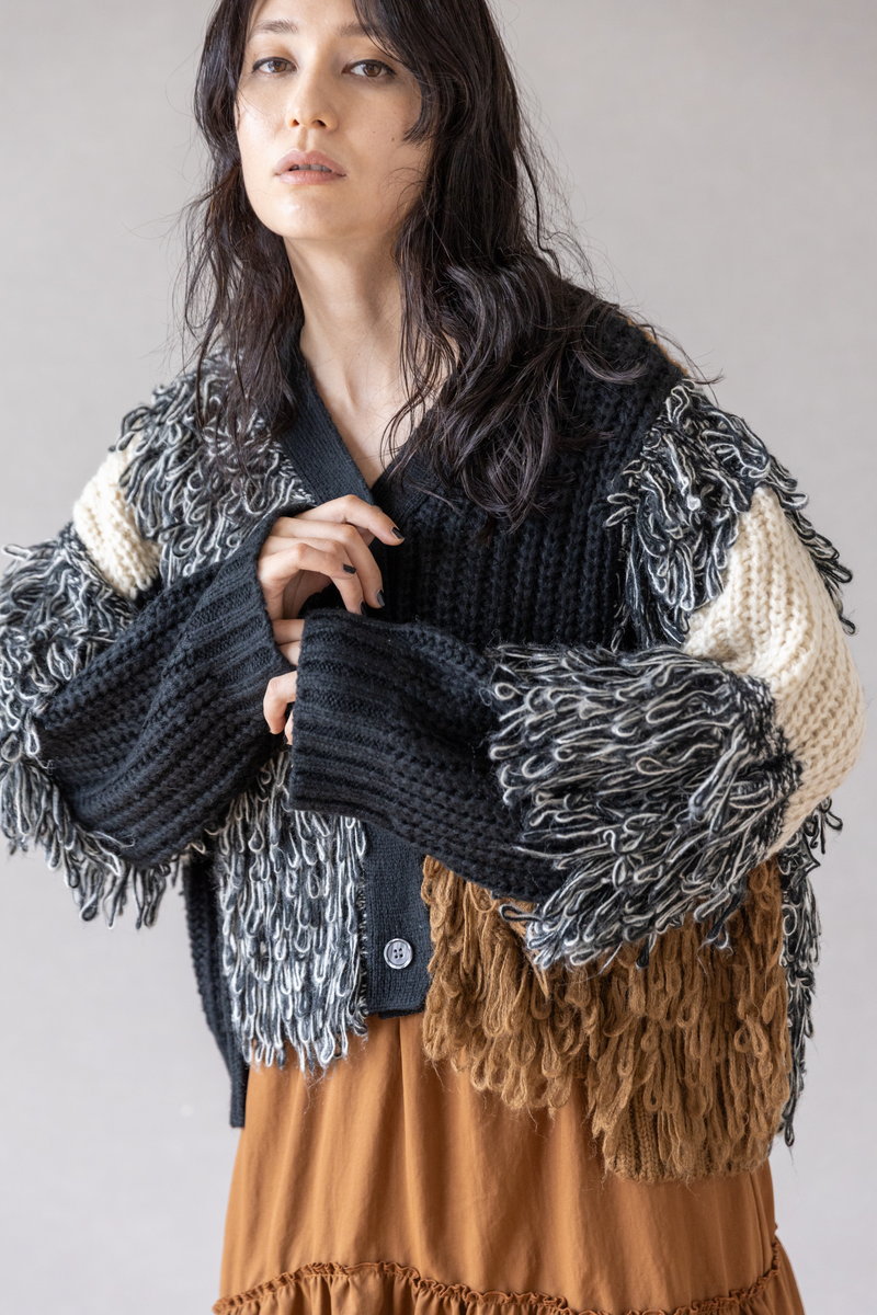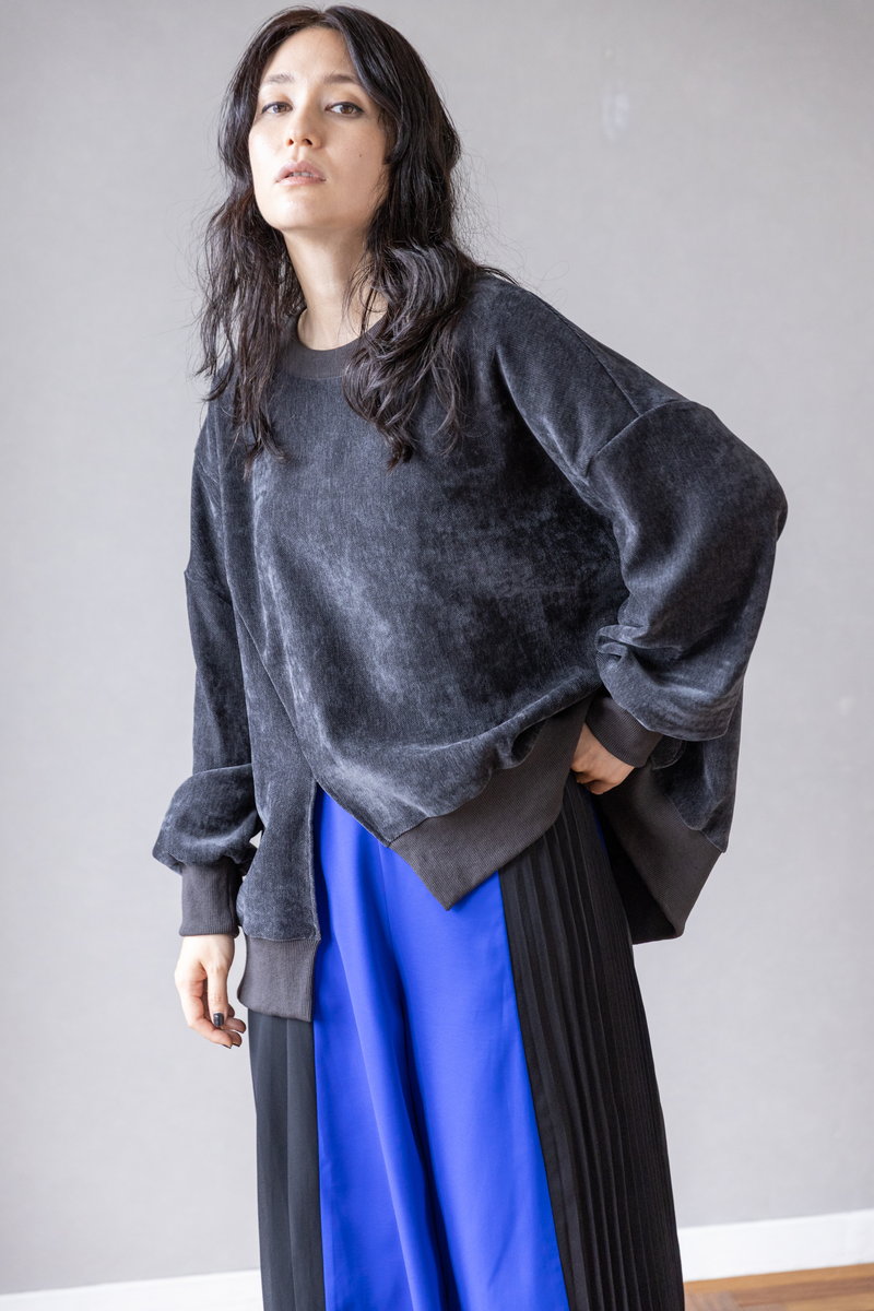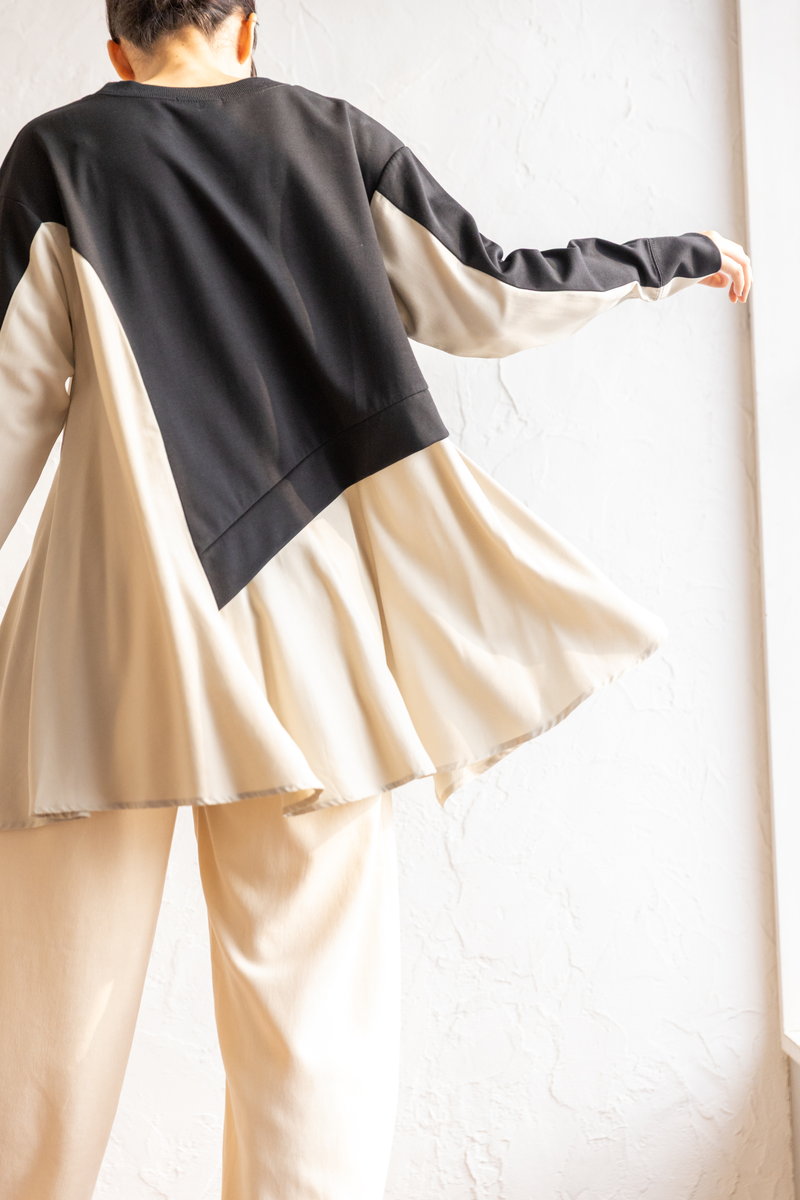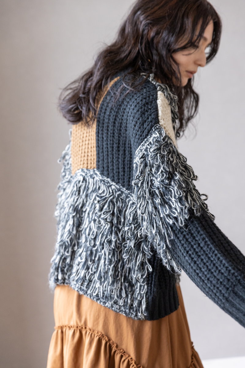 シャープなアシンメトリーニットに、
