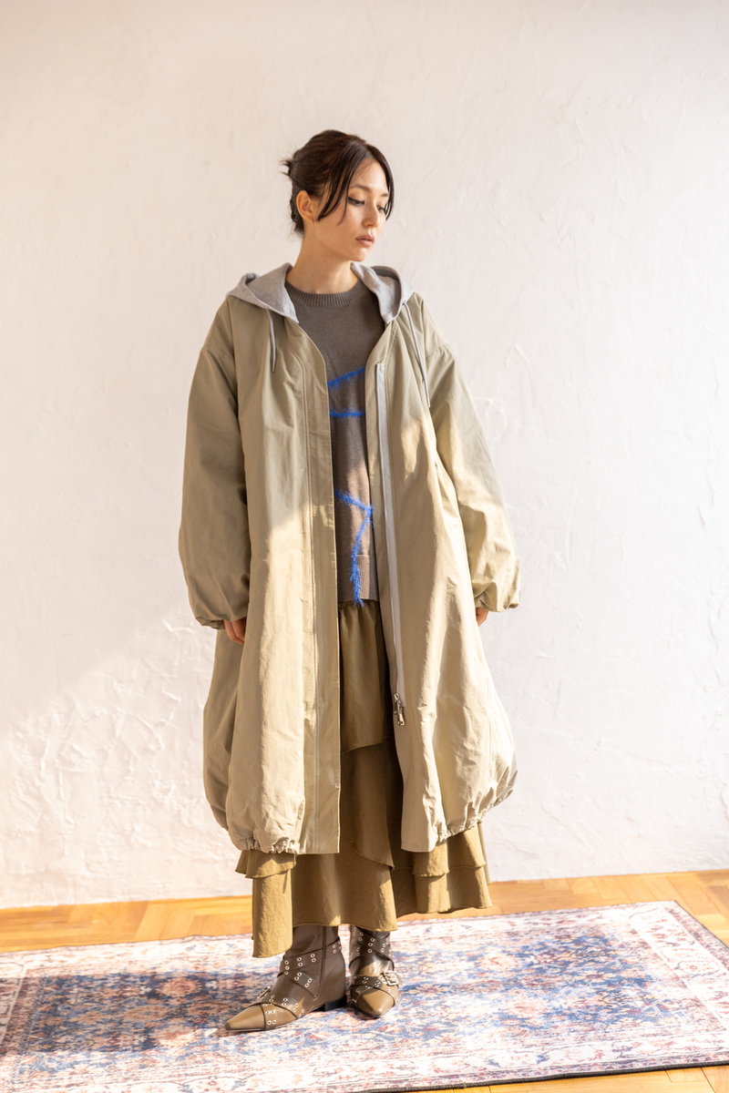 ボリューミーな上下を大人っぽいCAMELで調和。