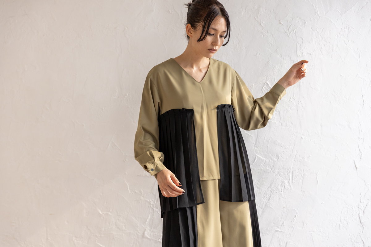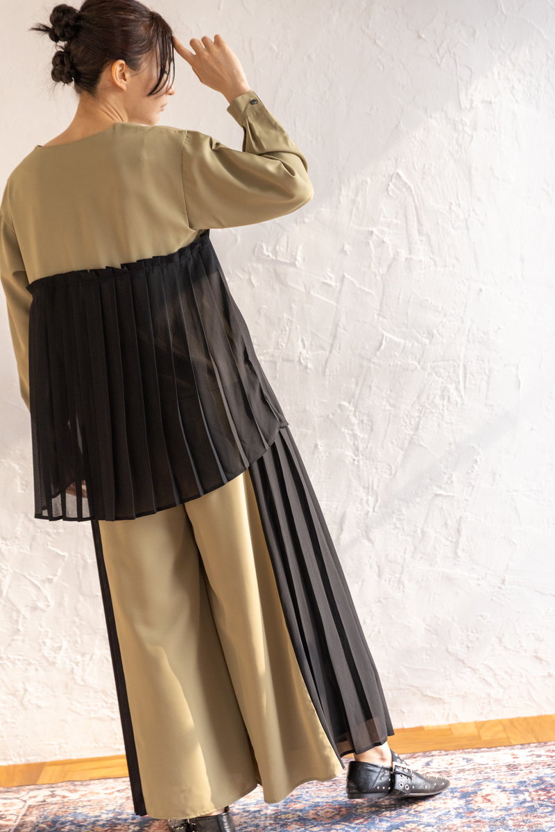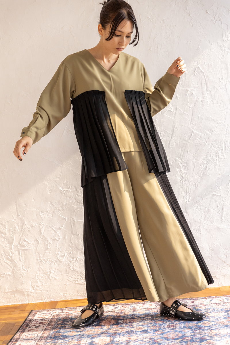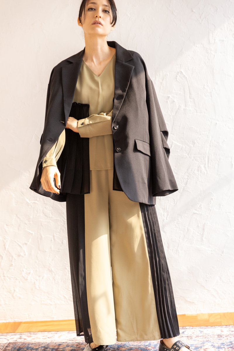 クラス感のあるプリーツのセットアップは、