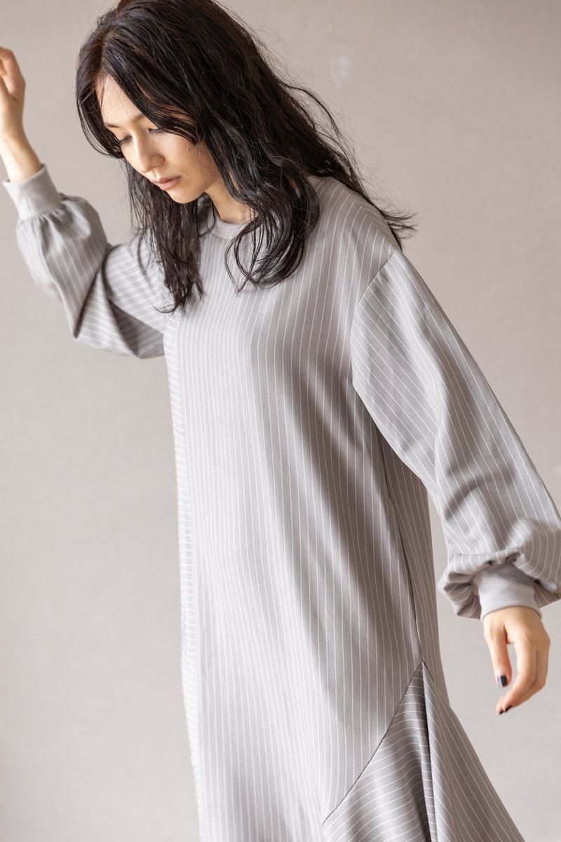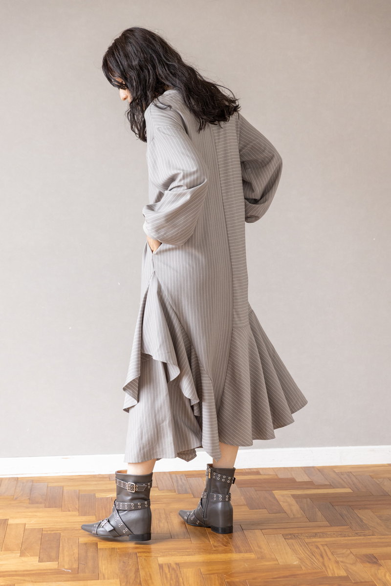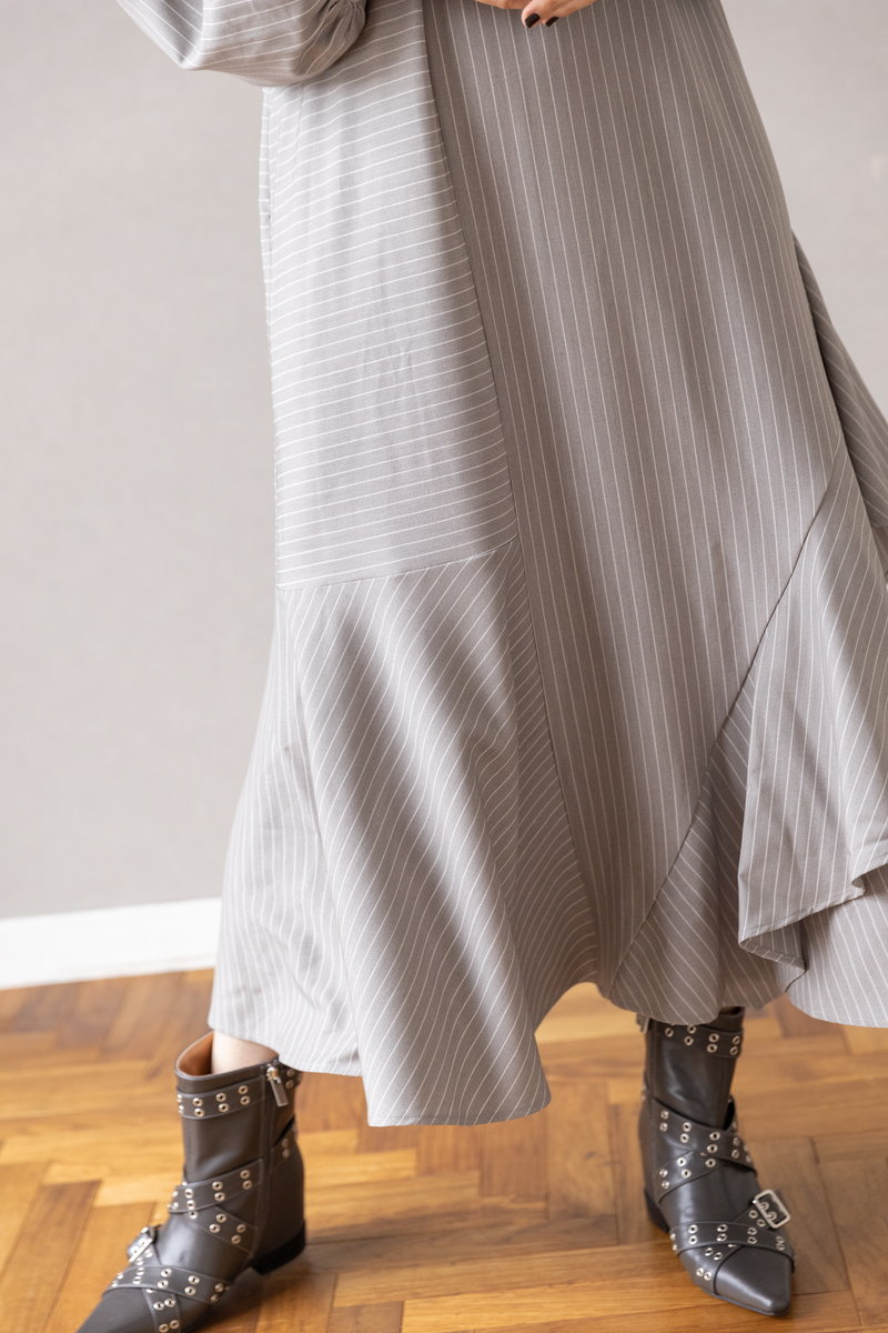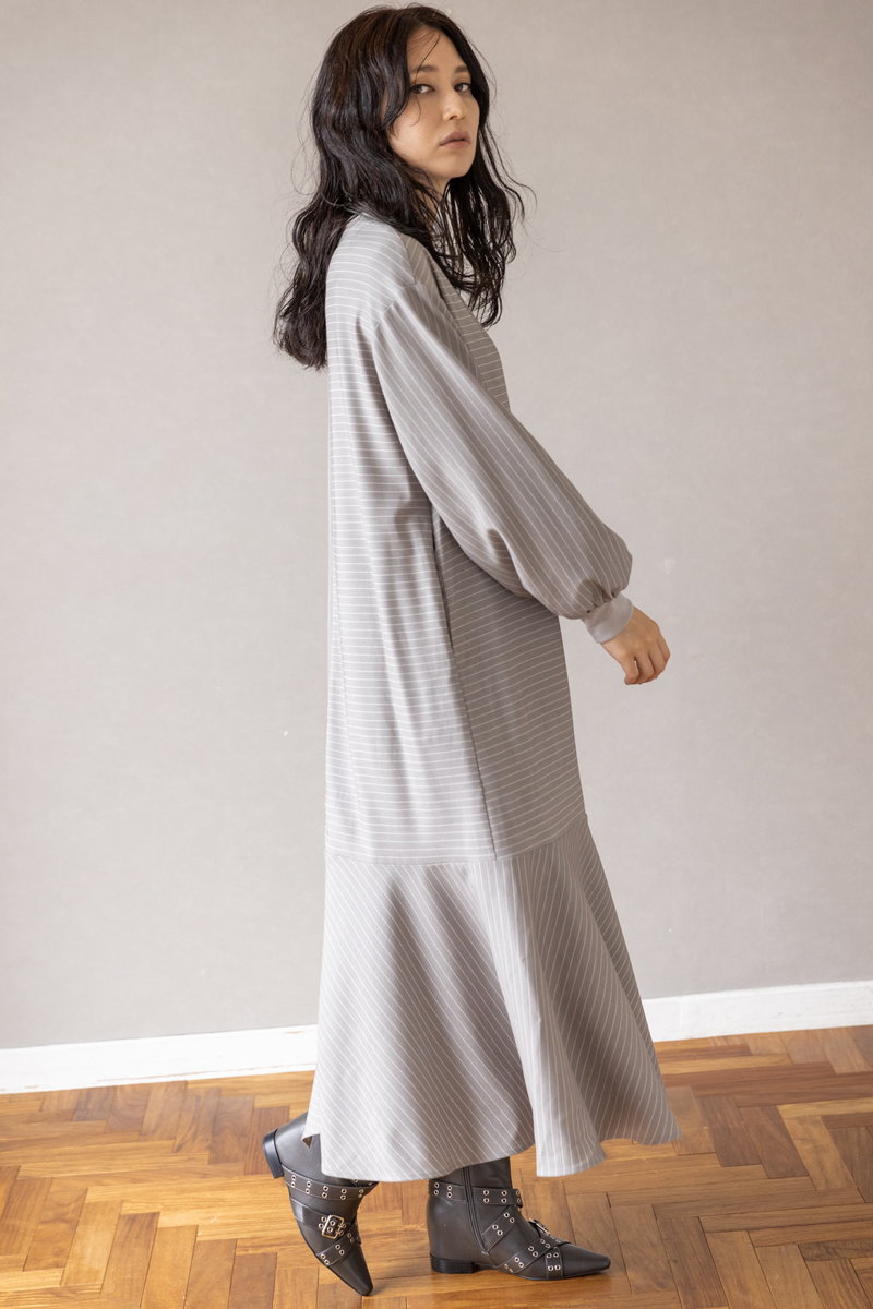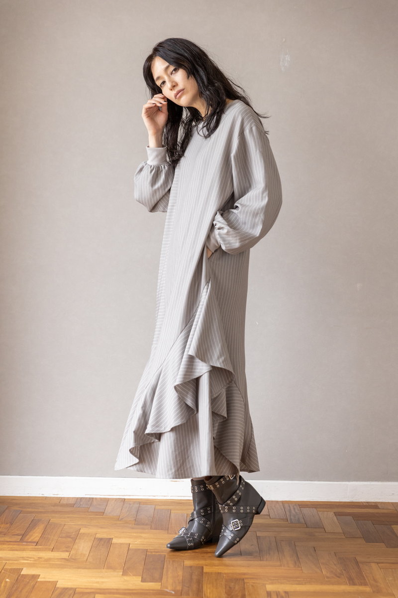 ハンサムなストライプをフリルとフレアでビタースイートなワンピース。
