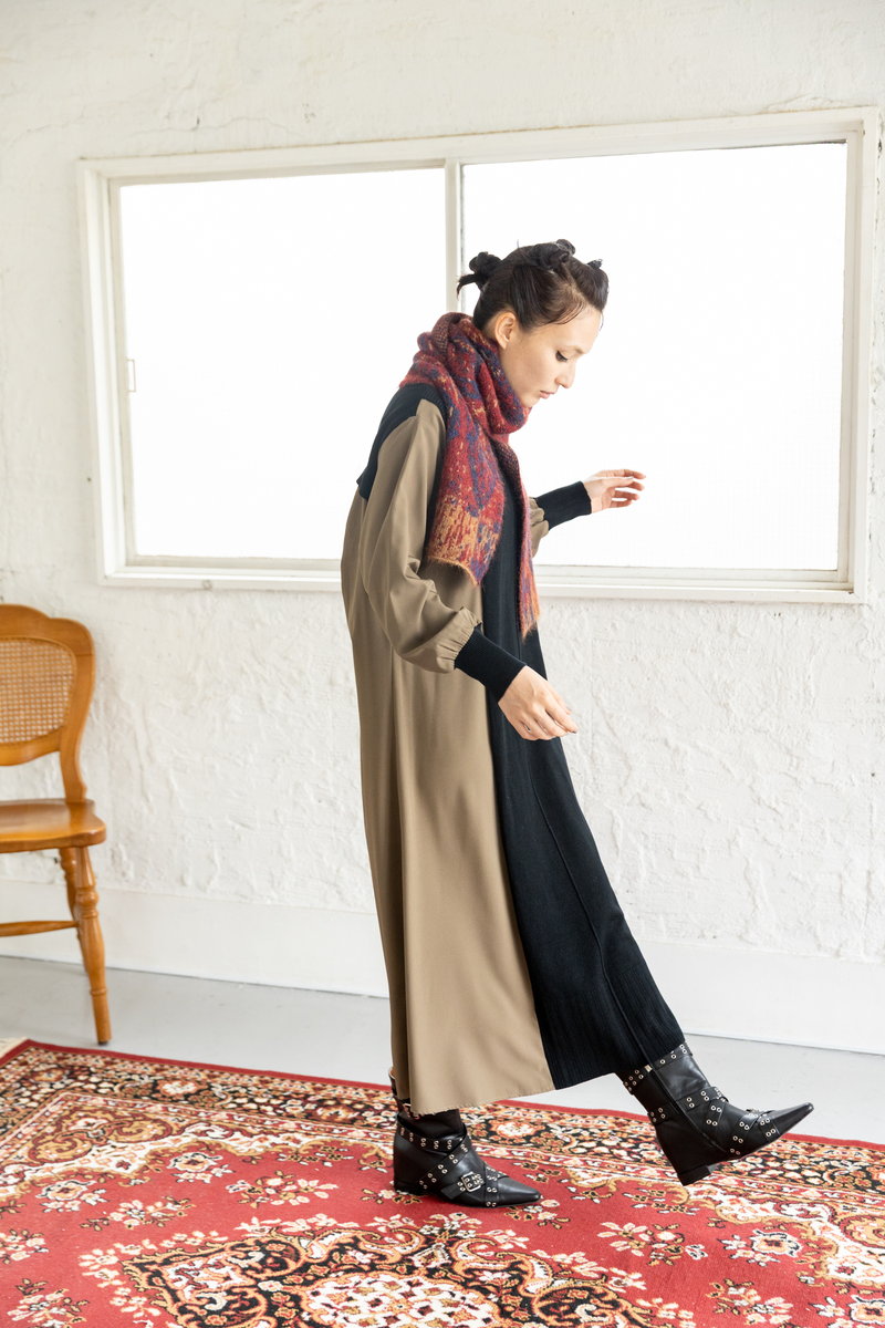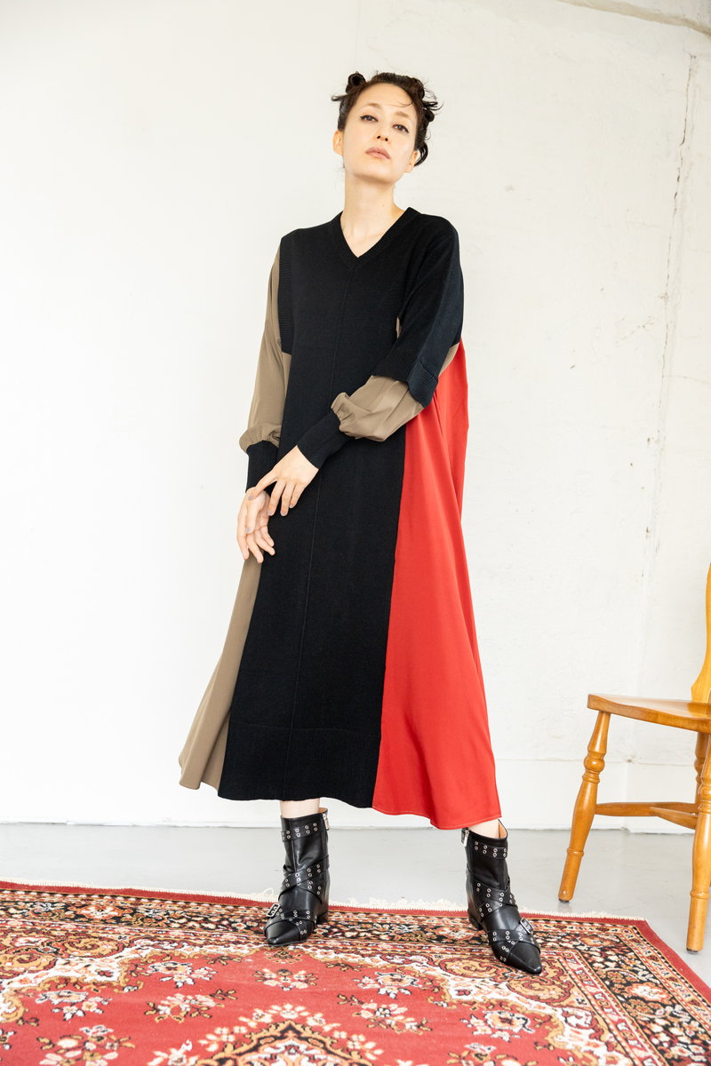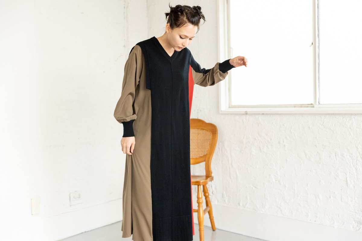 ニット切替のワンピース。
