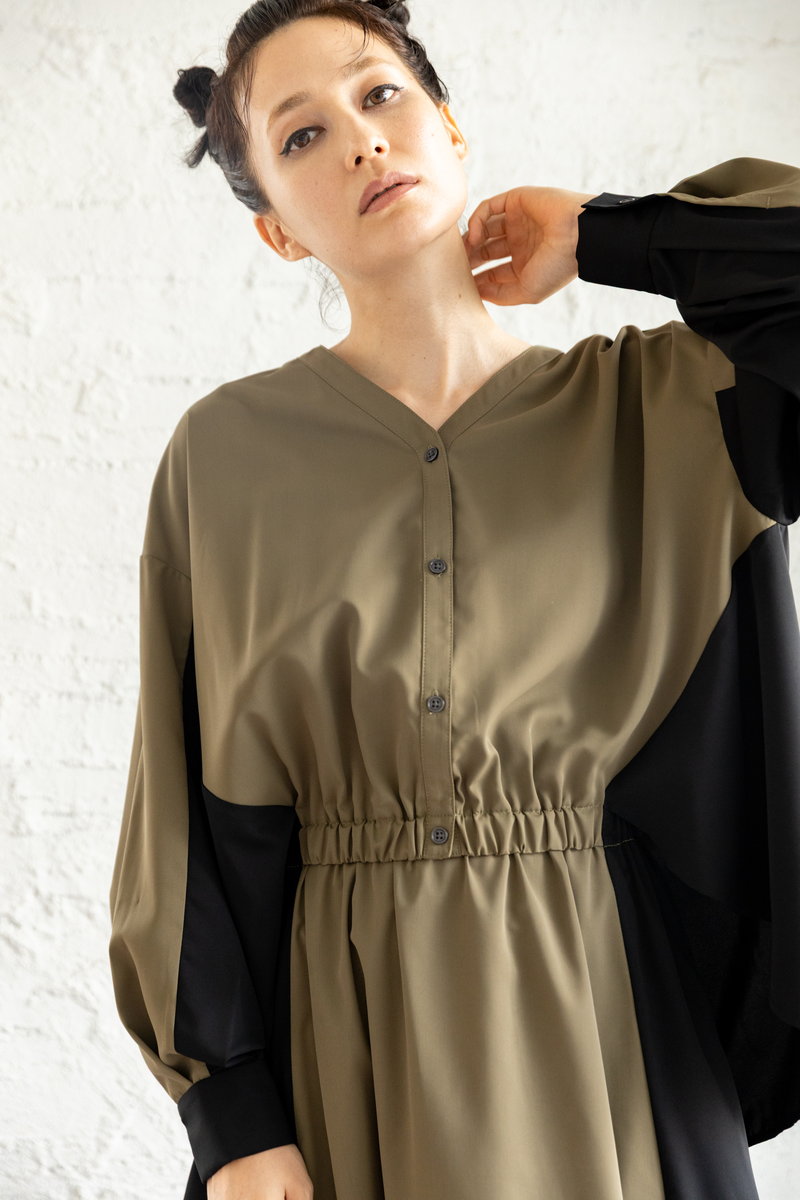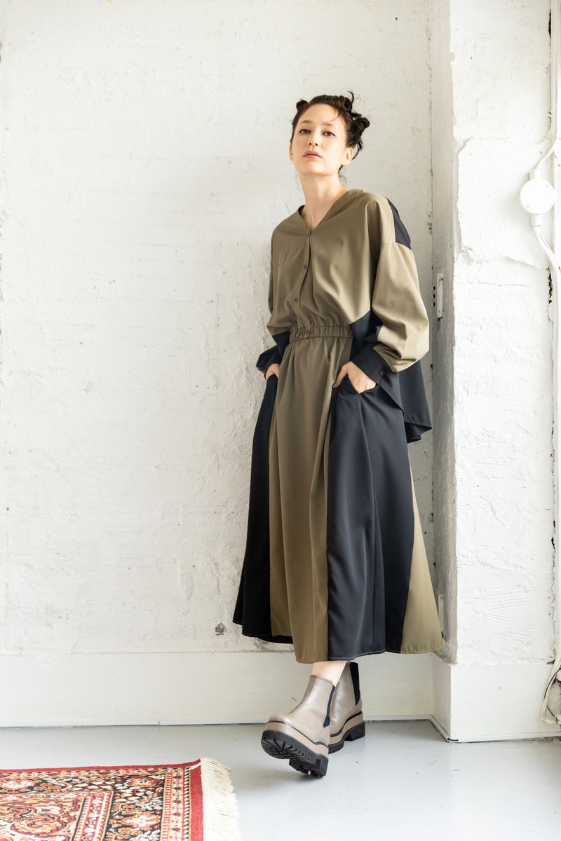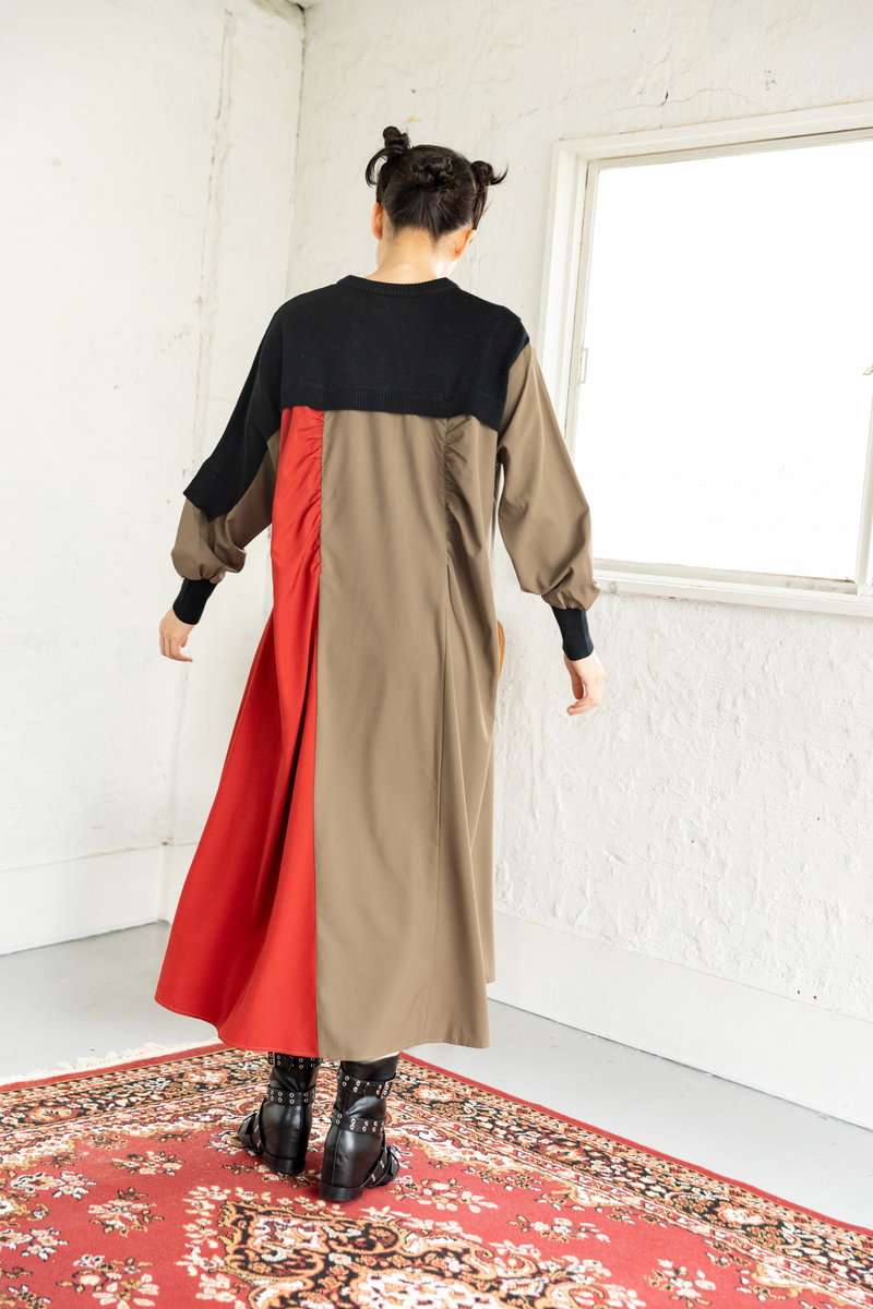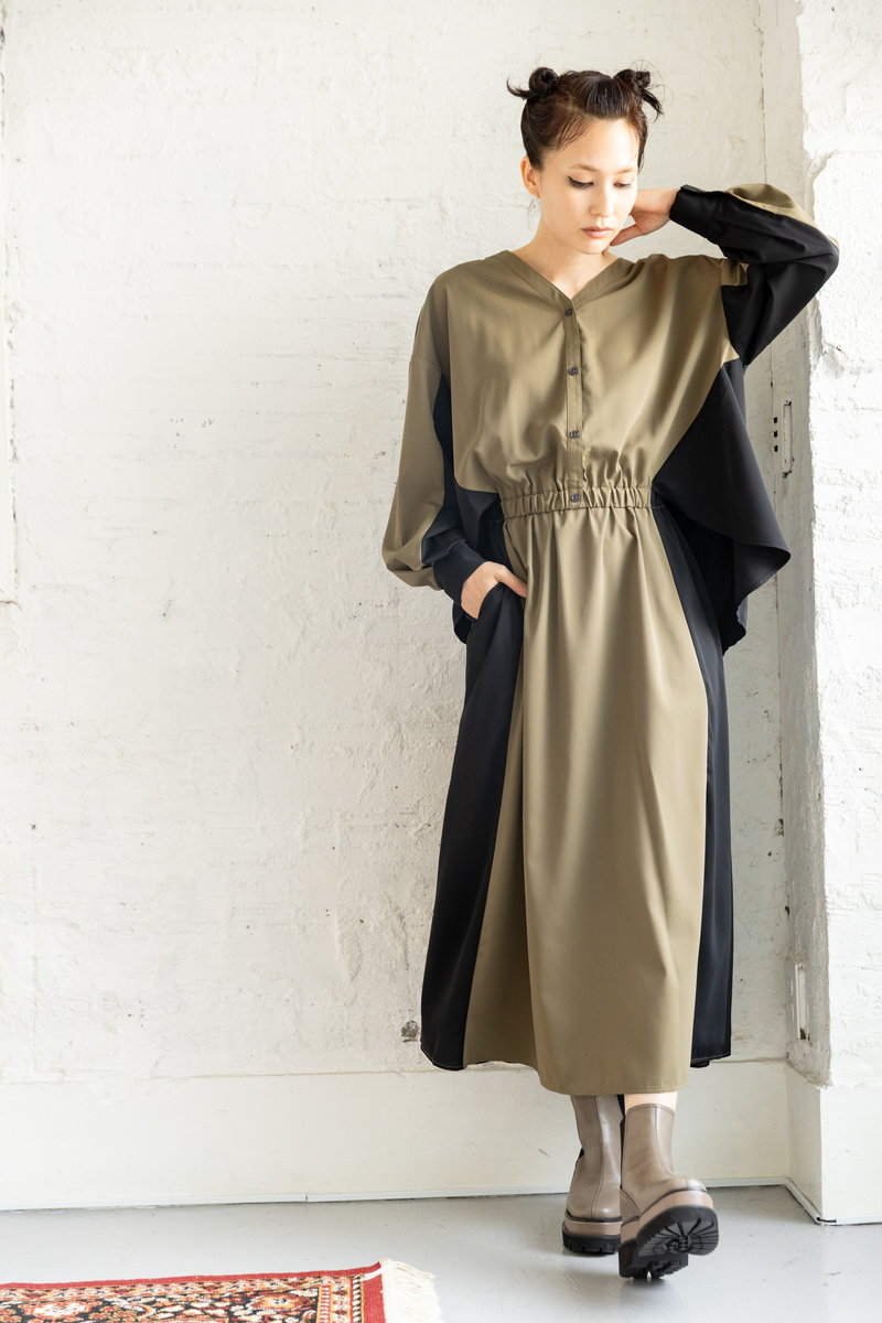 ニット切替のワンピース。